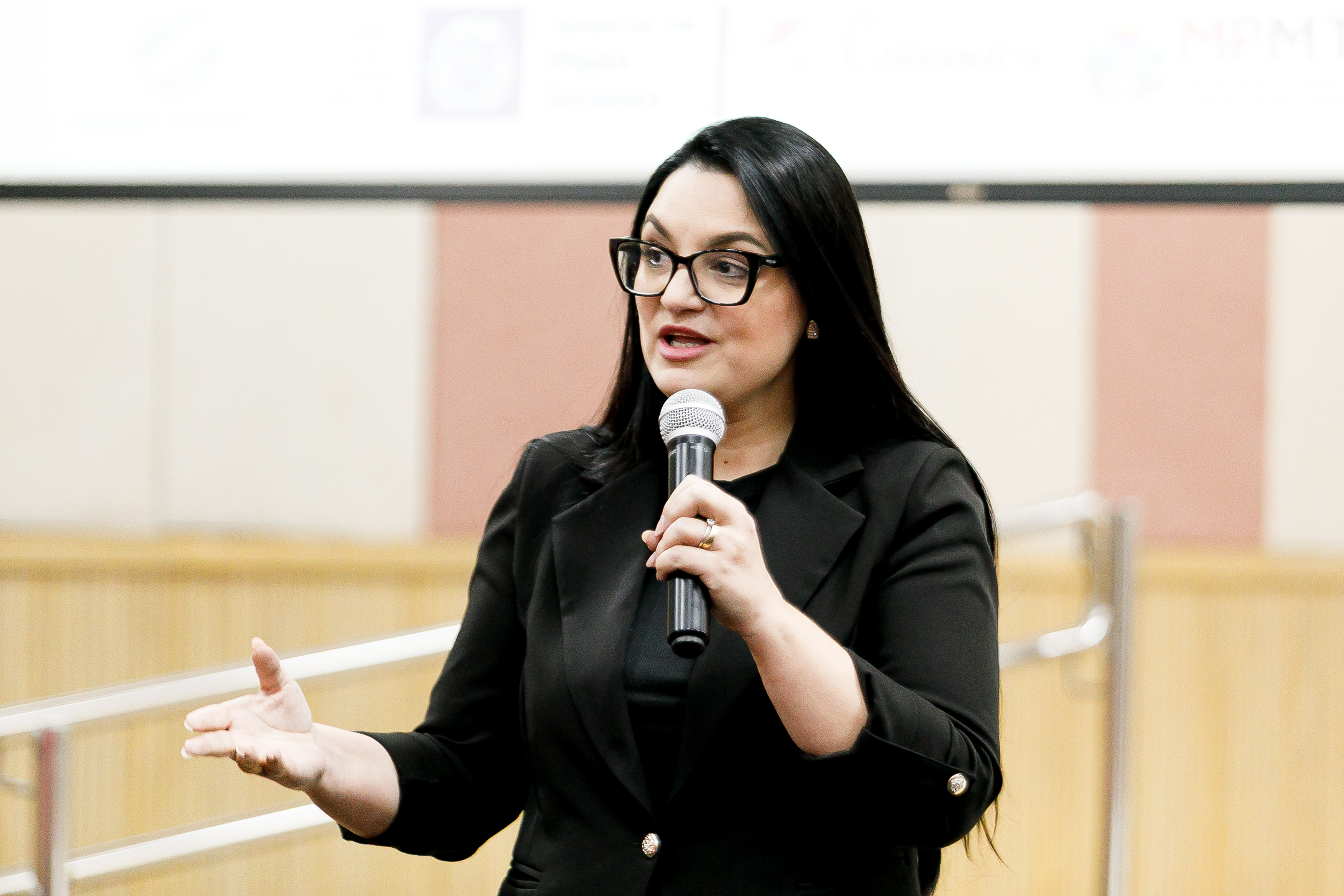 “Gostaria de parabenizar o Ministério Público, o Espaço Caliandra e os alunos que estão aqui, porque este momento é importante para a conscientização. Enquanto Câmara Municipal e como município, tentamos sempre fazer a nossa parte. Na rede municipal, já trabalhamos com projetos de prevenção desde a creche, para mudar padrões que às vezes se repetem em casa. Esse é o nosso papel”, afirmou Samantha.