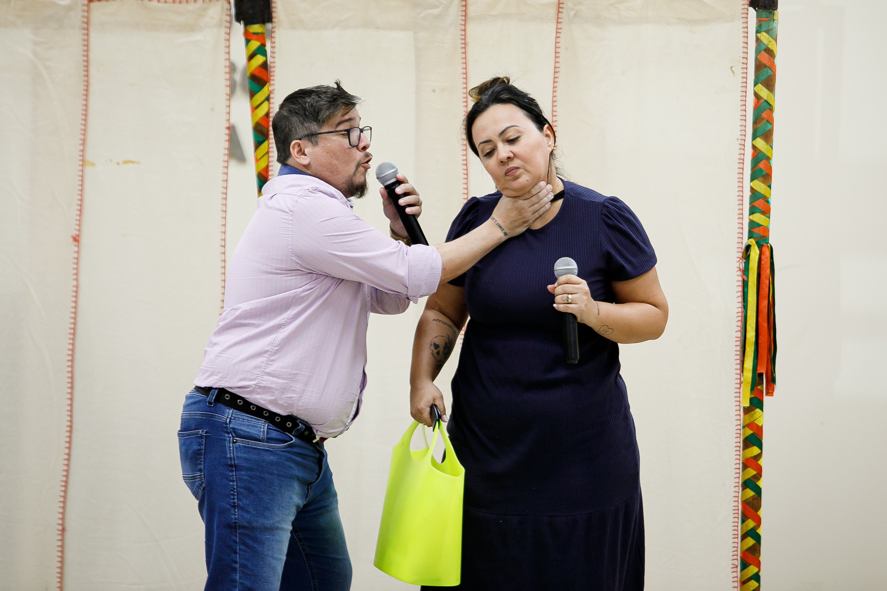 A solenidade de lançamento também contou com a participação da Companhia de Teatro VozTraz, que encenou a história real vivida por uma vítima de violência doméstica e patrimonial, sensibilizando o público. Durante a apresentação, Fernanda Costa compartilhou sua trajetória de superação. “O que eu digo é: sejam a rede de apoio das mulheres. Observem os sinais, escutem sem julgar. Chamem a polícia, não deixem que o feminicídio aumente”, externou Fernanda.