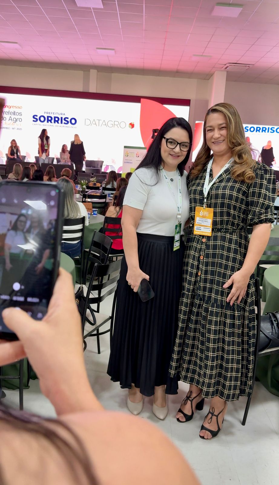 A imagem mostra a primeira-dama de Cuiabá e vereadora, Samantha Iris, os secretários Vicente Falcão e Fernando Medeiros, a diretora Grasiele e o diretor Fernando Sato, no evento Congresso Prefeitos do Agro 2025, realizado em Sorriso.