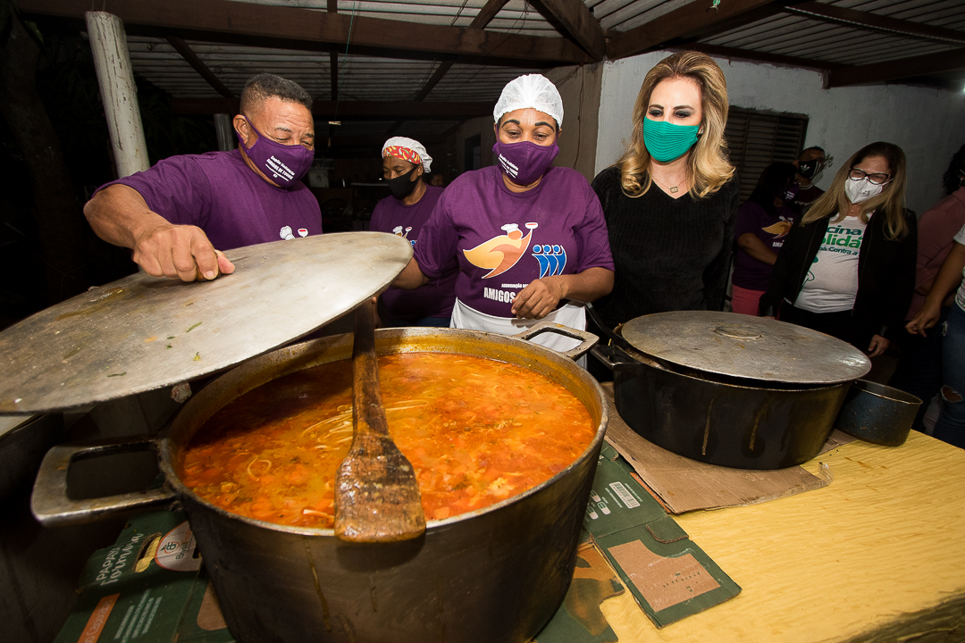 Primeira-dama Márcia Pinheiro participa de sopão, entrega alimentos e cobertores para 200 famílias