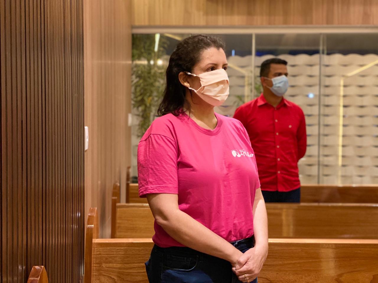 A primeira-dama Márcia Pinheiro promoveu uma missa, nesta sexta-feira (26), na Capela Misericórdia, do Hospital Municipal de Cuiaba (HMC), em prol das 145 vítimas do novo coronavírus (COVID-19) registradas em