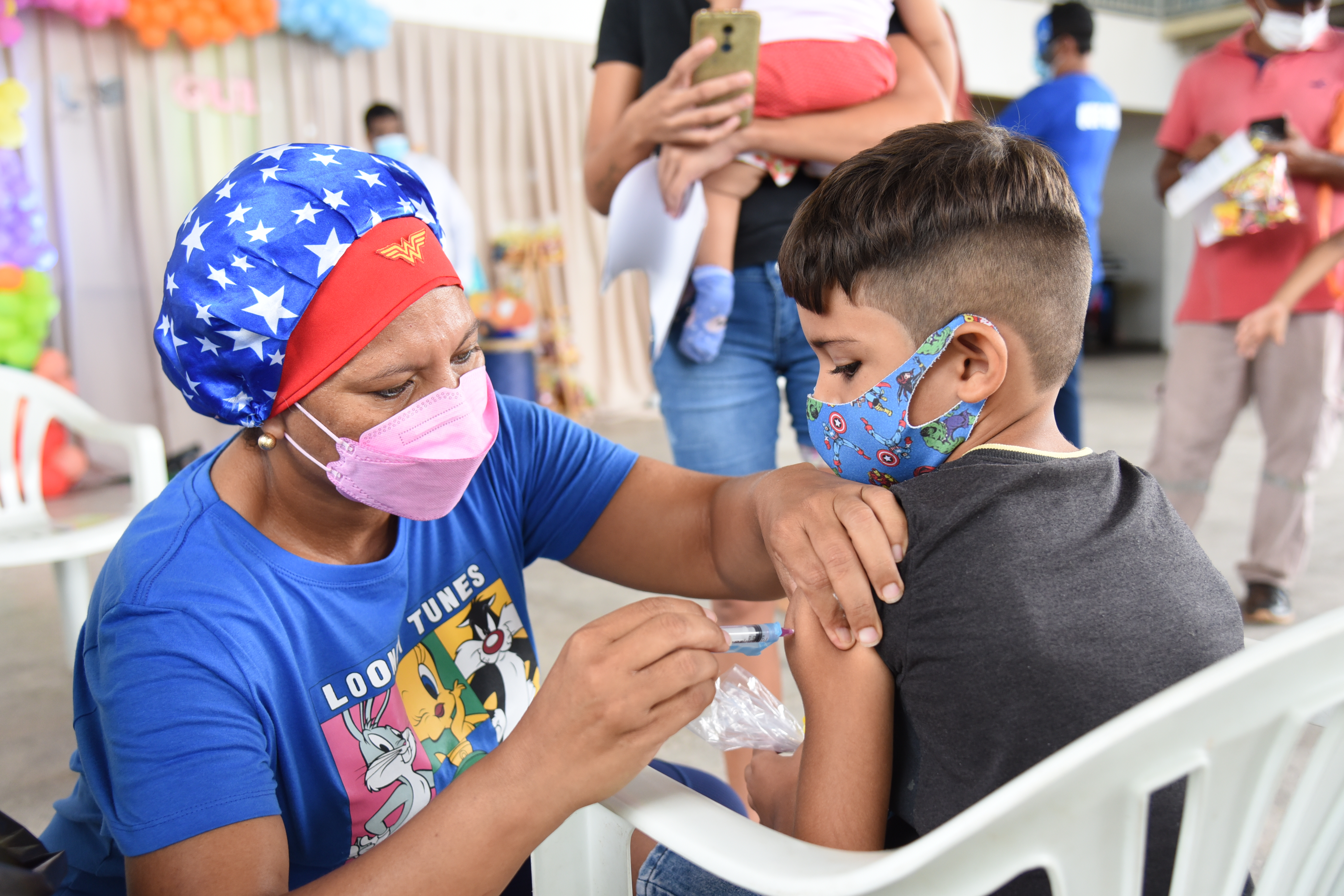 O temor da agulha, sensação muito comum entre as crianças quando são submetidas a alguns procedimentos médicos, dá sinais de que é coisa do passado. É o que demonstrou o primeiro dia de vacinação infantil, no Distrito de Nossa Senhora da Guia, zona Rural de Cuiabá, que começou na quarta-feira (26). Na ocasião, 106 crianças receberam a primeira dose da vacina pediátrica da farmacêutica Pfizer, contra a Covid-19.