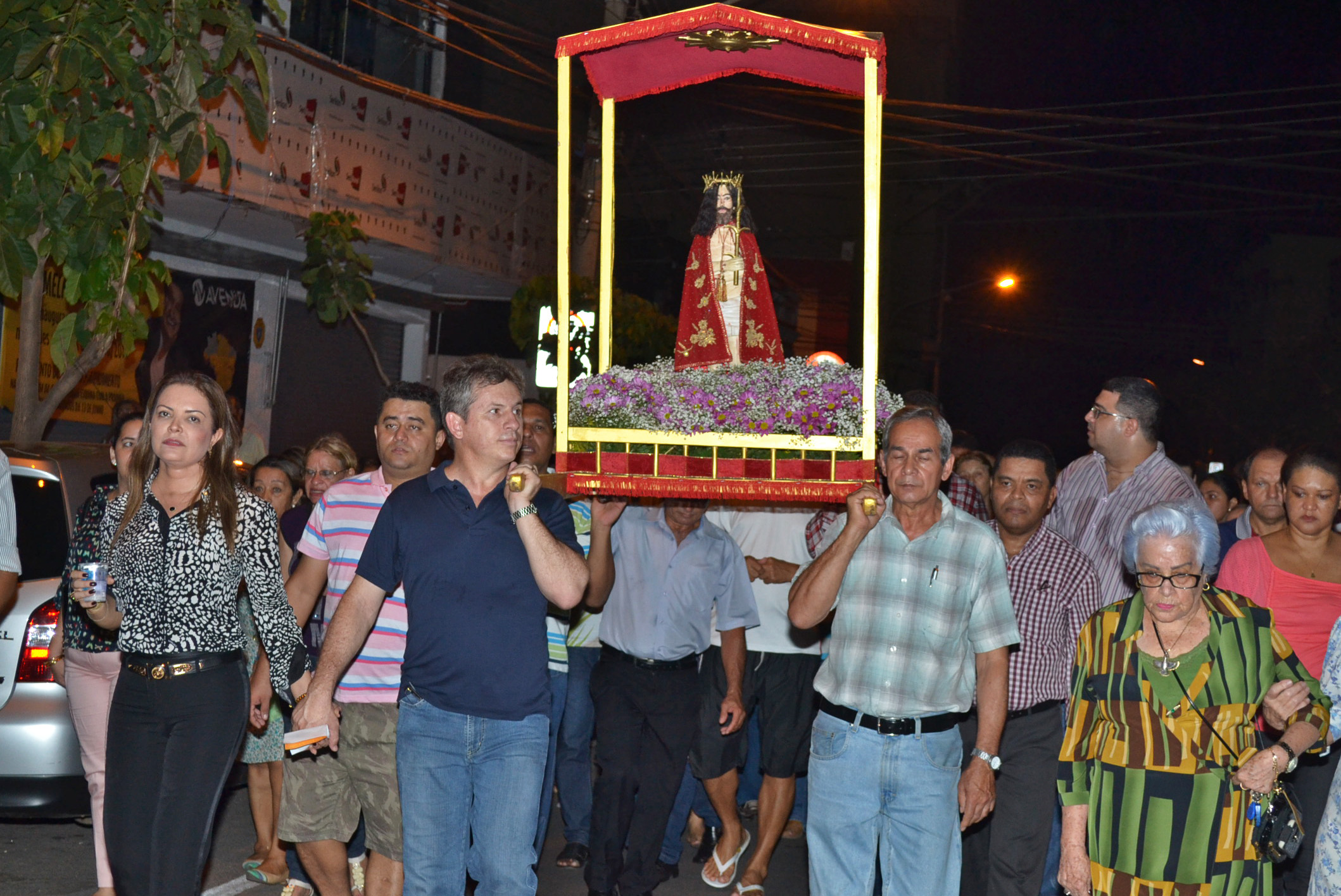 O prefeito Mauro Mendes e a primeira-dama Virginia Mendes participaram na noite deste domingo (28) da missa e procissão que encerraram os festejos em homenagem ao Senhor Bom Jesus, padroeiro de Cuiabá.