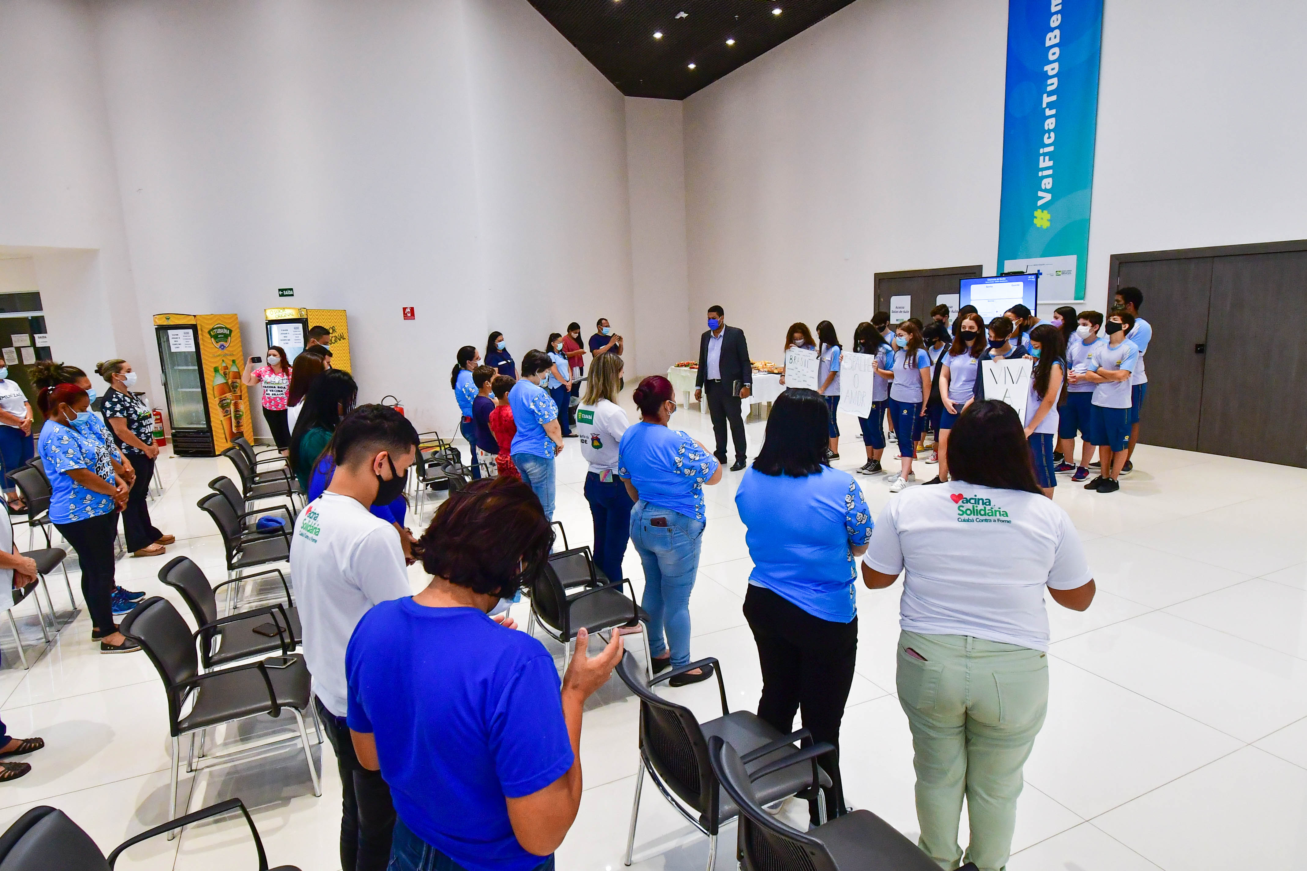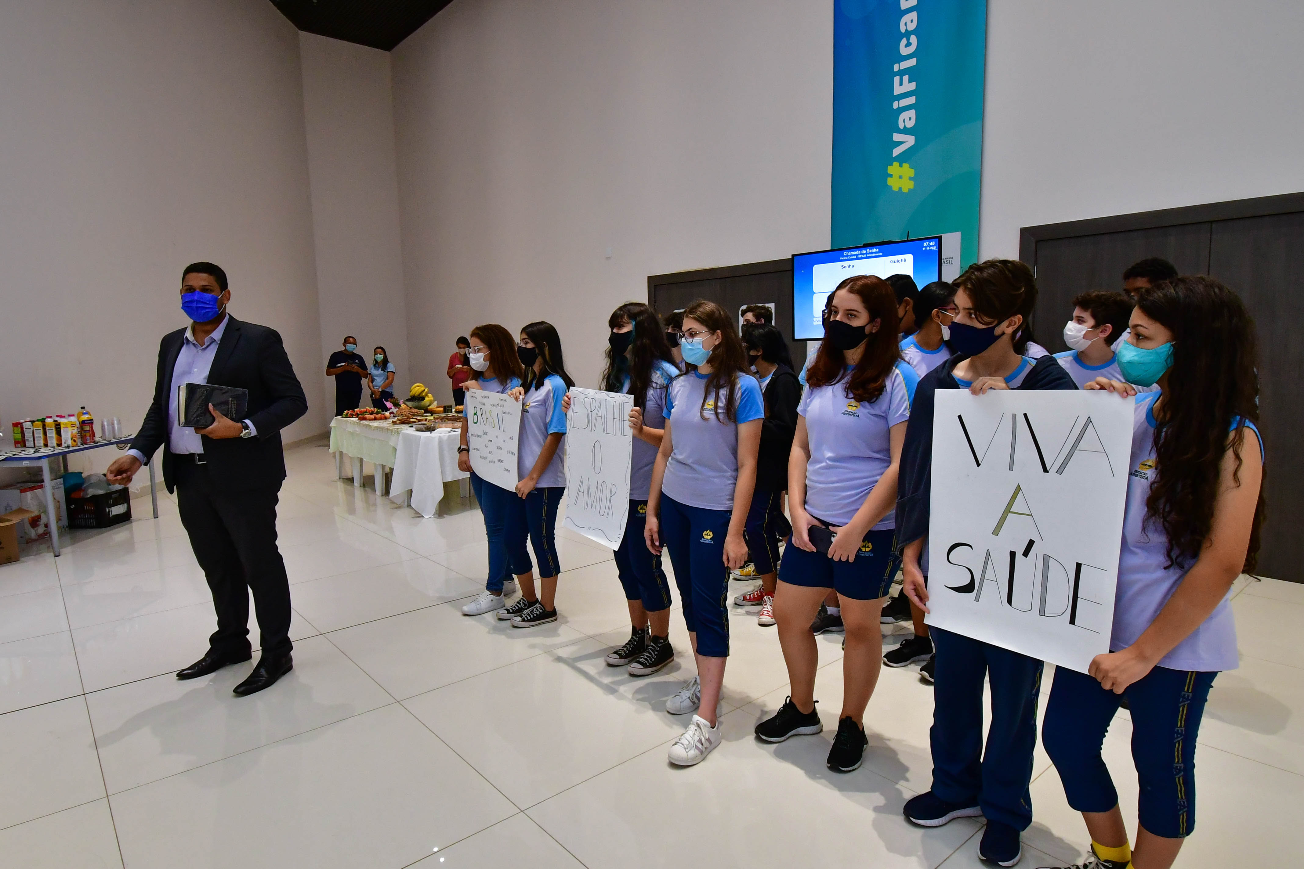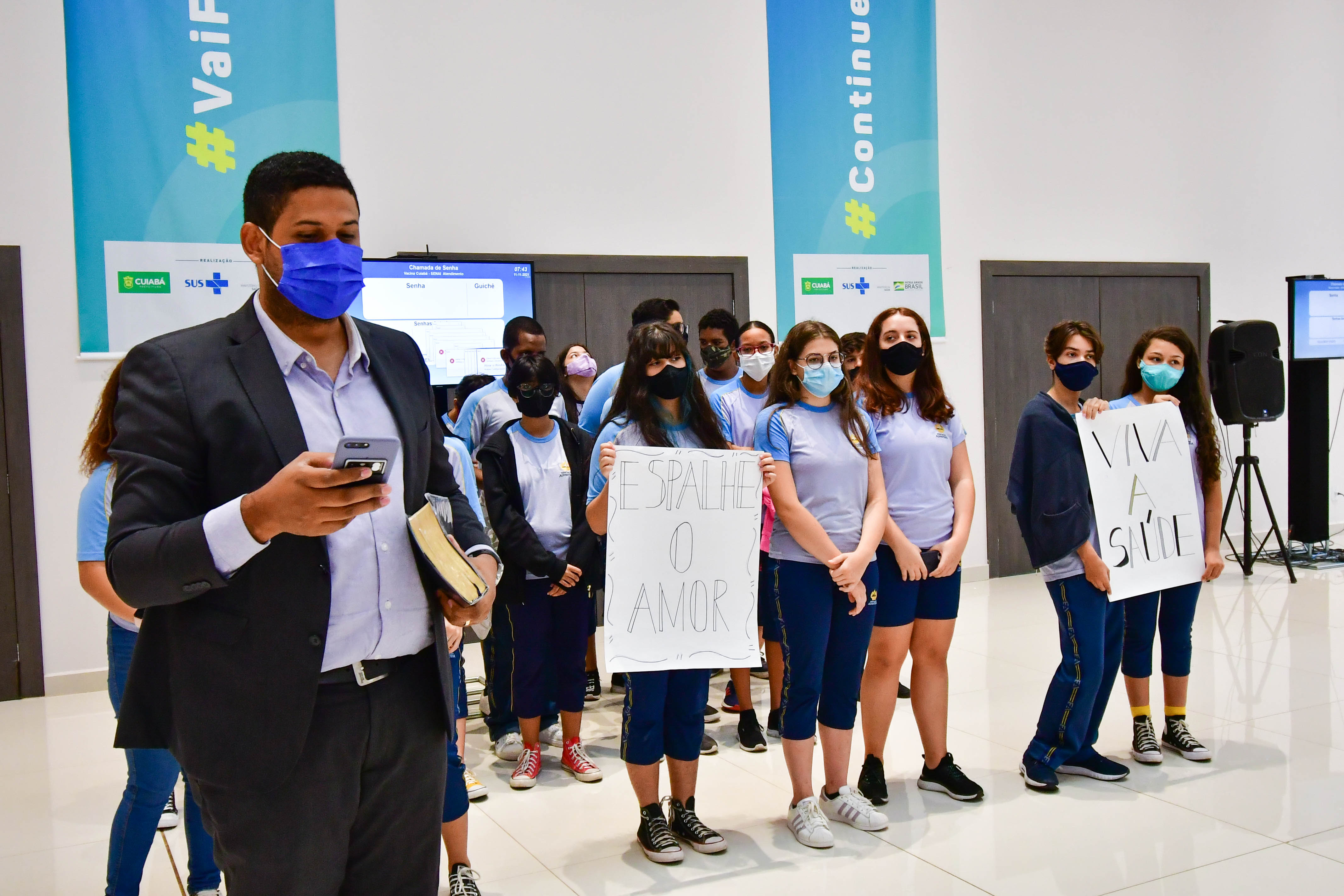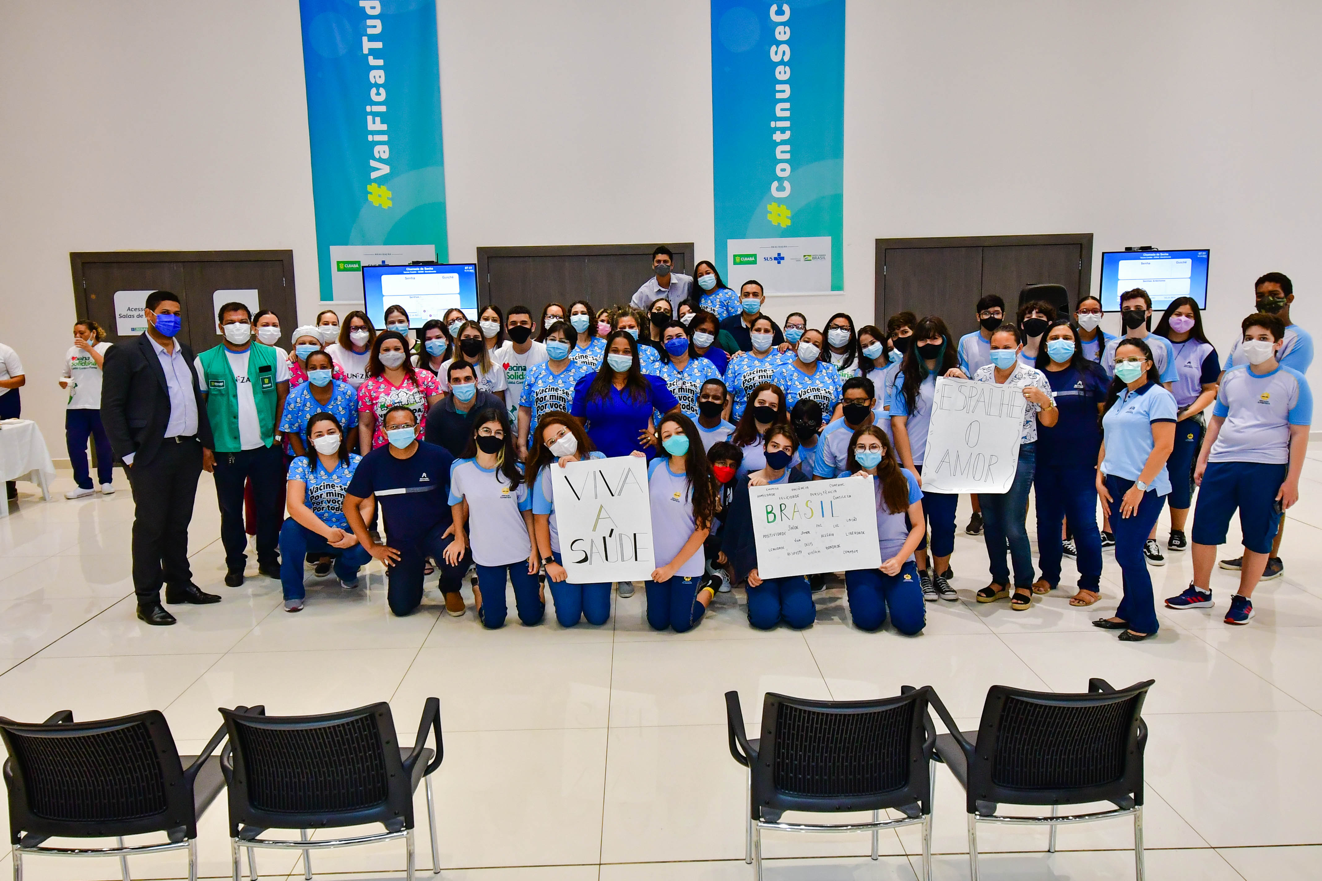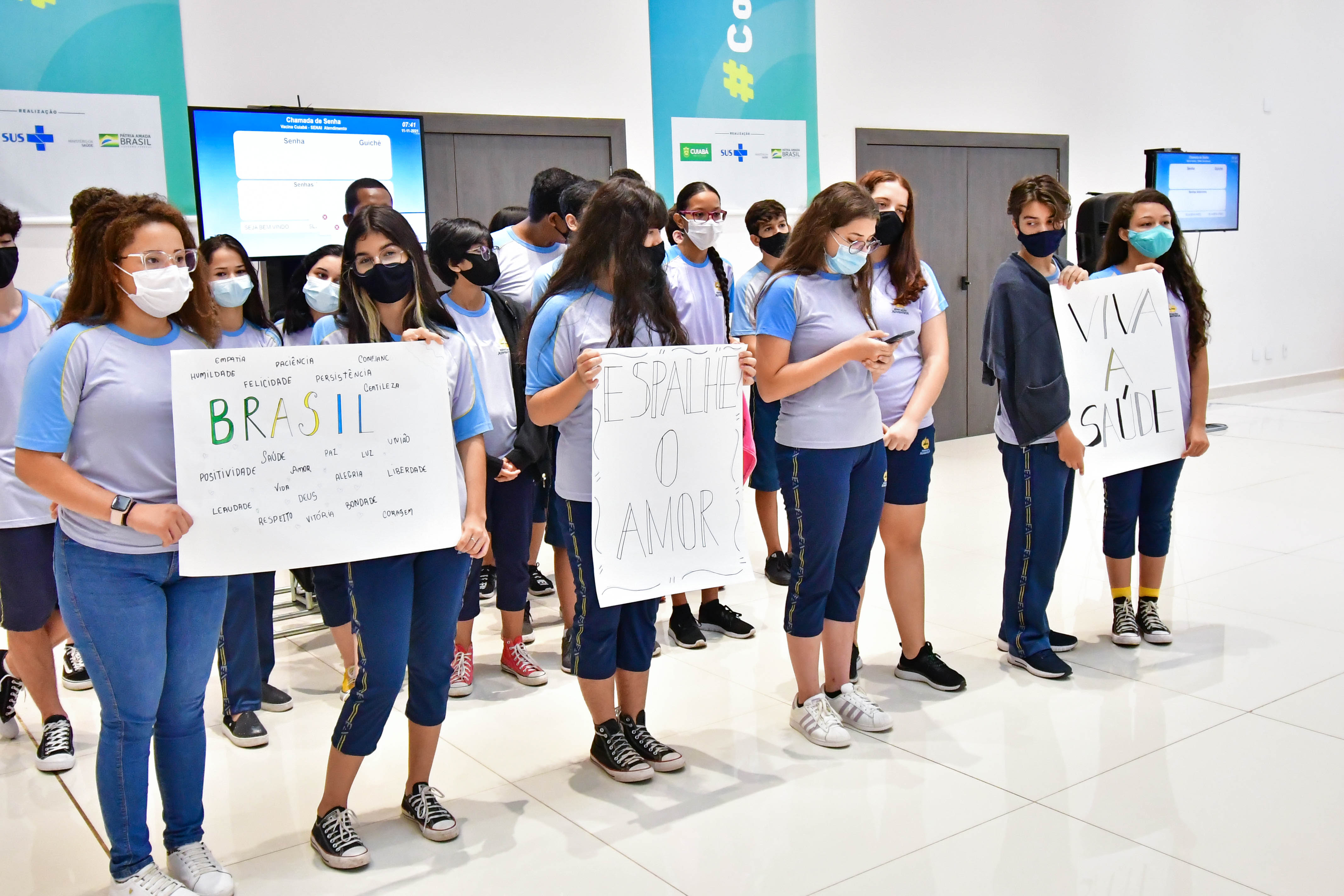 Profissionais da saúde do polo de vacinação do Senai Porto recebem homenagem de alunos da Escola Adventista