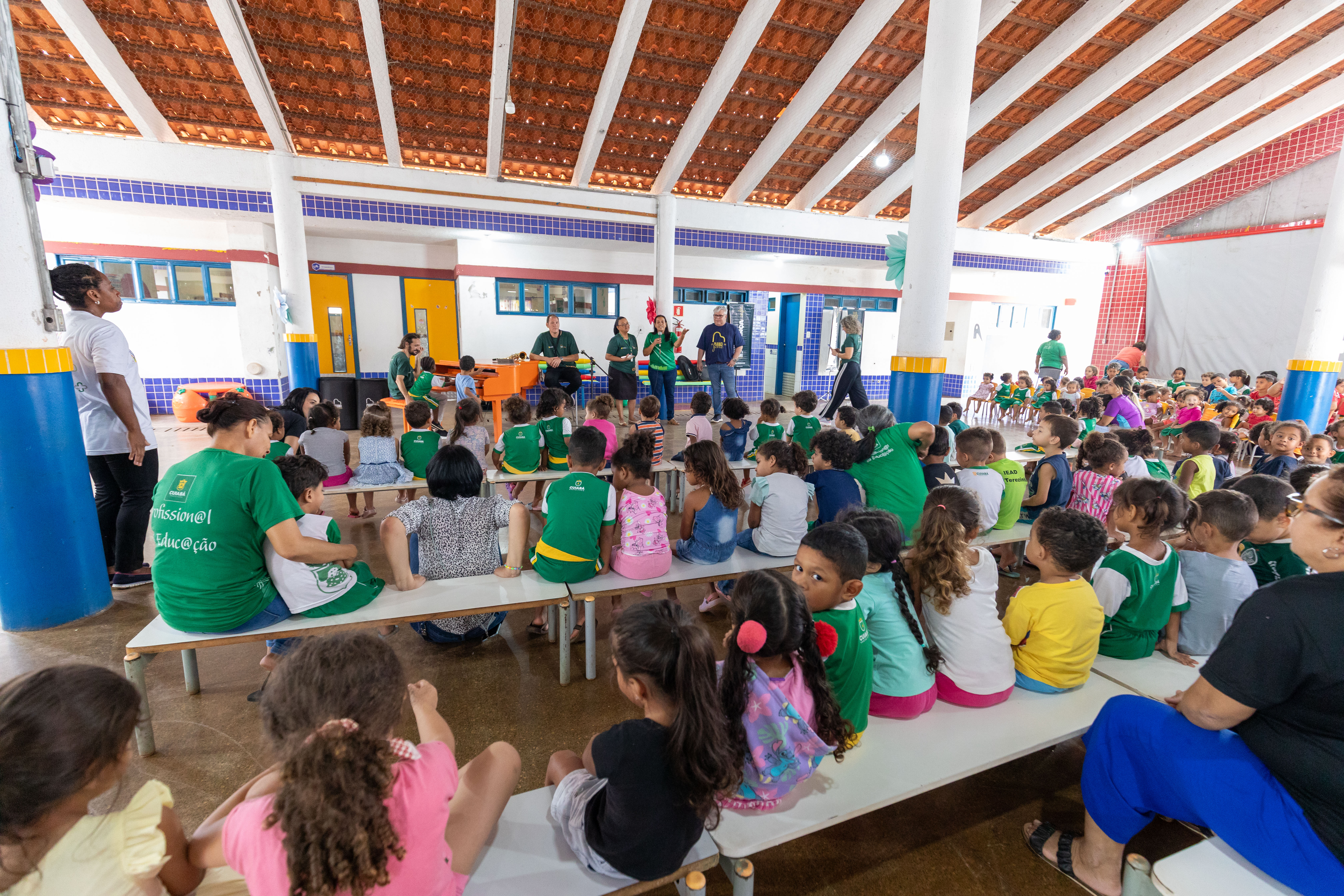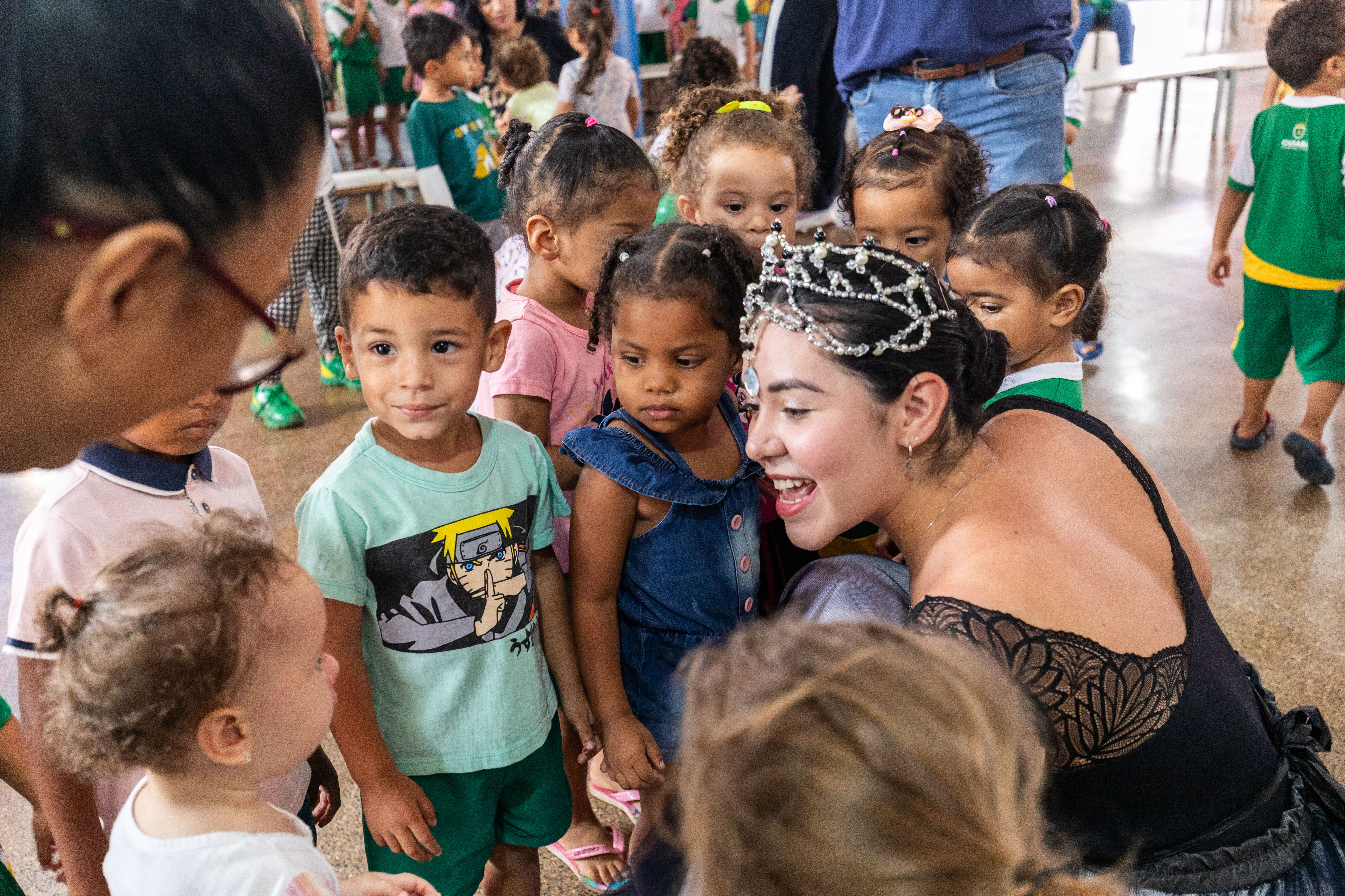 Nesta terça-feira (4), mais de 100 crianças com idades de 0 a 5 anos matriculadas no CMEI (Centro Municipal de Educação Infantil) Paulo Ronan Ferraz, localizada no bairro Ilza Terezinha Piccoli, assistiram ao espetáculo.