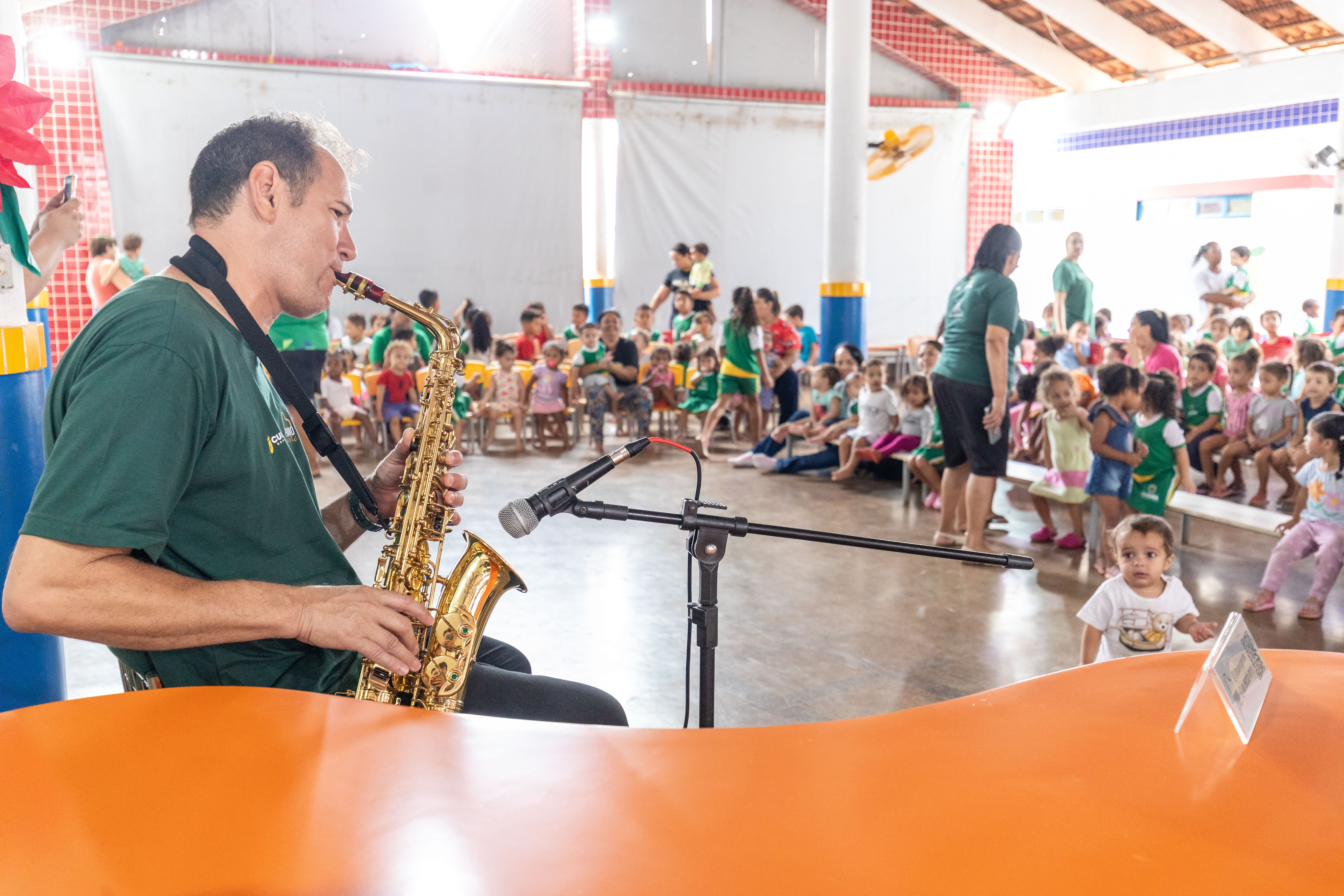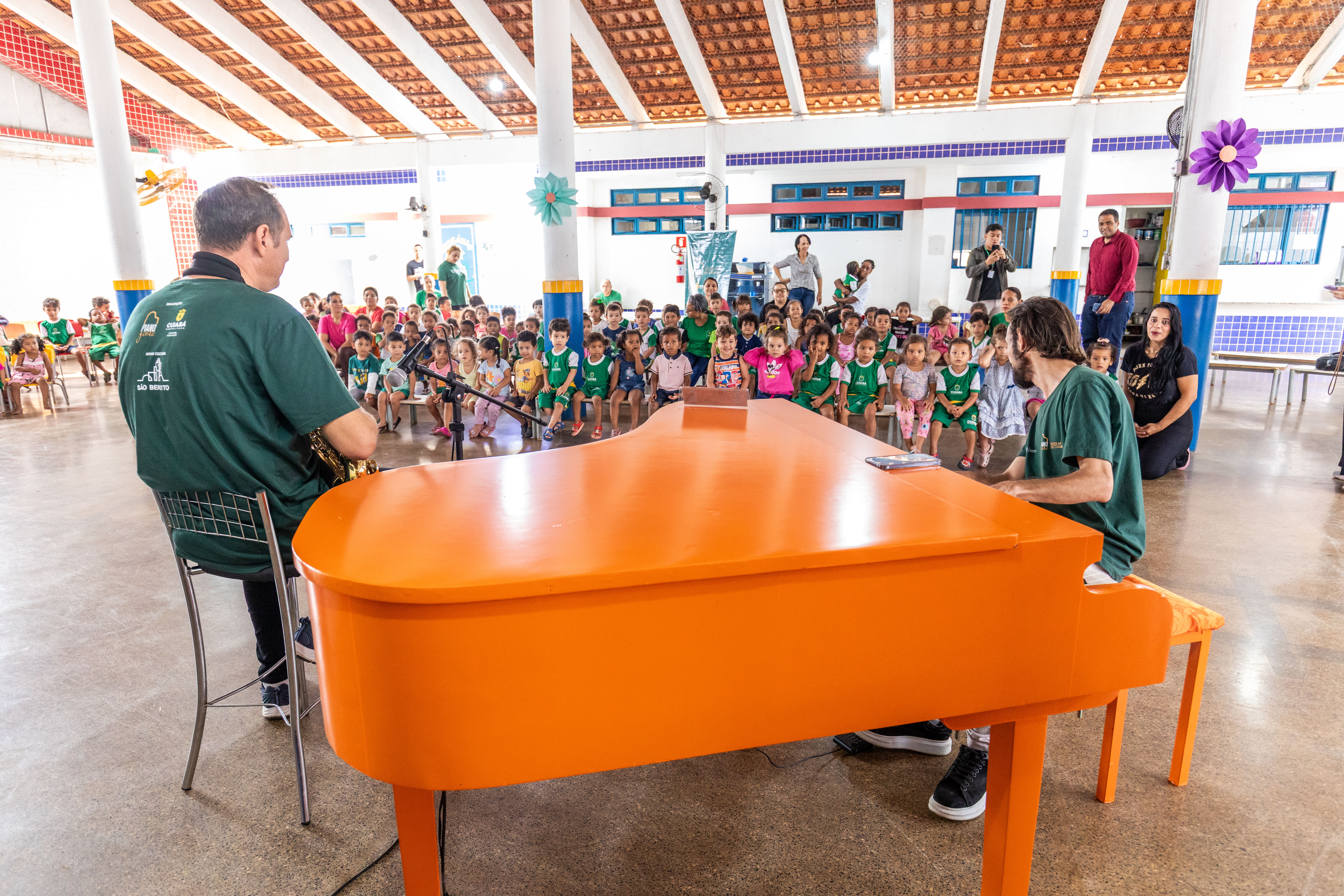 Programa Piano Gente encanta crianças em escola de Cuiabá
