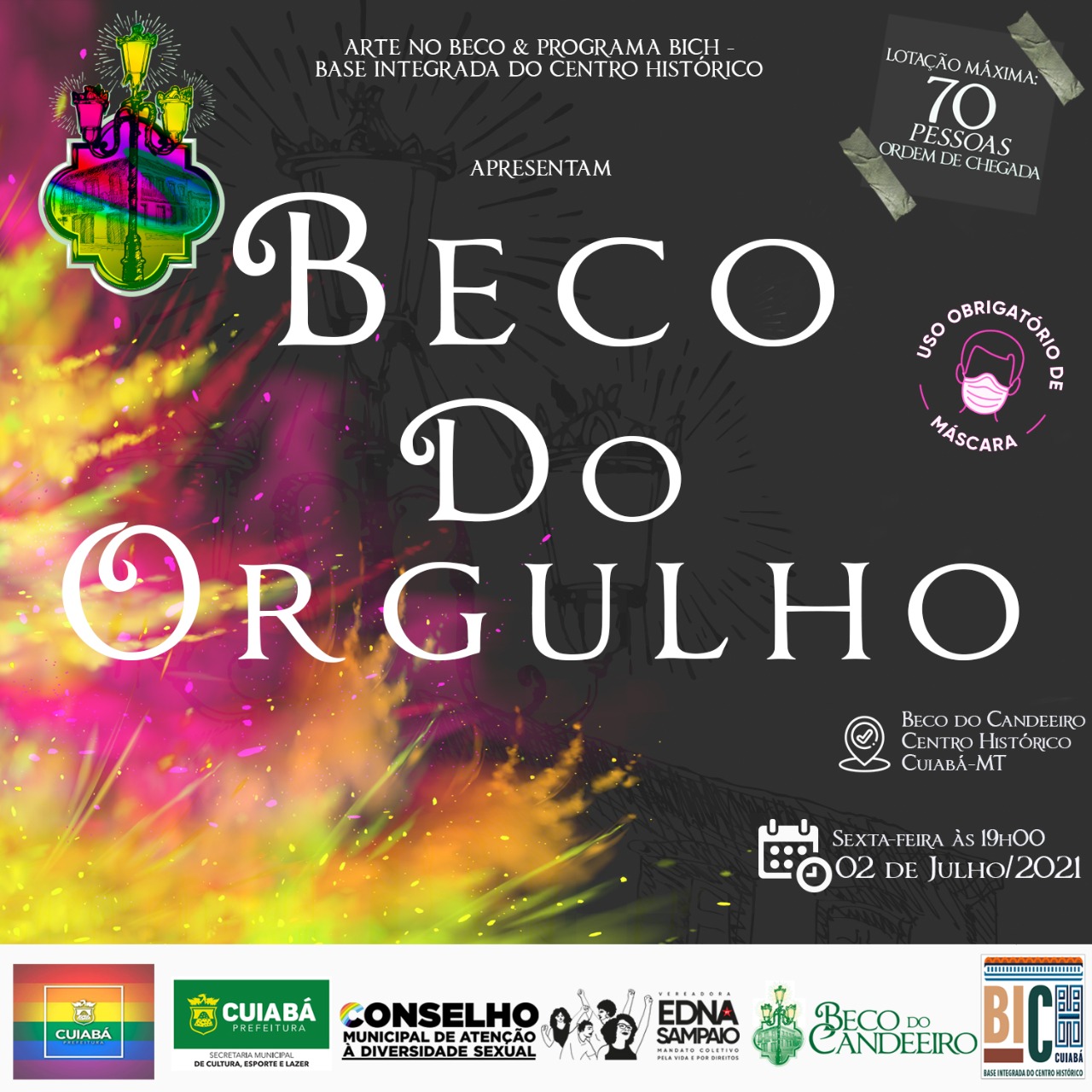 Nesta semana não haverá o acendimento dos candeeiros na quinta-feira (01) e a programação começa na sexta-feira (02), com a ação “Beco do Orgulho”, alusiva ao Dia Internacional do Orgulho LGBTQIA+, com apresentações do Bloco Carnavalesco Divas Cuiabanas, Bloco Imprensando Bebum, Seven Mônica, Alice Brasil, Sophie Jehf Rosa, Sarah Mitch, Larissa Padilha e Dj Charles Pitter. Além de exibição de curta metragem do Coletivo MT Queer no Cine Beco e também exposição fotográfica de Mary Juruna.