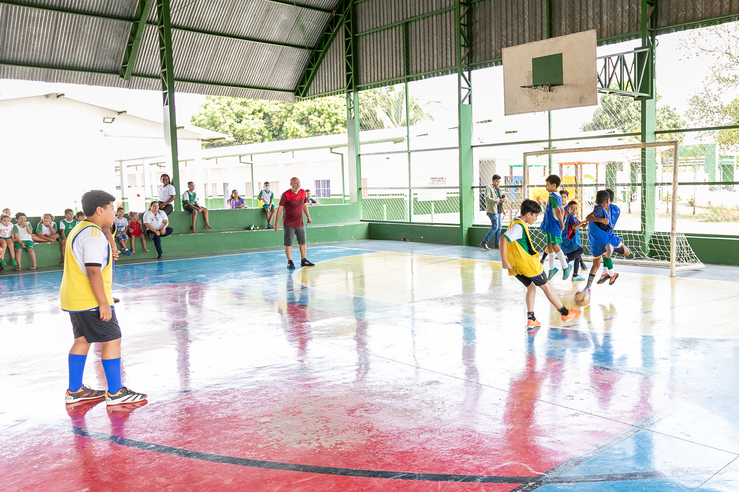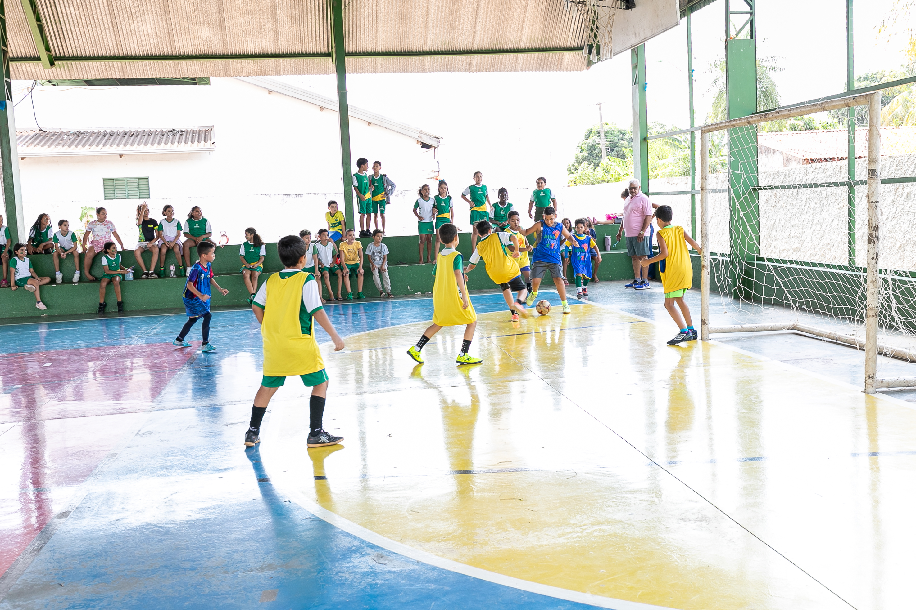 Na manhã de quarta-feira (24), estudantes do 3º ao 5º ano da Escola Nossa Senhora Aparecida, localizada no bairro Novo Colorado, se deslocaram até a sede da Escola São Sebastião para disputar duas partidas de futsal. A primeira ocorreu às 9h e a segunda às 16h, contemplando estudantes dos dois turnos.