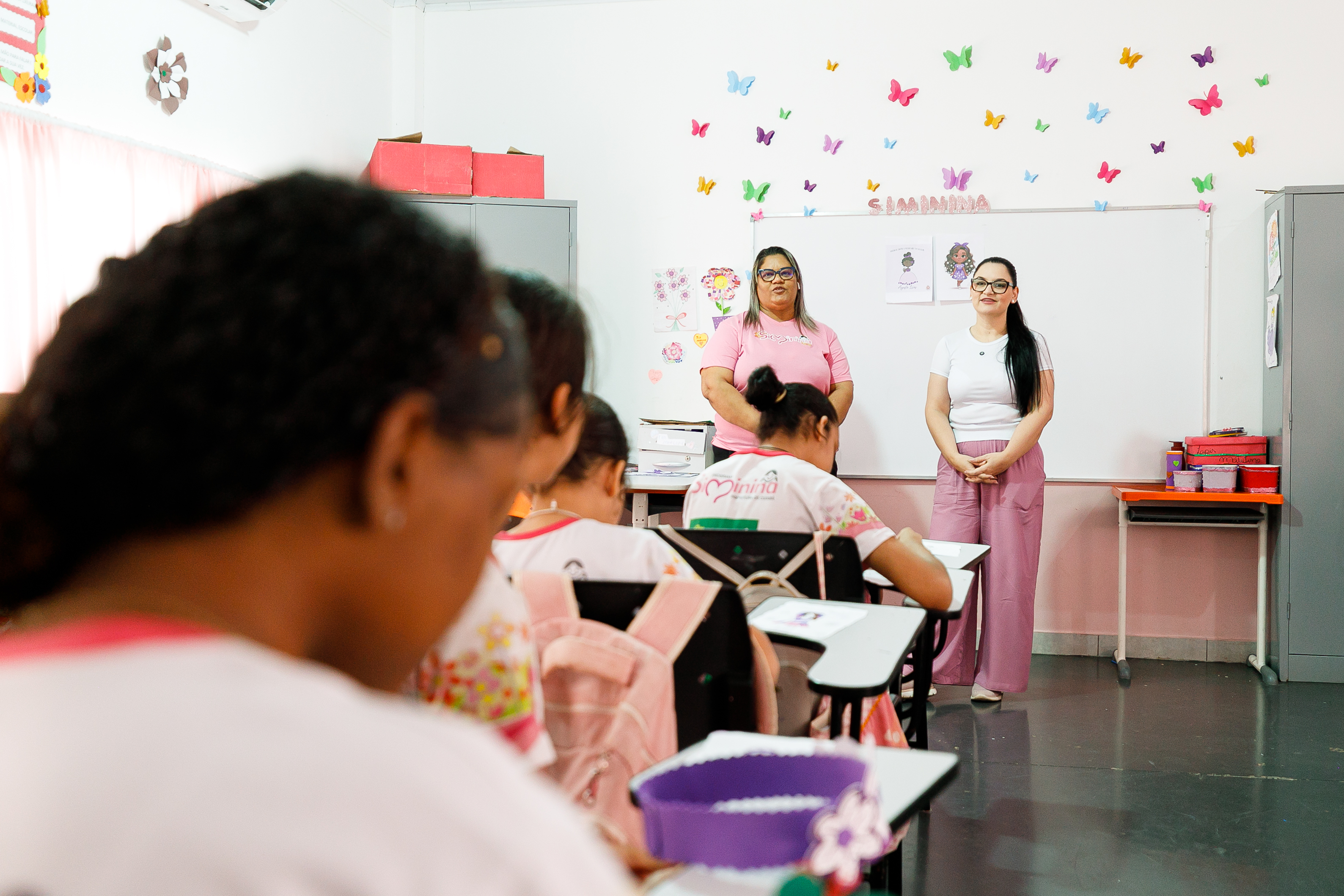 Na oportunidade, a primeira-dama e vereadora Samantha Iris interagiu com as meninas e garantiu que voltará mais vezes para participar das atividades com a turma.