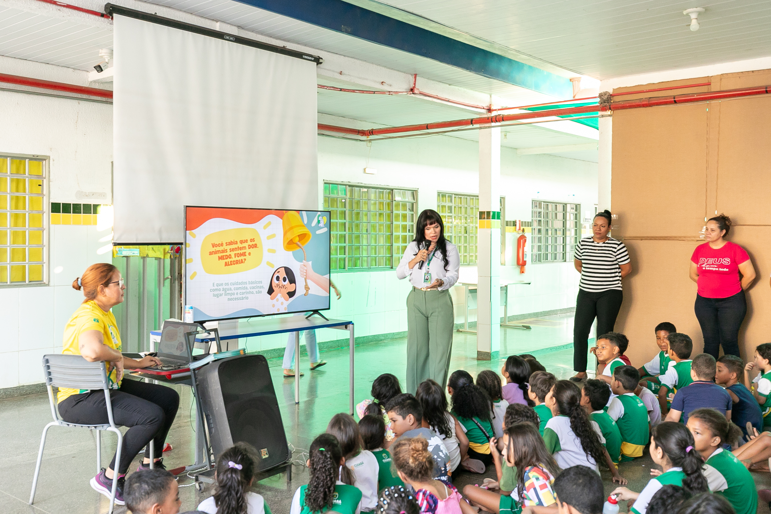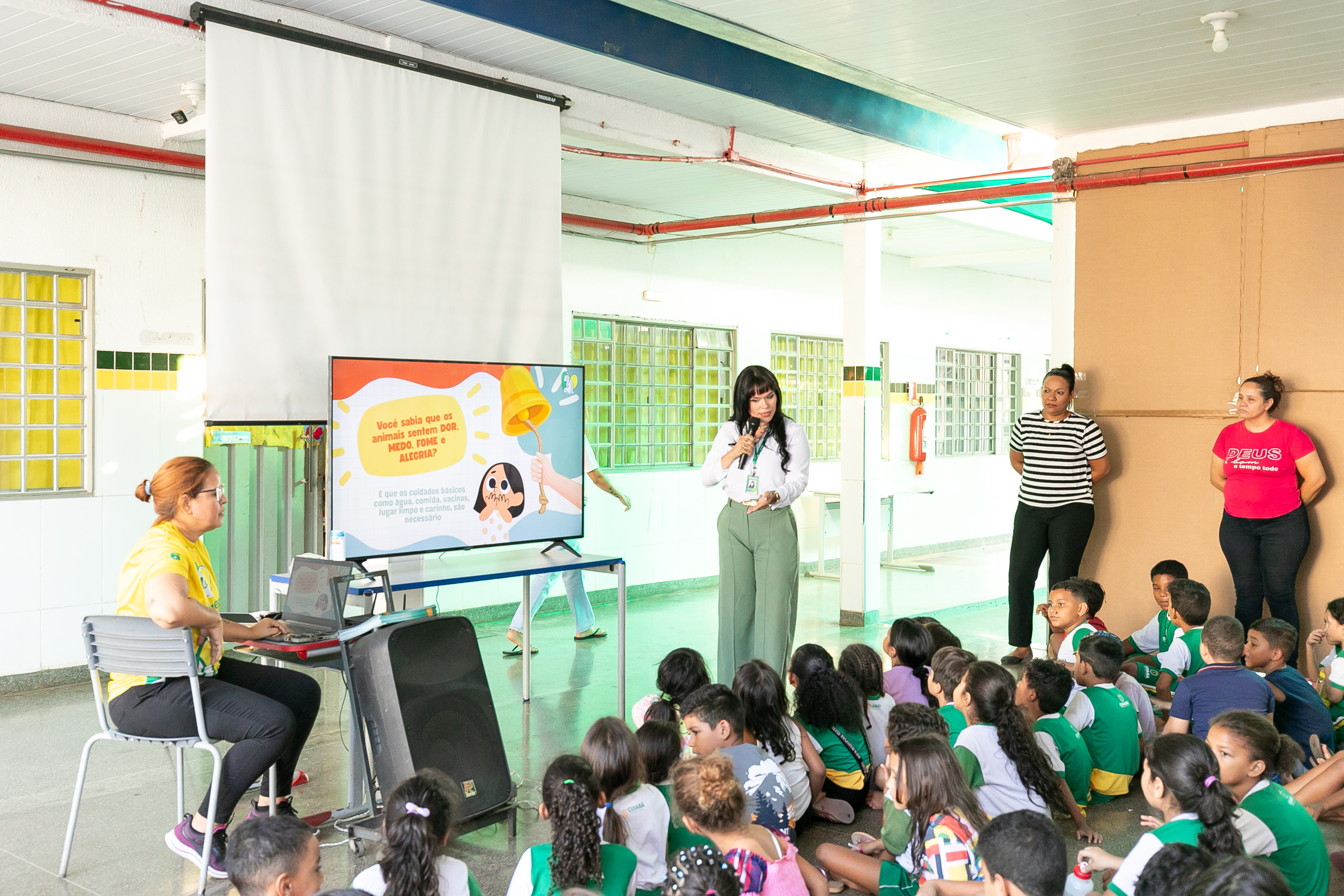 Alunos do 1º ao 5º ano do período vespertino da EMEB Maria Elazir Correia de Figueiredo, localizada no bairro São João Del Rei, participaram nesta terça-feira (30) do lançamento do projeto Educa Pet, iniciativa que busca despertar a consciência sobre a causa animal desde a infância.