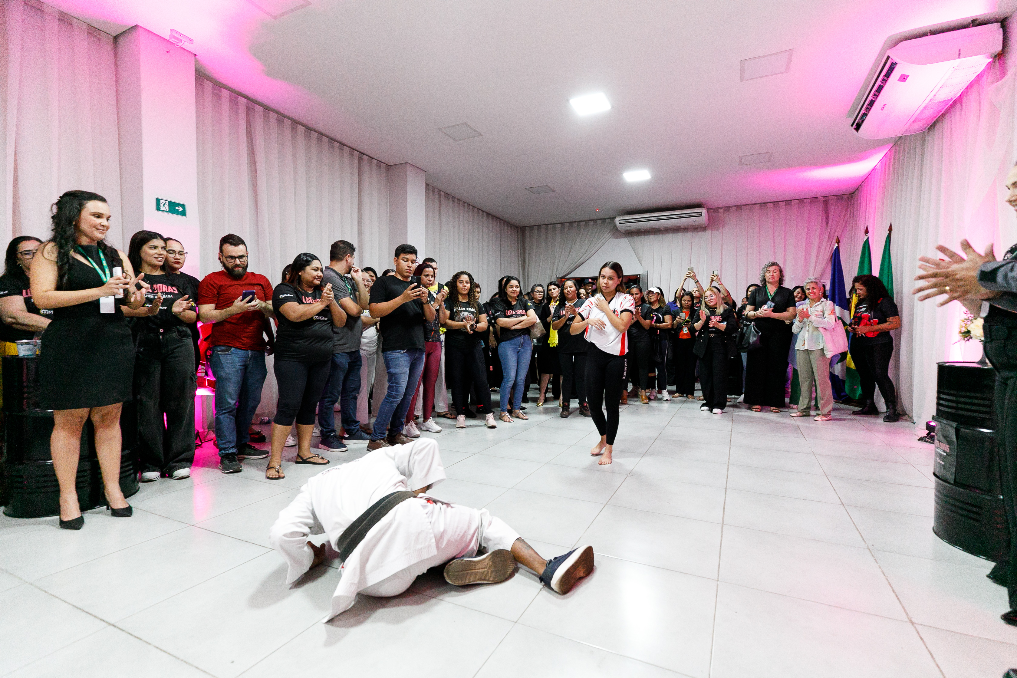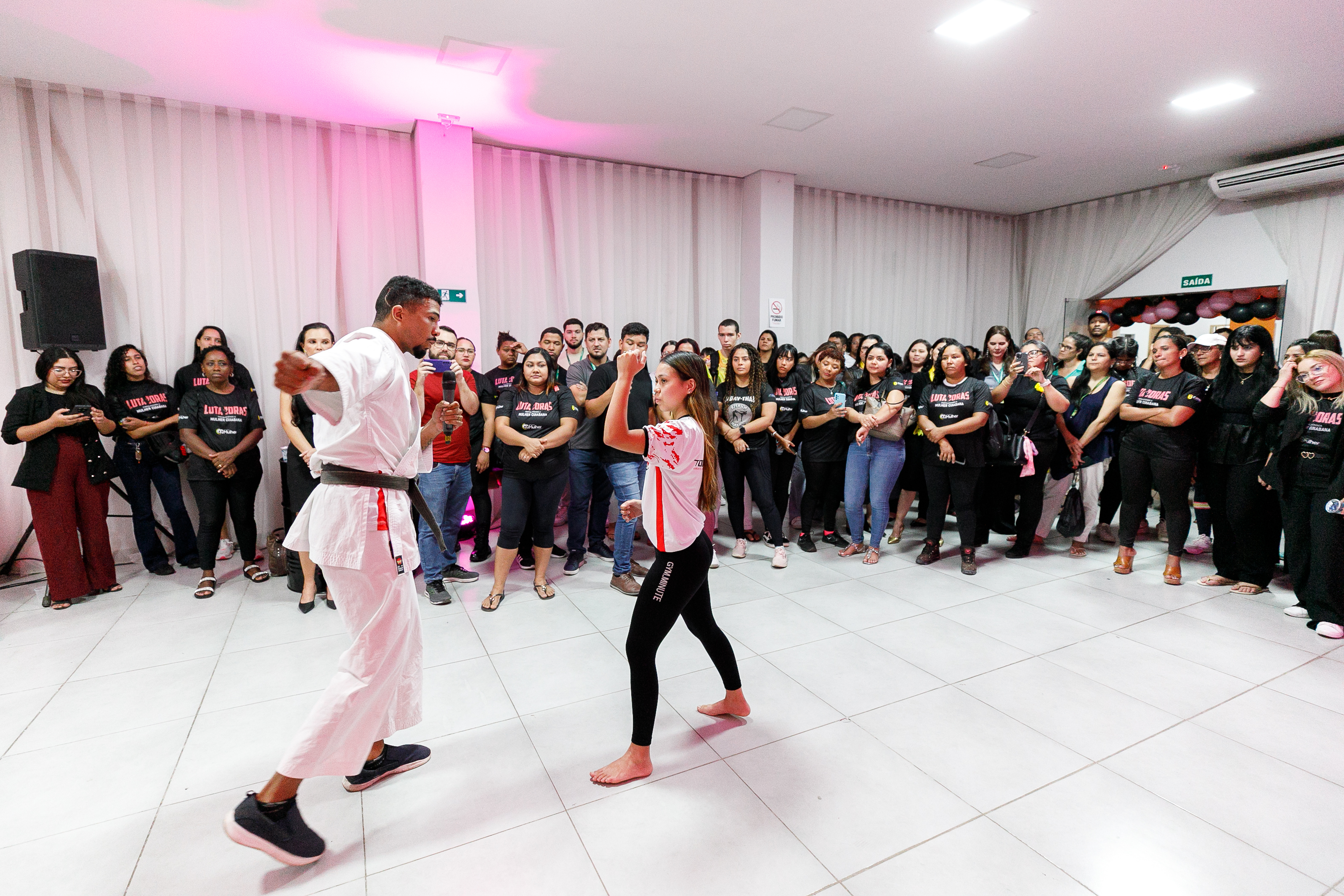 Hadassah também agradeceu às mulheres inscritas no curso e aos participantes do evento, entre eles representantes da Patrulha Maria da Penha, do Espaço Caliandra do Ministério Público Estadual, a campeã mundial de Muay Thai, Inaleia Ferreira, integrantes da Polícia Militar, além da Câmara Municipal, também representada pelo vereador Demilson Nogueira e pela vereadora Michelly Alencar.