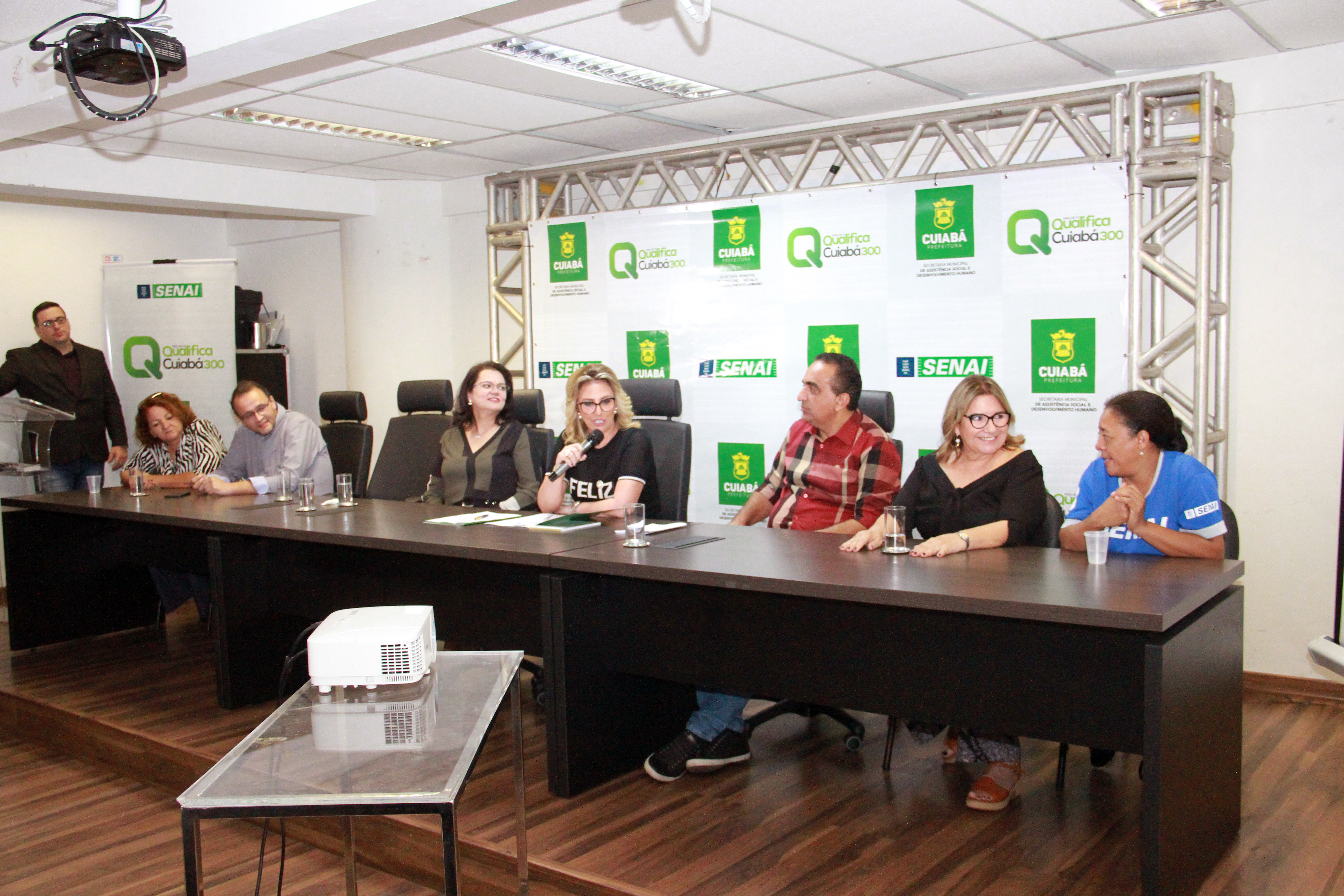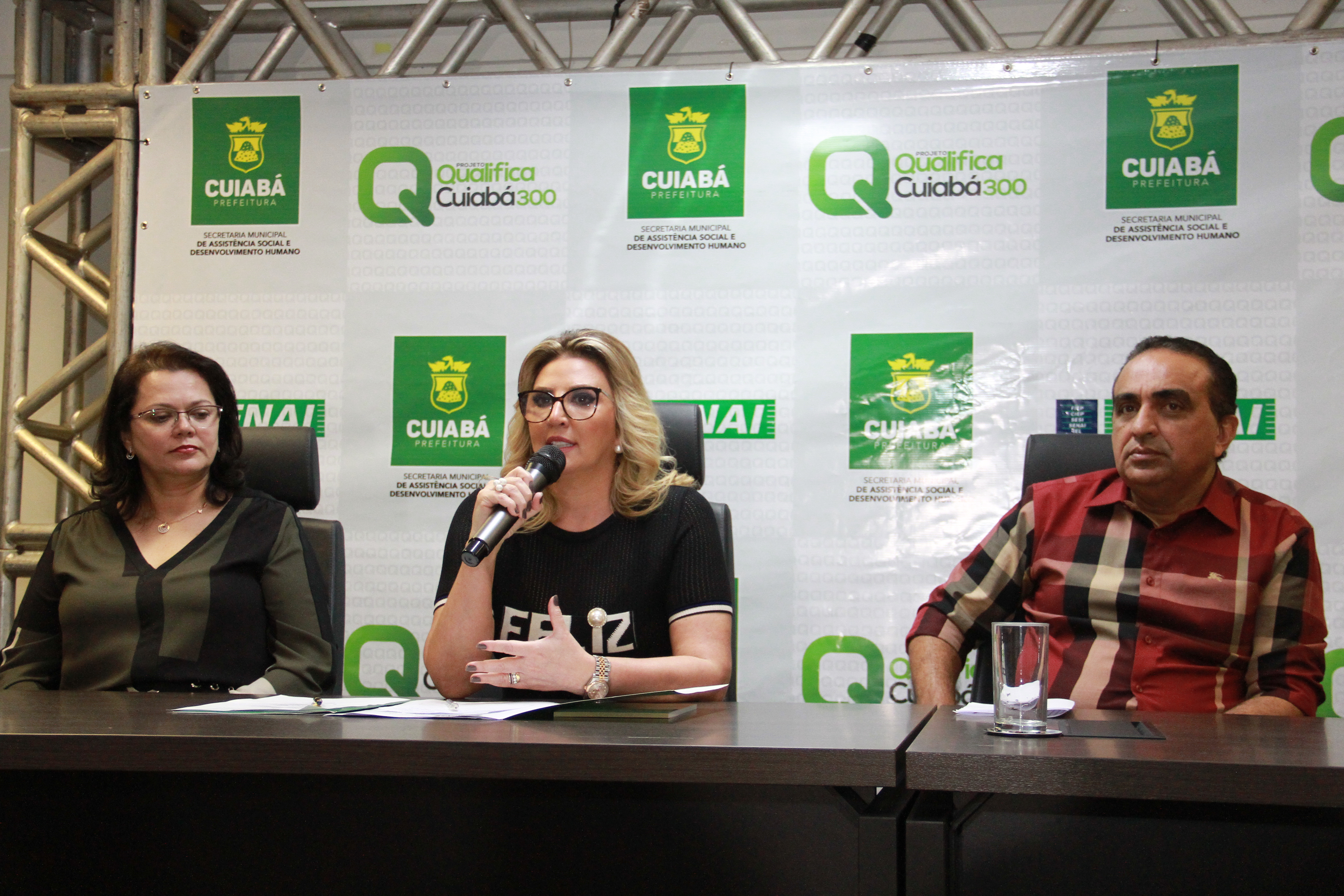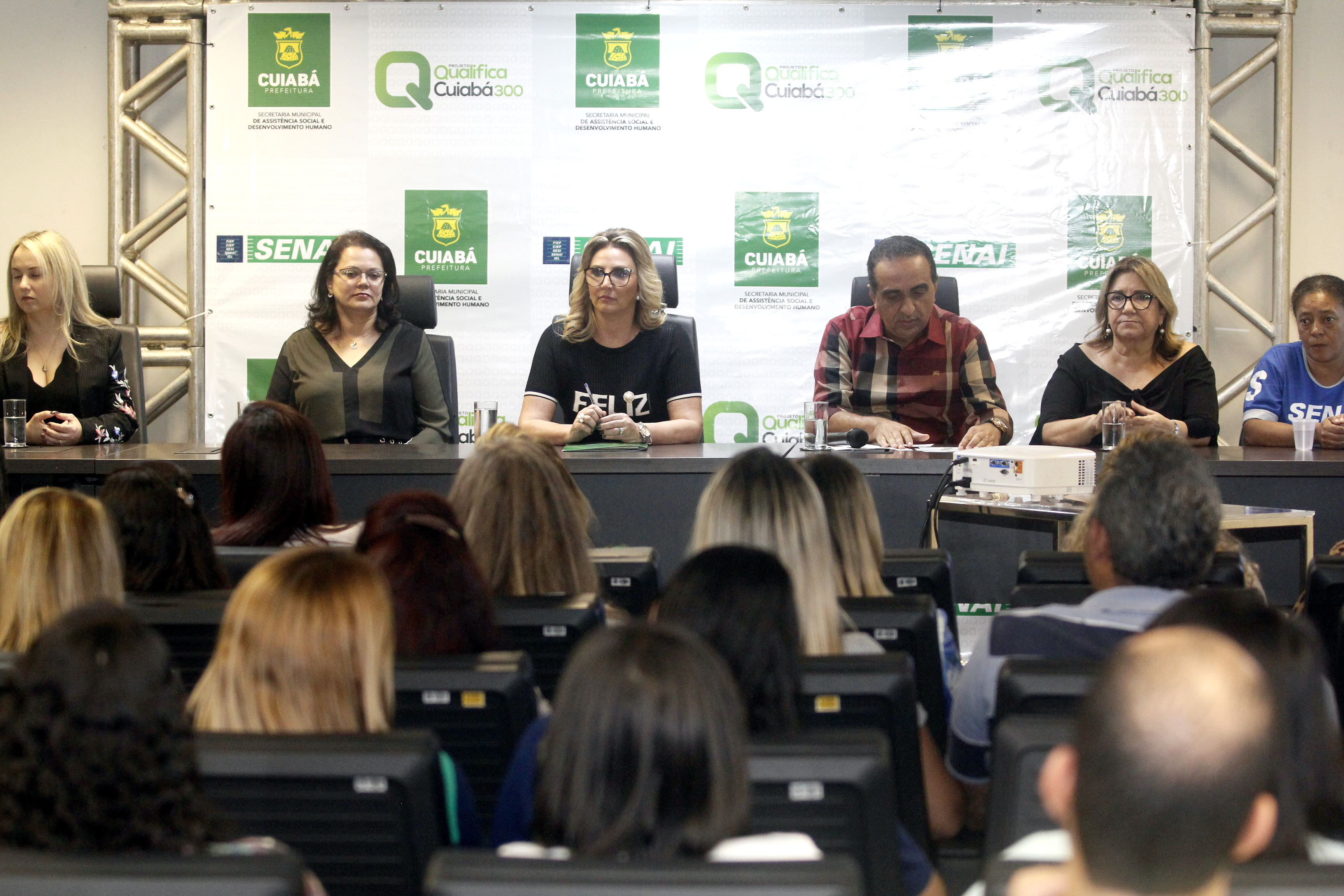 A 2ª edição do programa Qualifica Cuiabá 300 anos foi lançada nesta quinta-feira (11), no auditório da Prefeitura de Cuiabá, pela primeira-dama Márcia Pinheiro, secretário de Assistência Social e Desenvolvimento Humano, Wilton Coelho e representantes do Serviço Nacional de Aprendizagem Industrial (Senai).