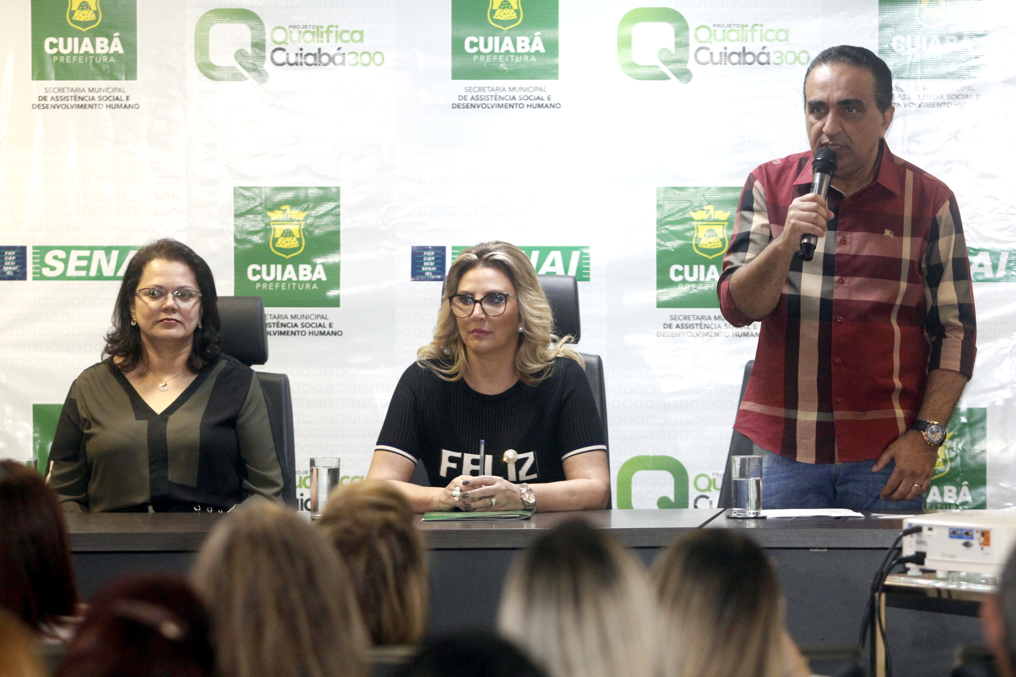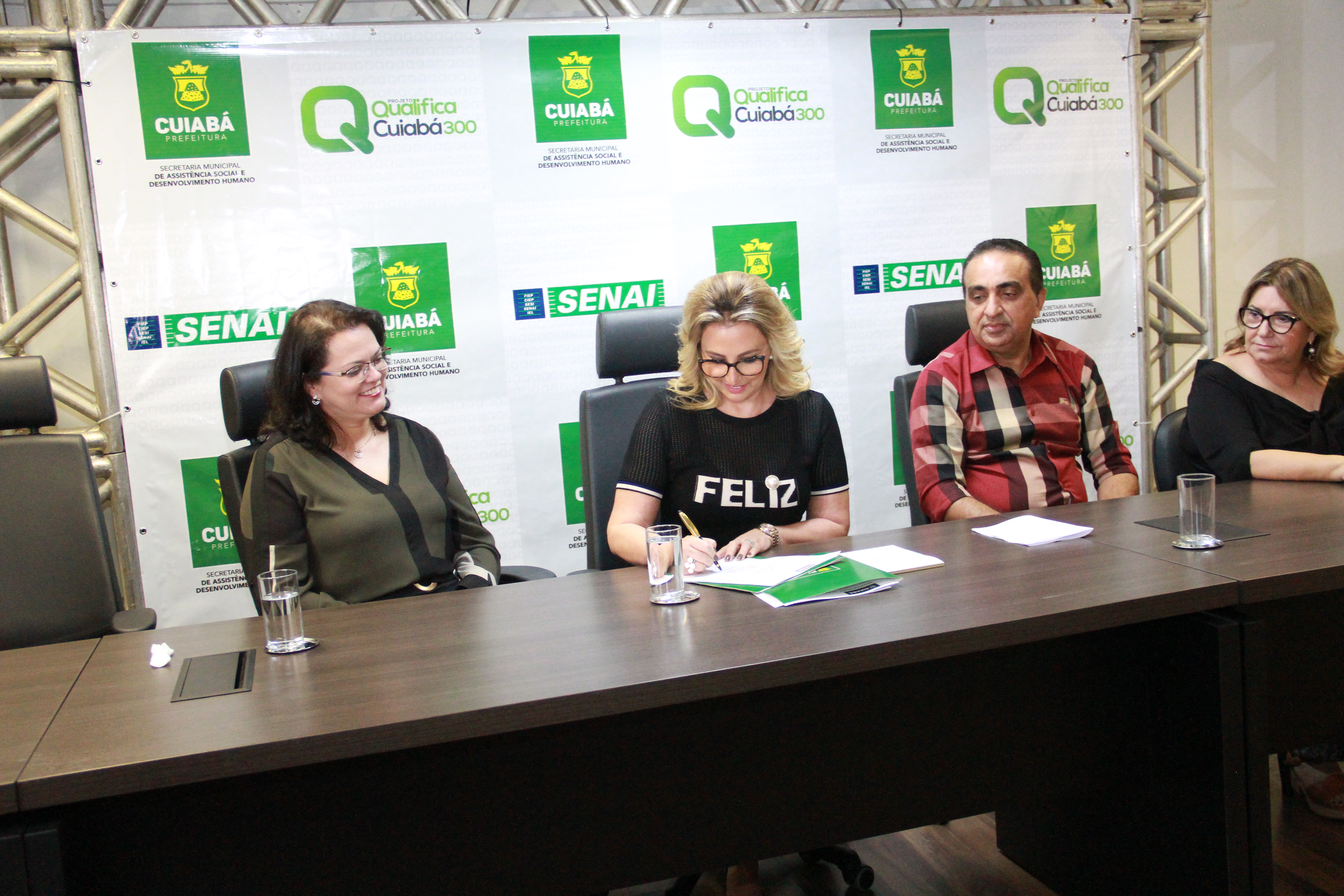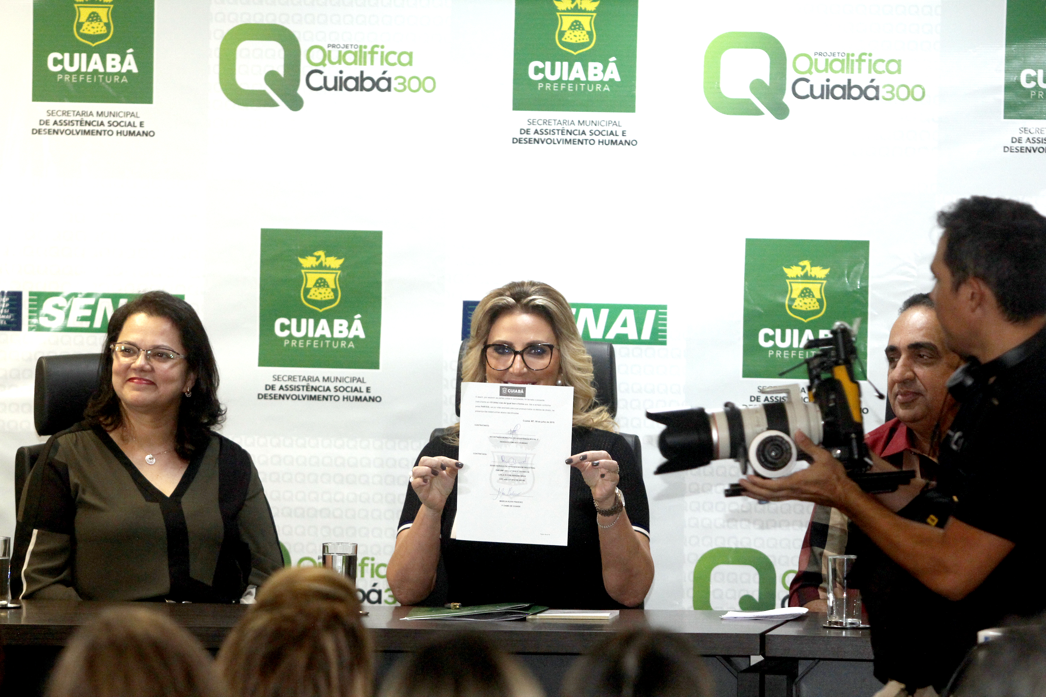 A 2ª edição do programa Qualifica Cuiabá 300 anos foi lançada nesta quinta-feira (11), no auditório da Prefeitura de Cuiabá, pela primeira-dama Márcia Pinheiro, secretário de Assistência Social e Desenvolvimento Humano, Wilton Coelho e representantes do Serviço Nacional de Aprendizagem Industrial (Senai).