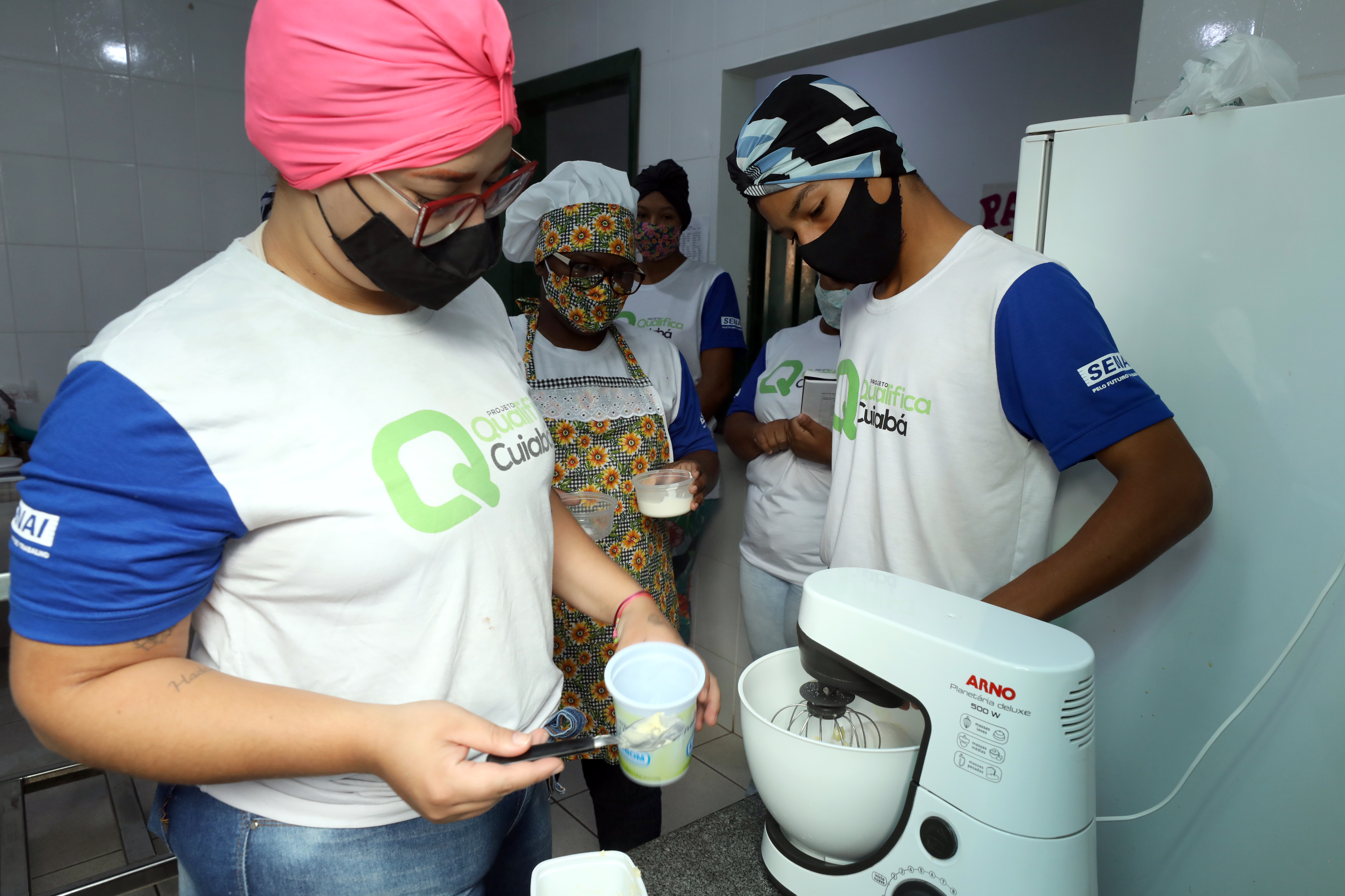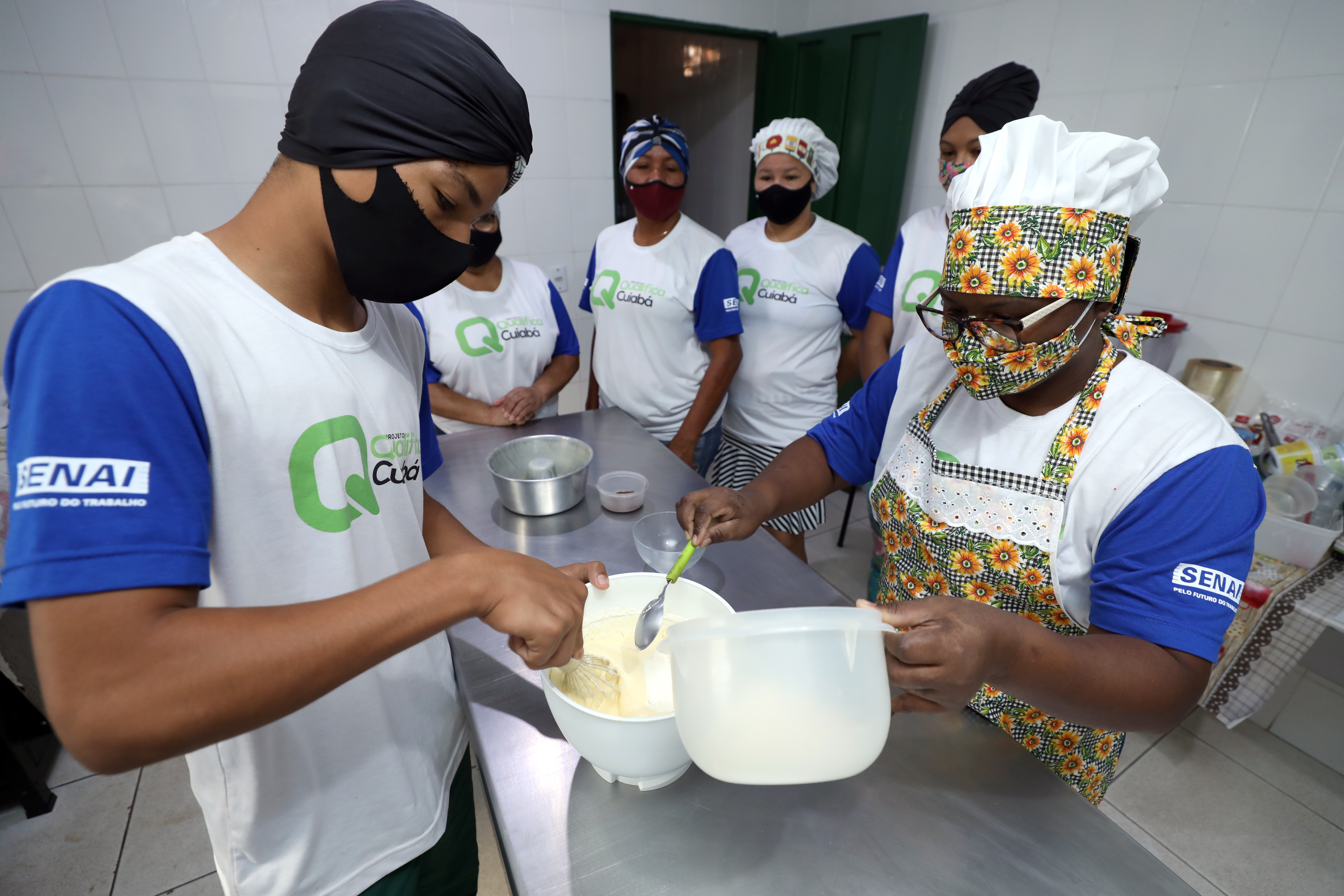 A professora especialista na área da Confeitaria, Célia Ferreira Batista, faz parte da equipe do programa Qualifica Cuiabá desde a sua criação, em 2019. Lembra que durante esse período já capacitou dez turmas, disponibilizando ao mercado, pelo menos, cem novos profissionais. “Muitos alunos chegam pensando que a confeitaria se resumia em apenas bolos confeitados, mas muito pelo contrário, a área é bem ampla e podem ser confeccionados, bolos, doces, pães, entre outros”, avaliou a professora.