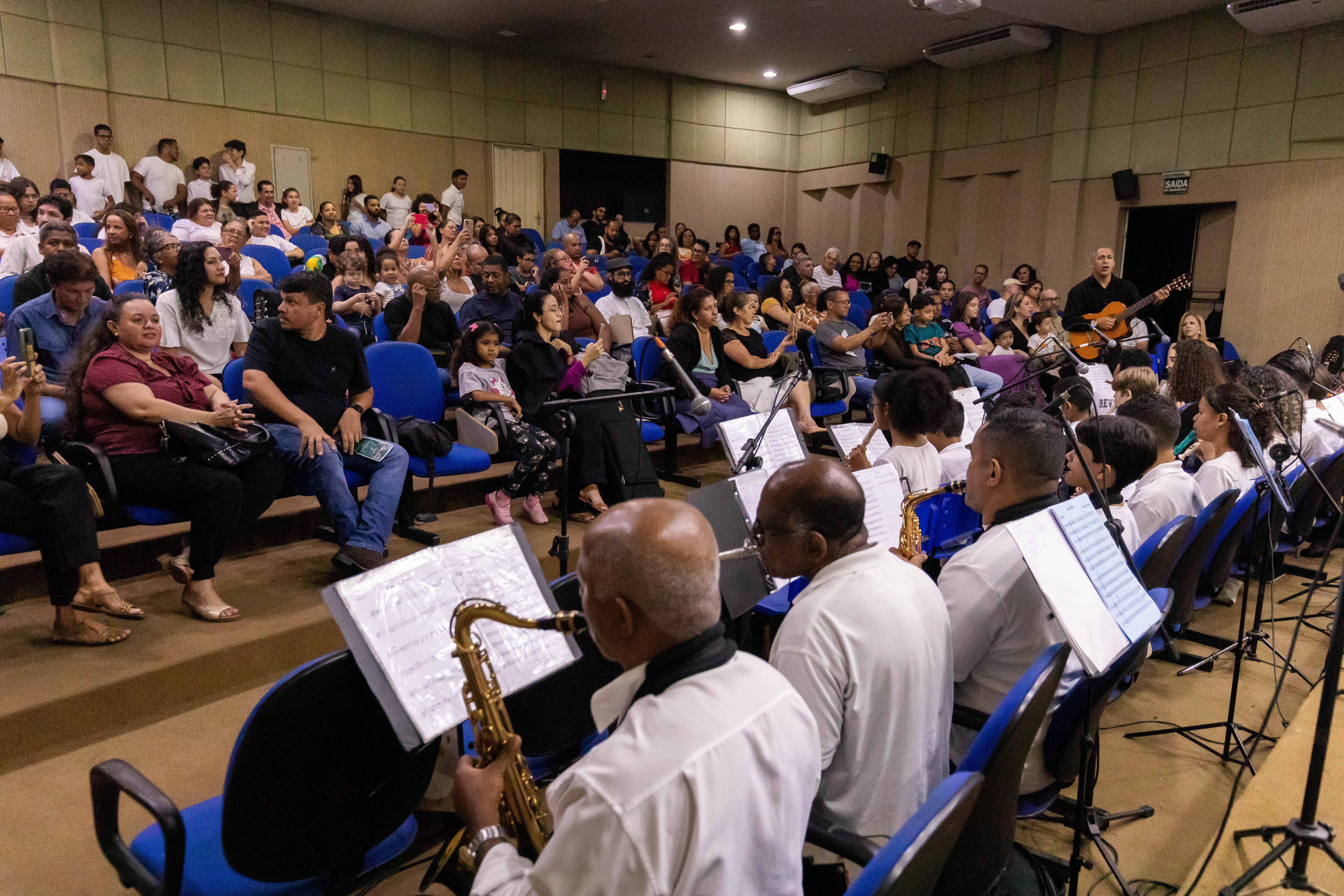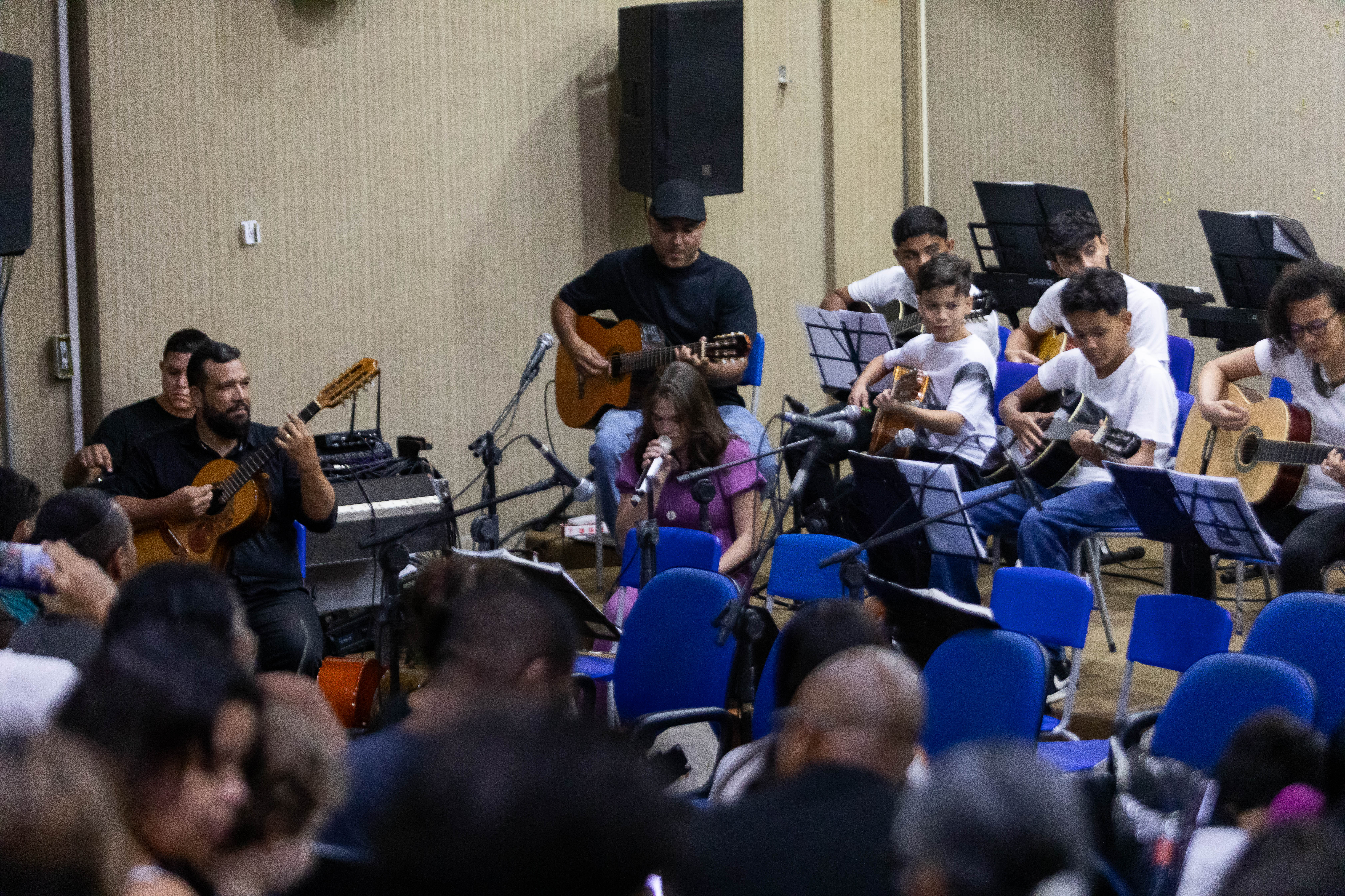 Já pensando em 2026, a Escola Municipal de Música da Prefeitura de Cuiabá, coordenada pela Secretaria Municipal de Cultura, emocionou o público, pais e professores com a apresentação do Recital Anual de fim de ano. Cerca de 50 alunos iniciantes, intermediários e alguns há mais tempo, liderados pelos professores especialistas em música, deram uma demonstração de que o aprendizado não tem idade e que a música integra, socializa e faz bem para o coração. O espetáculo foi realizado na quarta-feira (3), no Colégio Estadual Militar Dom Pedro II, na Av. Mato Grosso. Entre os participantes, realização de sonhos, superação e amor à música.