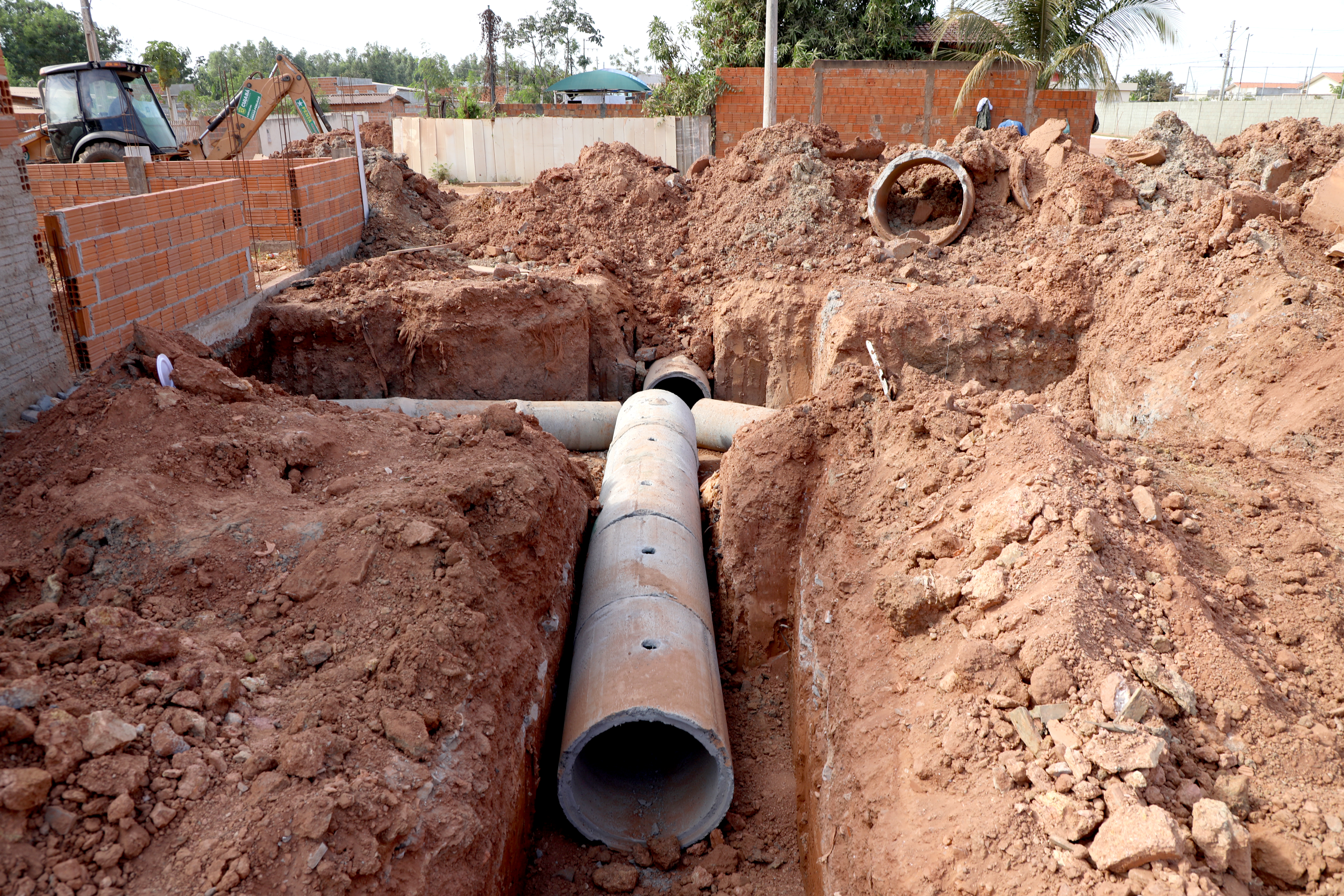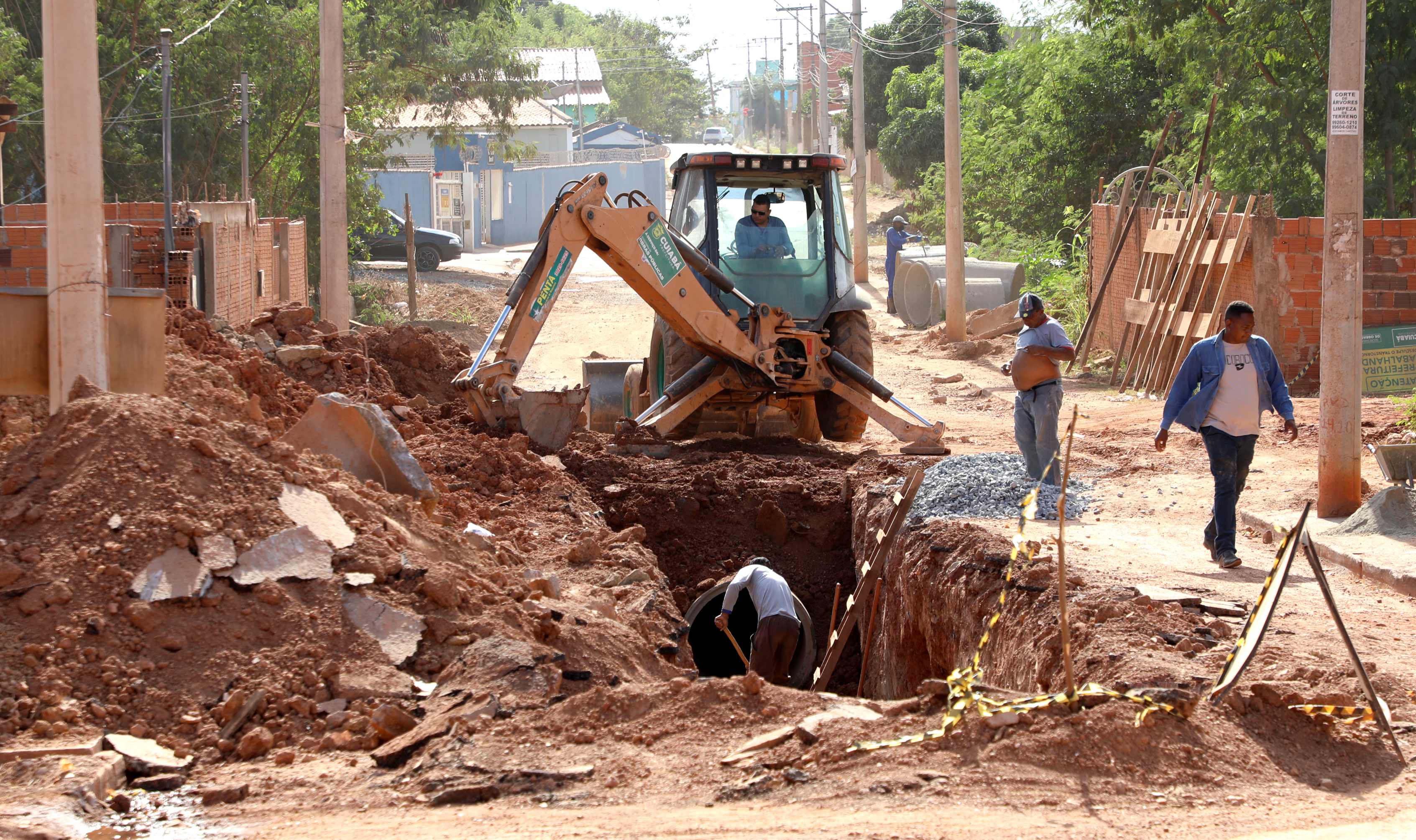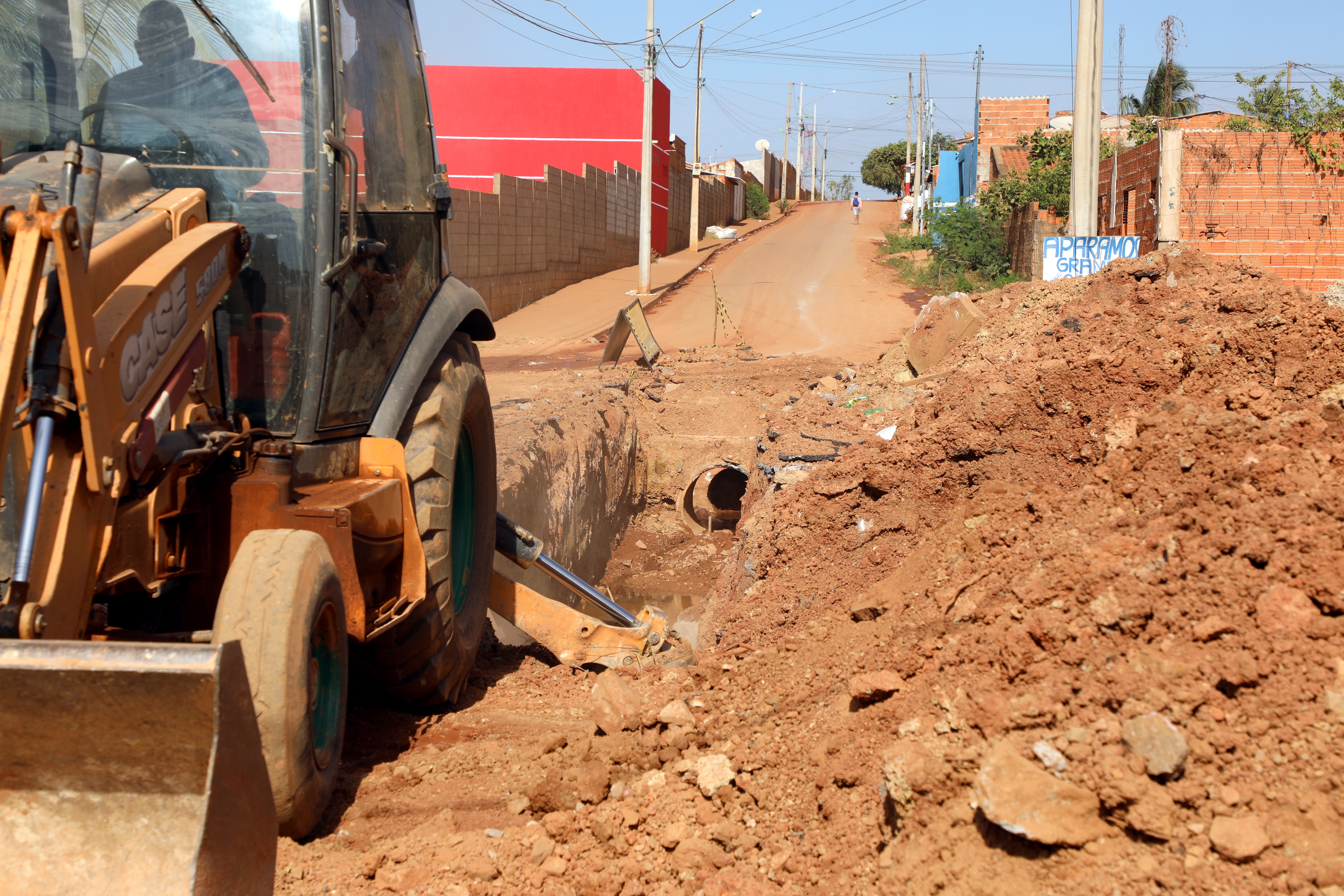 Reconstrução da rede de drenagem em via do Serra Dourada eliminará problema de alagamento