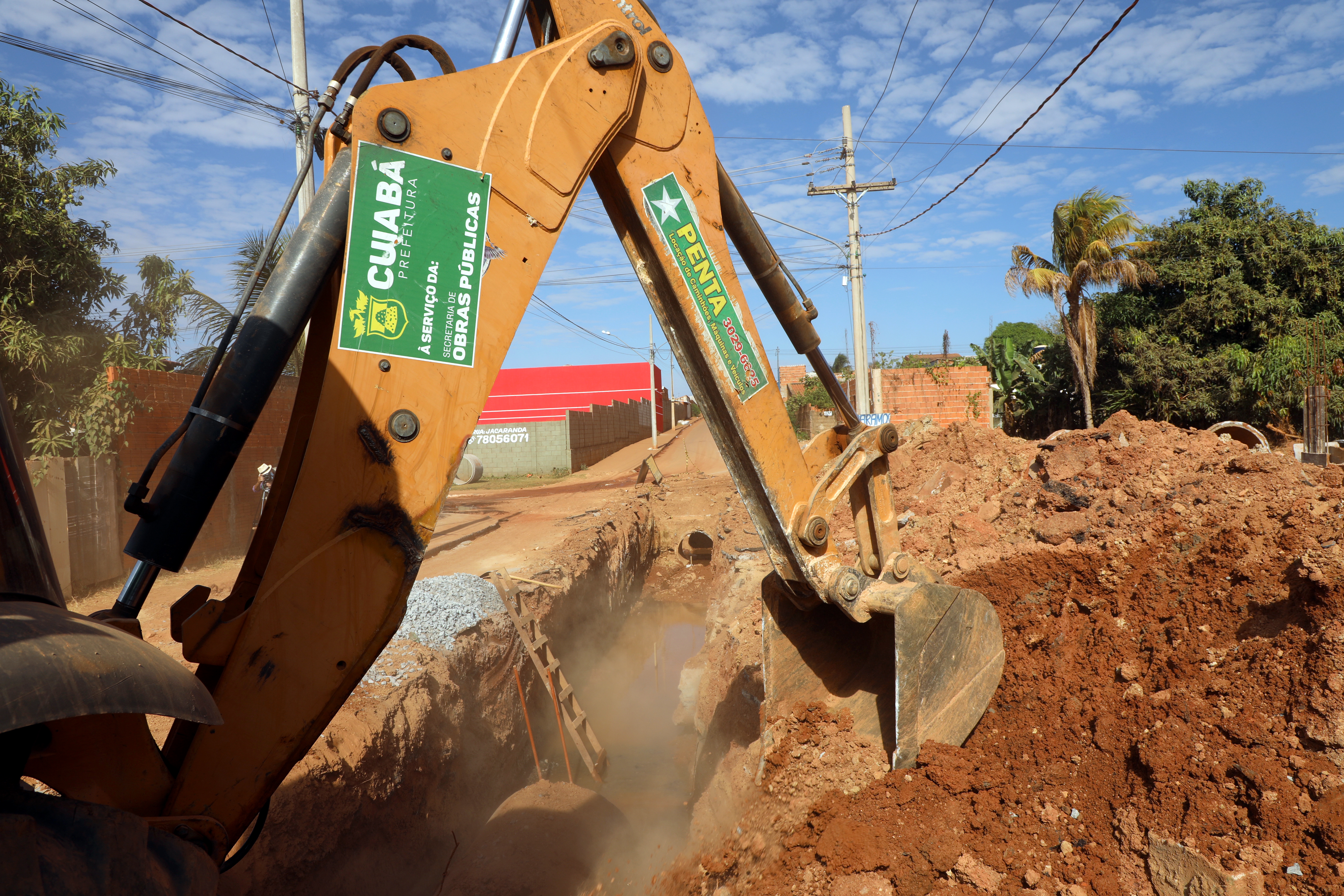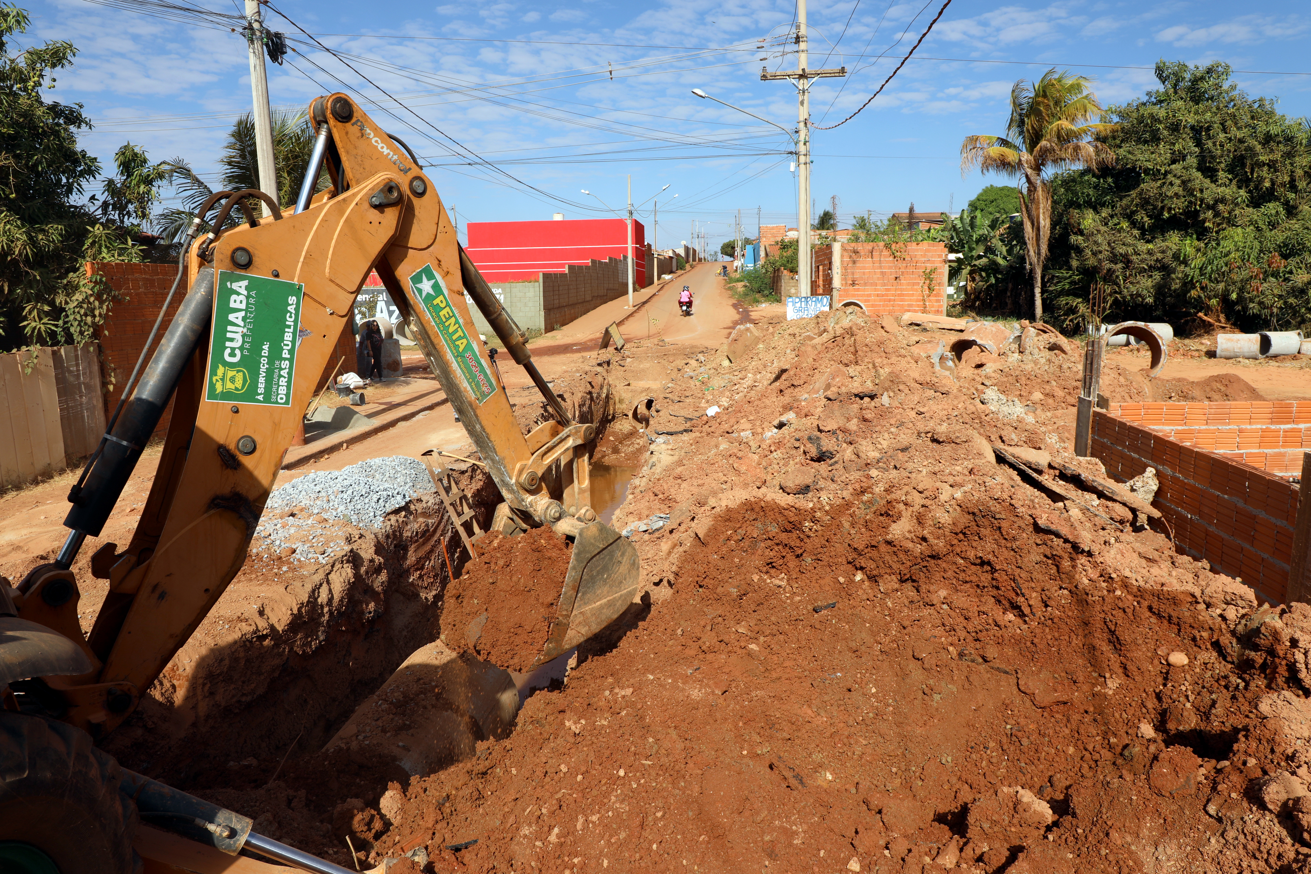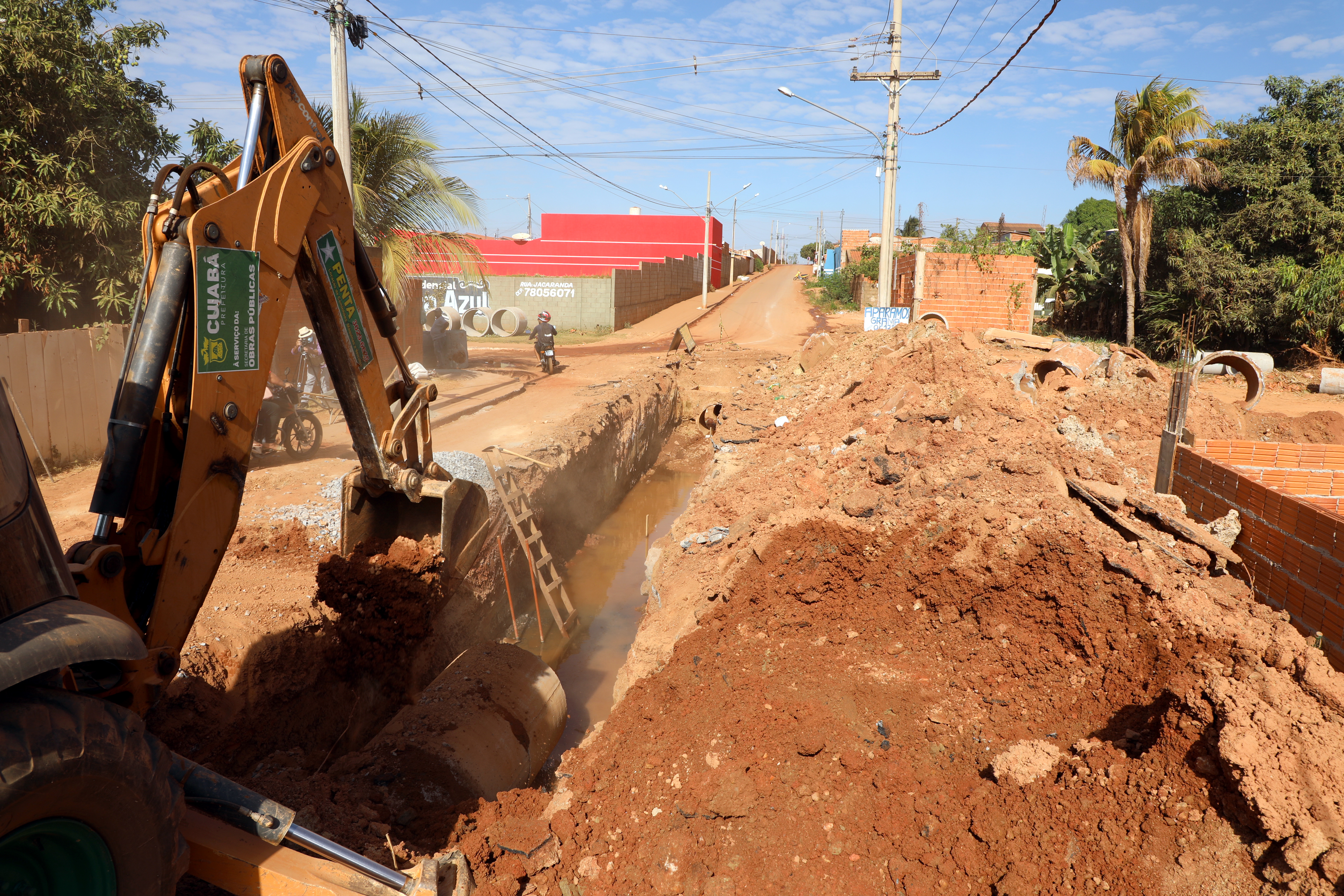 A Prefeitura de Cuiabá está trabalhando para solucionar mais um problema de alagamento identificado pelo mapeamento da Secretaria Municipal de Obras Públicas. Desde o início desse mês de julho, uma equipe está atuando na Rua das Violetas, localizada entre o bairro Serra Dourada e o Residencial Serra Azul.