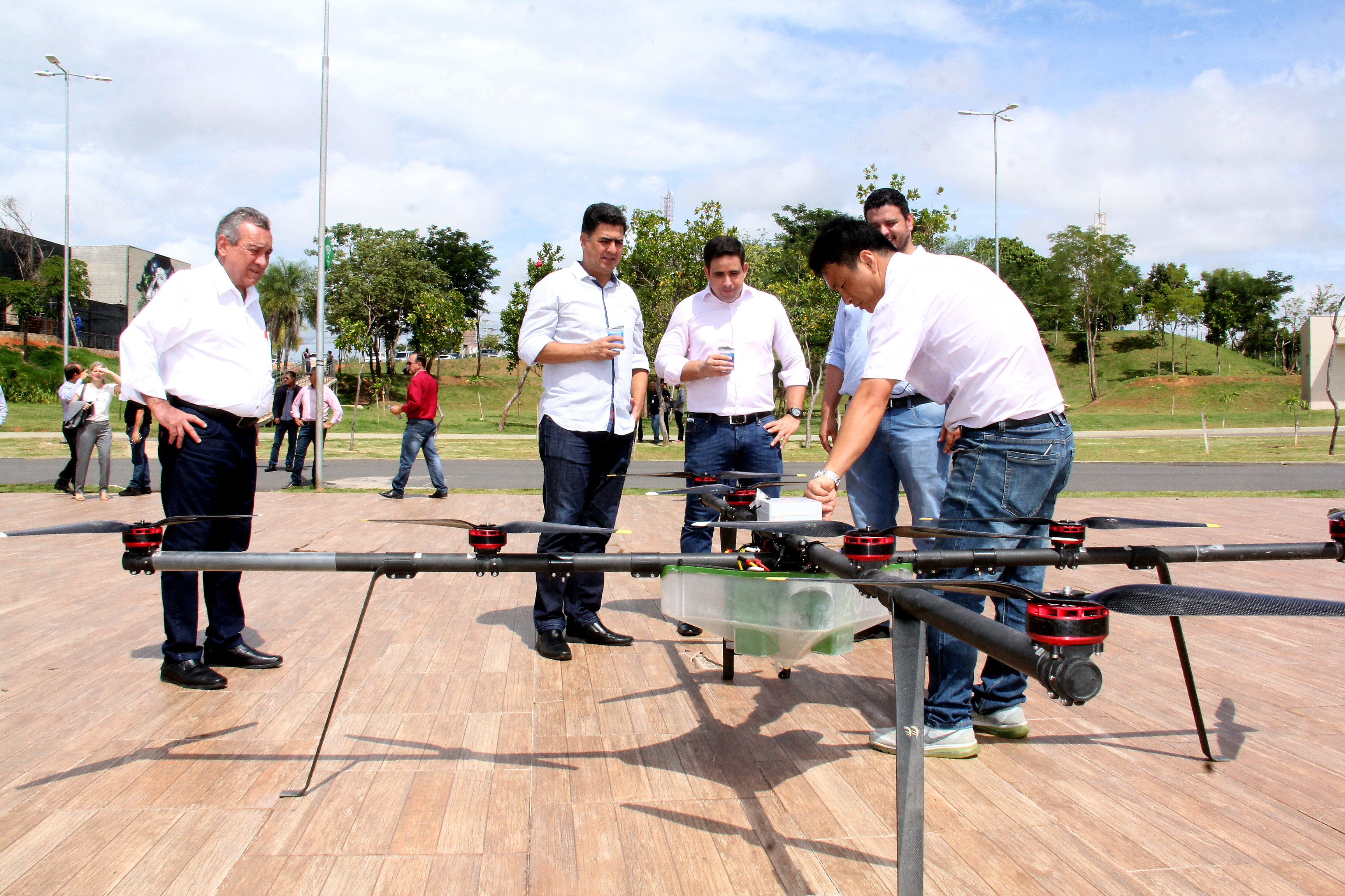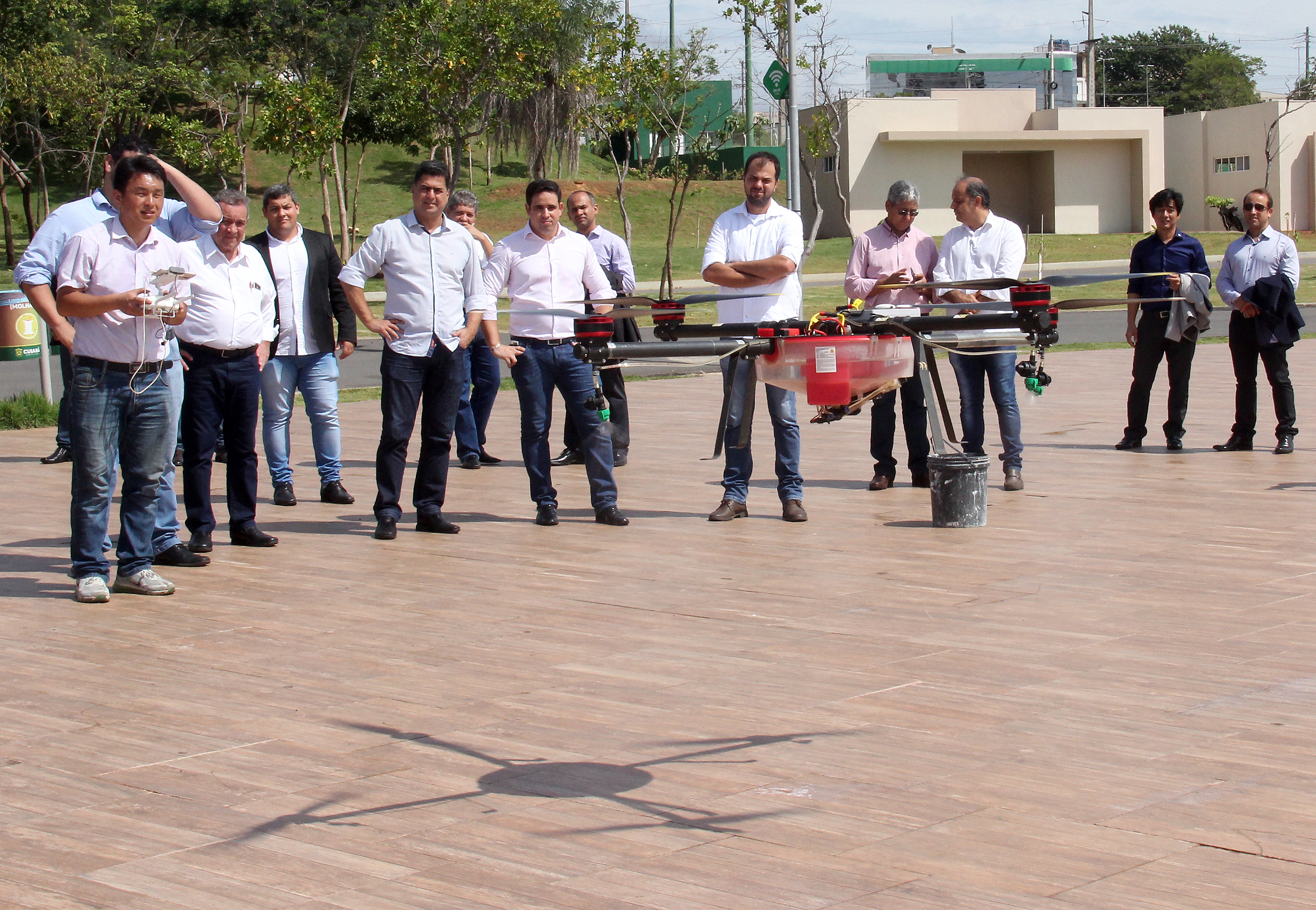 Representantes da empresa chinesa de serviços agrícolas, Zhuhai Yuren Agricultural Aviation Co. Ltd. se reuniram nesta sexta-feira (26) com o prefeito de Cuiabá, Emanuel Pinheiro, e o vice-prefeito, Niuan Ribeiro, no Palácio Alencastro. A visita dos empresários do continente Asiático teve como objetivo a manifestação, por parte dos chineses, do desejo de instalação de uma fábrica de linha de montagem e distribuição de drones agrícolas voltados, principalmente, para a agricultura familiar. O ato contou ainda com a demonstração de funcionamento dos equipamentos, no Parque das Águas.