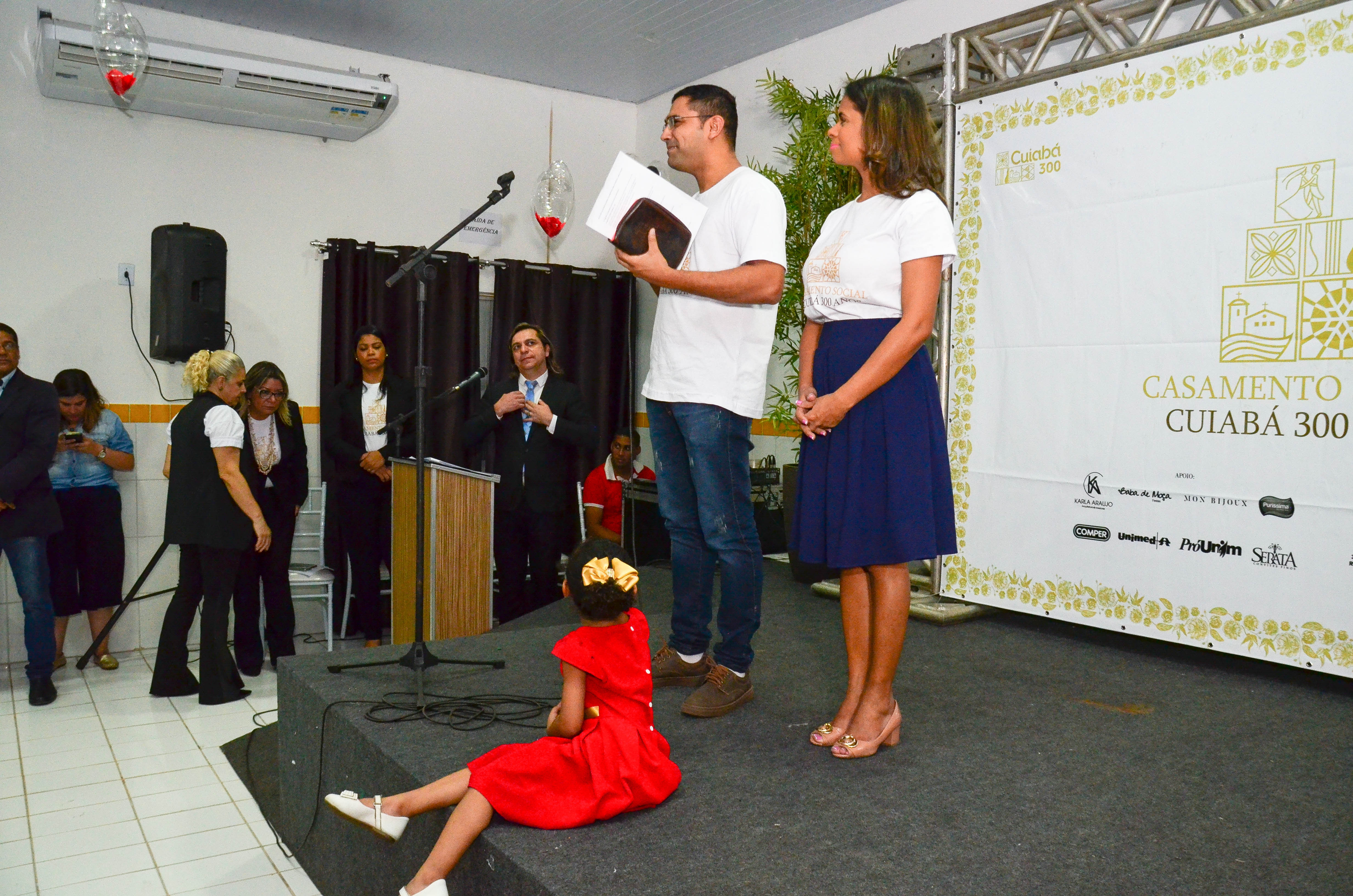 A cerimônia do Casamento Social Cuiabá 300 Anos está sendo realizada pela Prefeitura de Cuiabá, por meio da Secretaria Municipal de Assistência Social e Desenvolvimento Humano, juntamente com o Núcleo da primeira-dama Márcia Pinheiro.