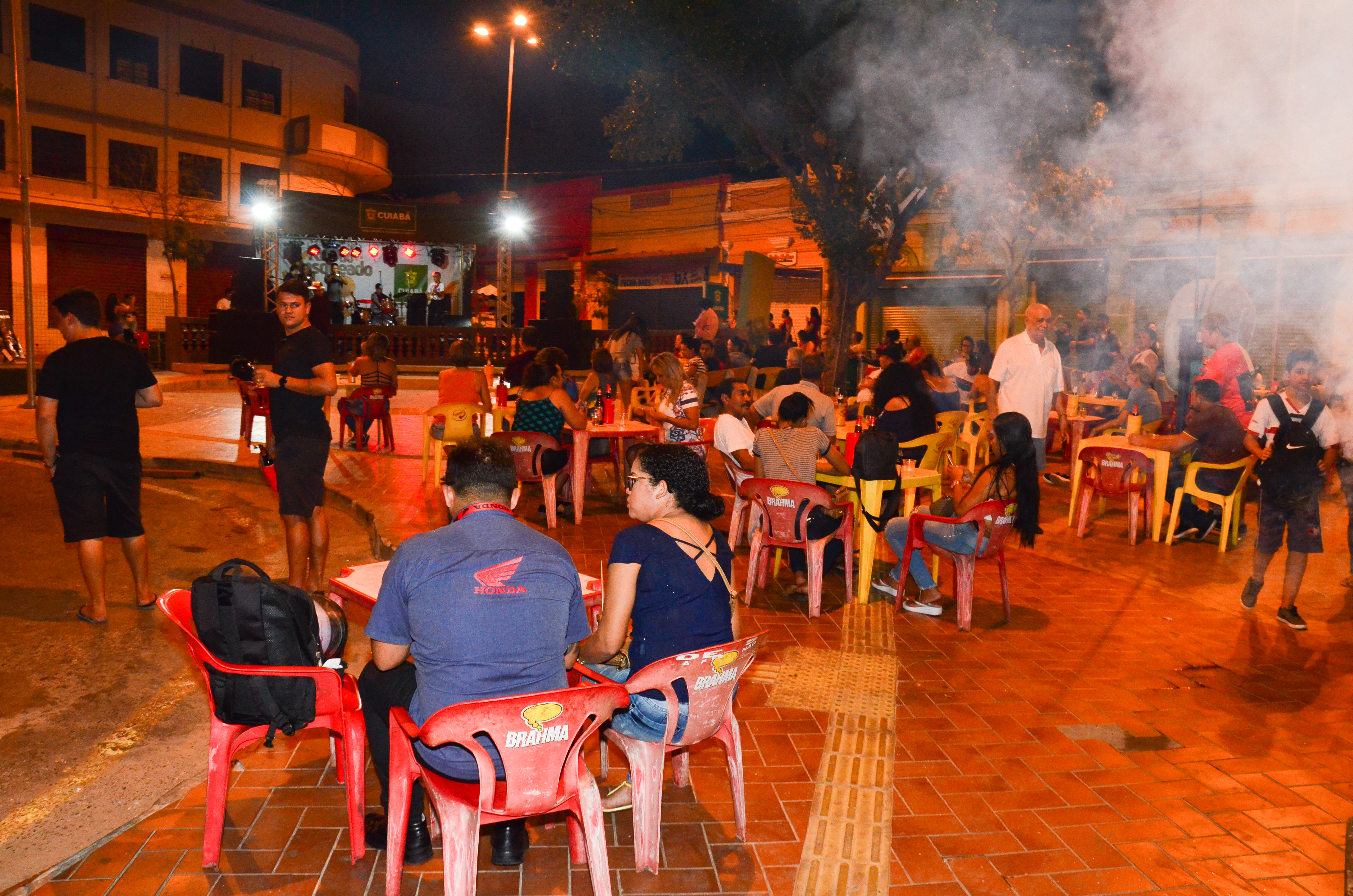Baixando a rua do calçadão, três senhoras no salto desciam logo a frente conversando animadas. Eram 18h, o comércio fechava e enquanto trancava a porta, uma jovem respondia pra colega ‘o som é do festival de lambadão’. Na praça Caetano Albuquerque o quadro de outrora começava a ser composto, as cadeiras de plástico em frente as casas antigas, o espetinho assando, a cerveja suada e o rasqueado tocando.