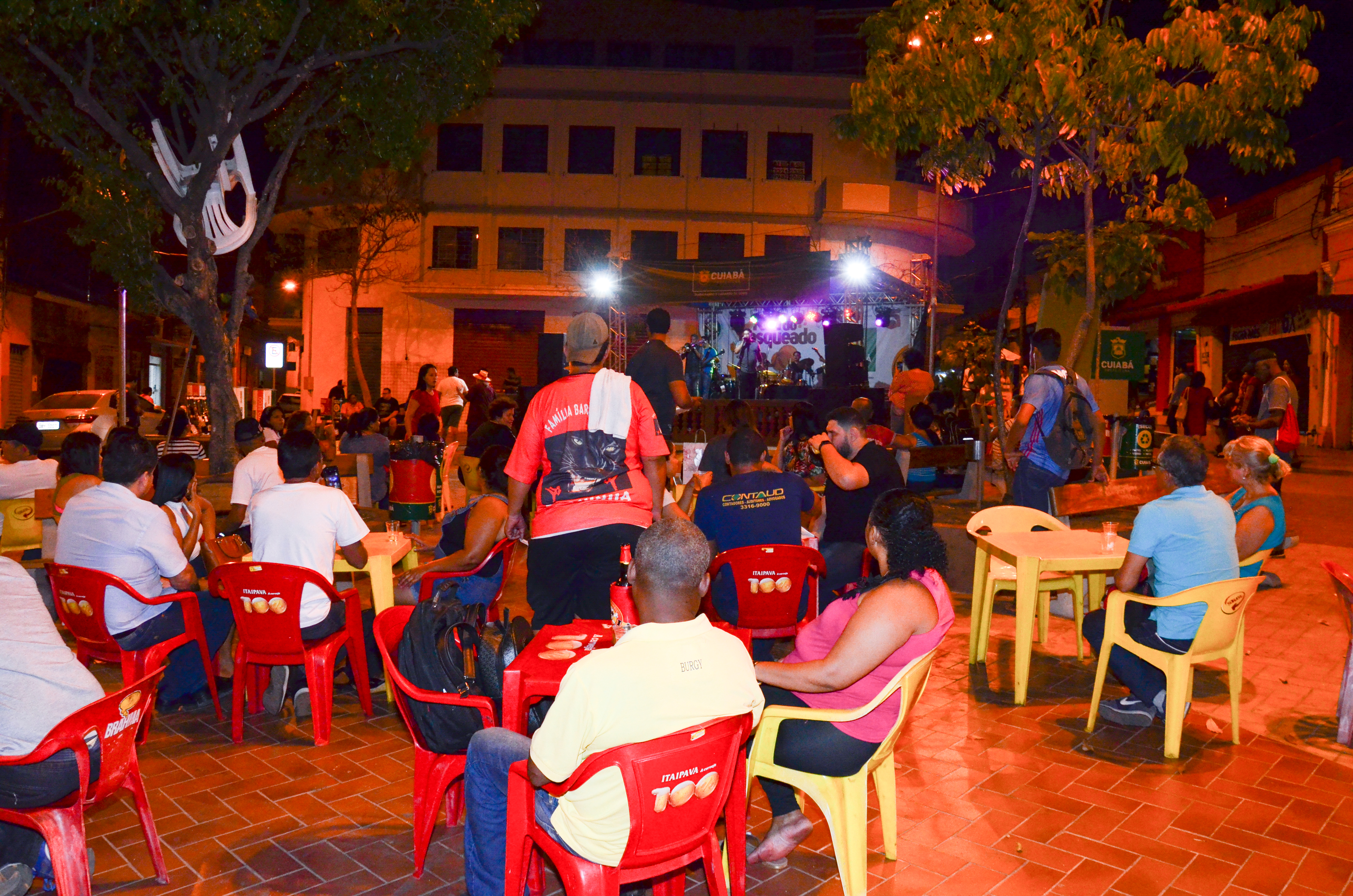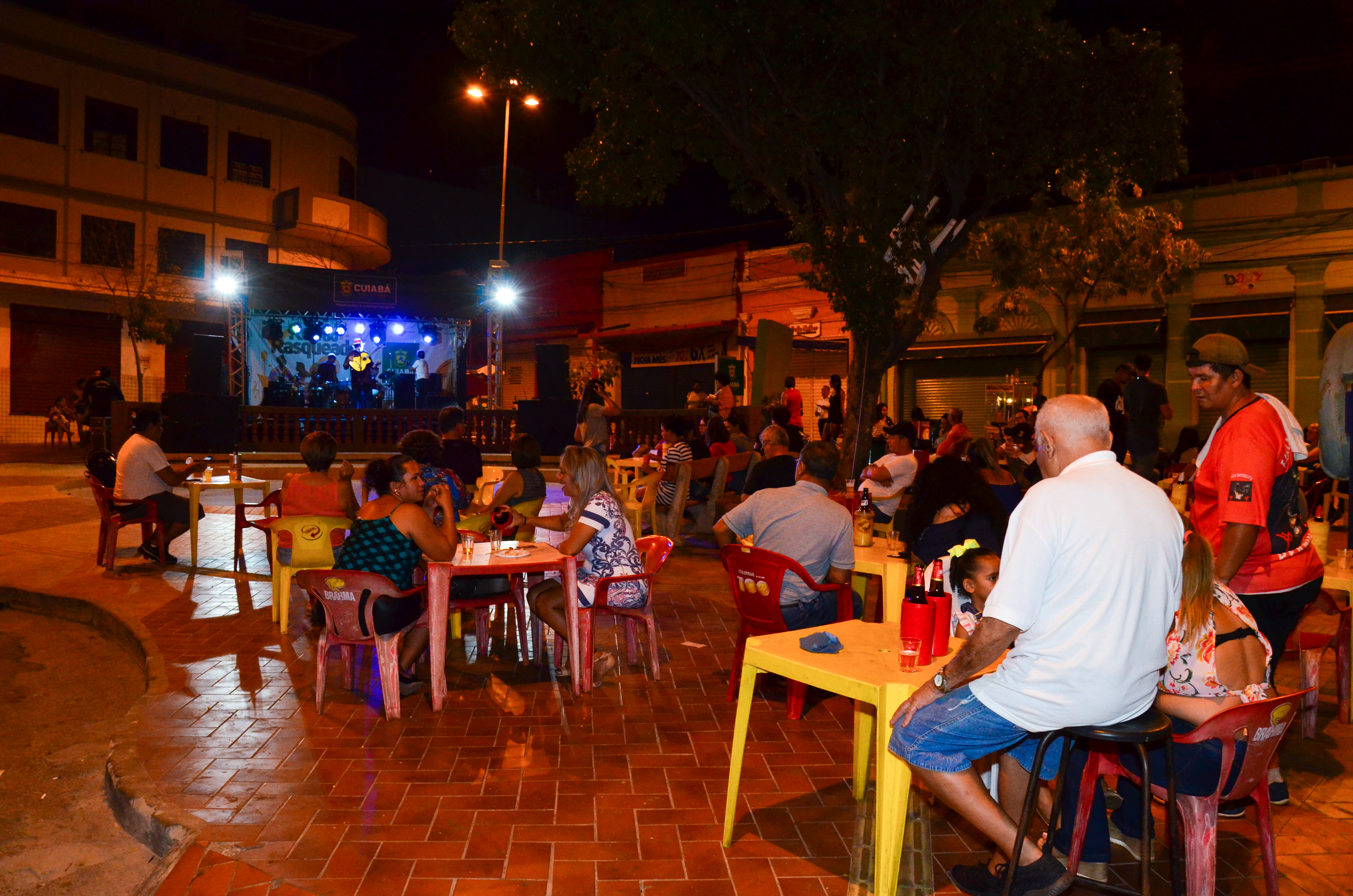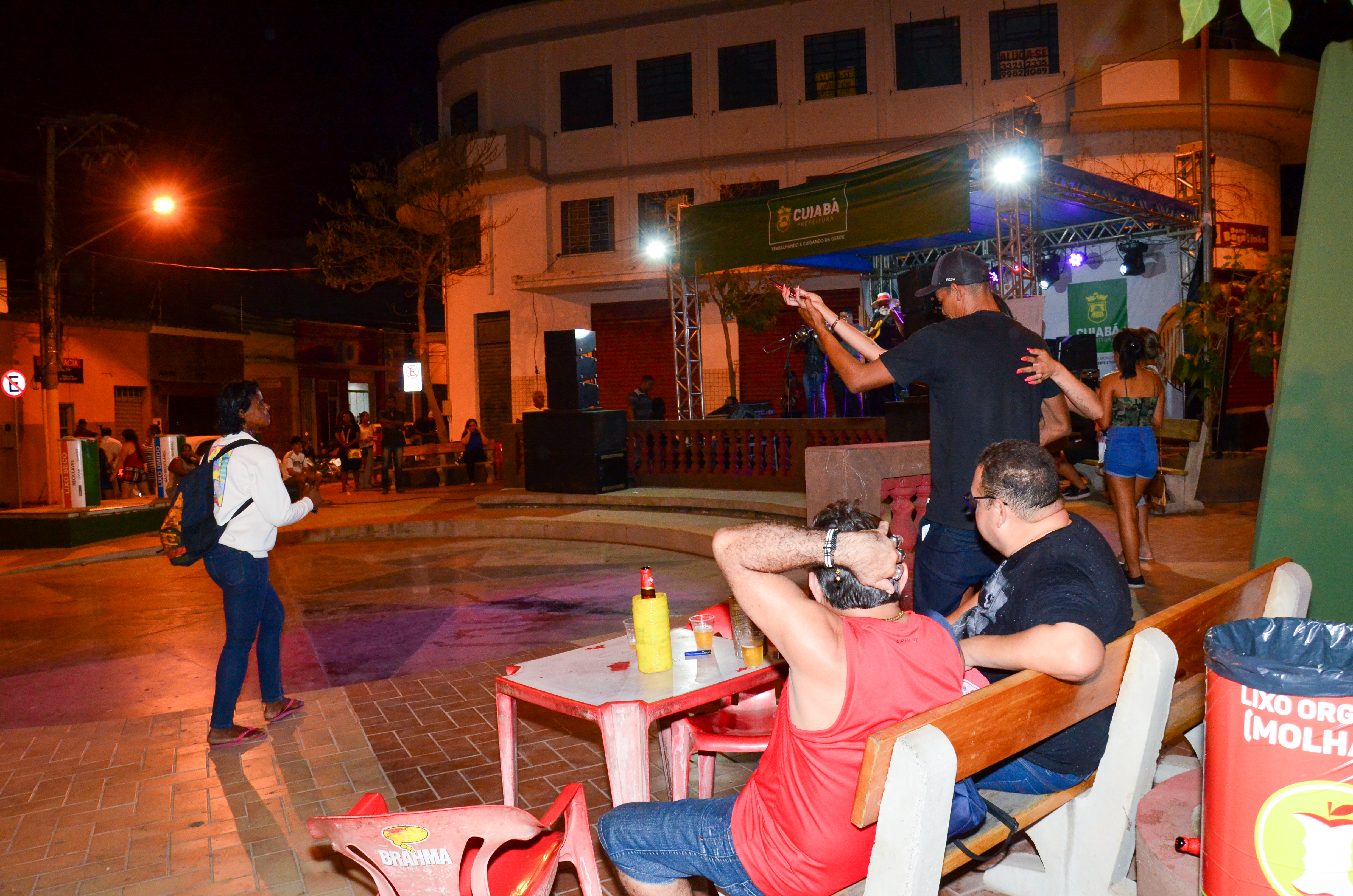 Pra sapiar ou pra dançar? A arquitetura da praça é democrática, com pista de dança ao centro e com parapeito para os que querem observar o movimento. Sapiando das mesas estavam Vera-Zuleika, a dupla ‘Cuiaboca’ mais cultural da praça. Vera Baggetti é carioca da gema, deixou a praia pelo cerrado há mais de 30 anos. Zuleika Arruda é cuibana de tchapa e cruz, de família simbólica pra cultura local. As duas juntas são compositoras consagradas de rasqueado e cultura popular mato-grossense. Que cuiabano não conhece “eu tenho orgulho de ser cuiabano, de tchapa e cruz, confesso e não me engano, moro na pracinha, perto da prainha...danço rasqueado na casa de Bem-Bem, como bolo de arroz e de queijo também”?