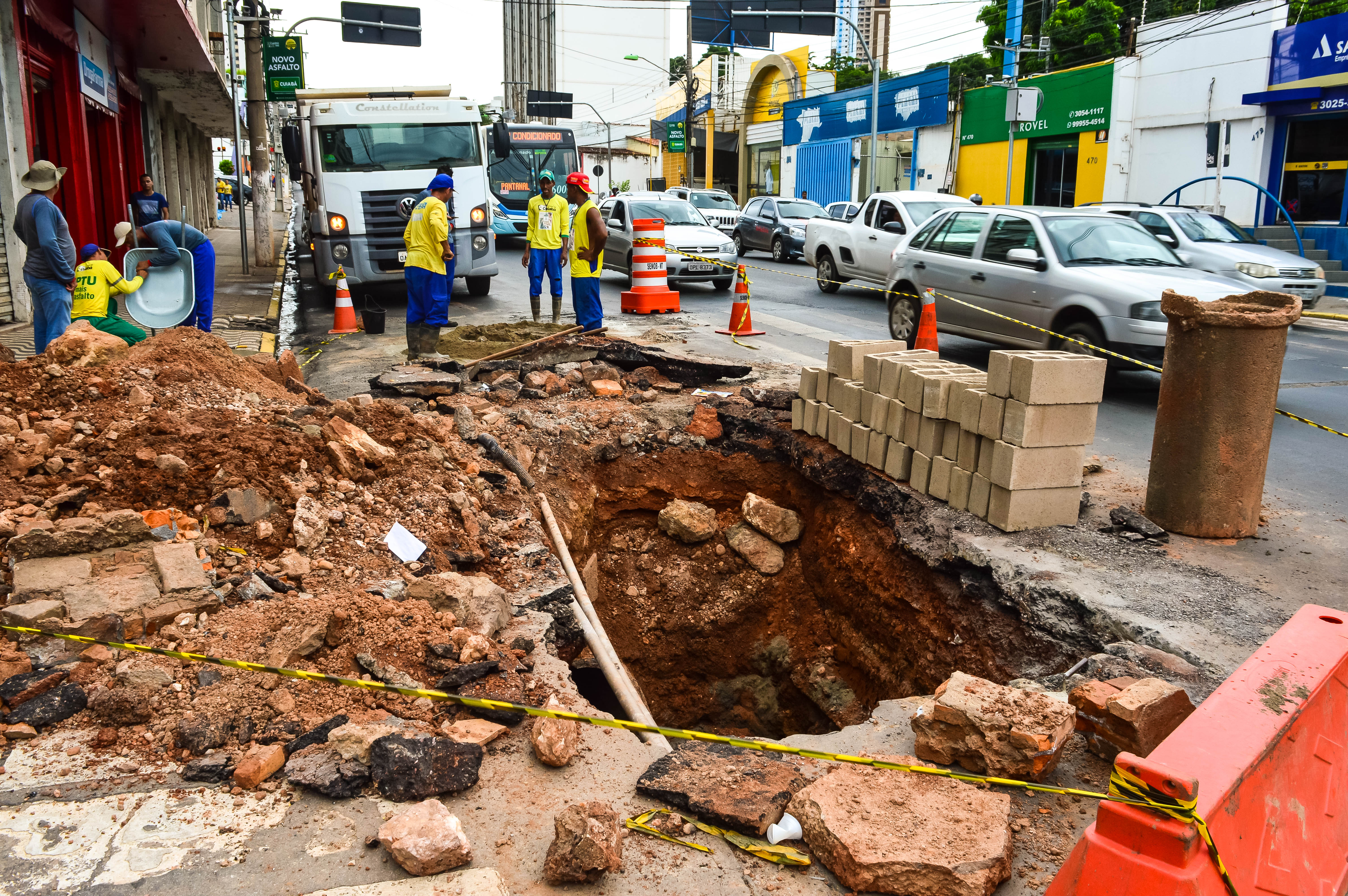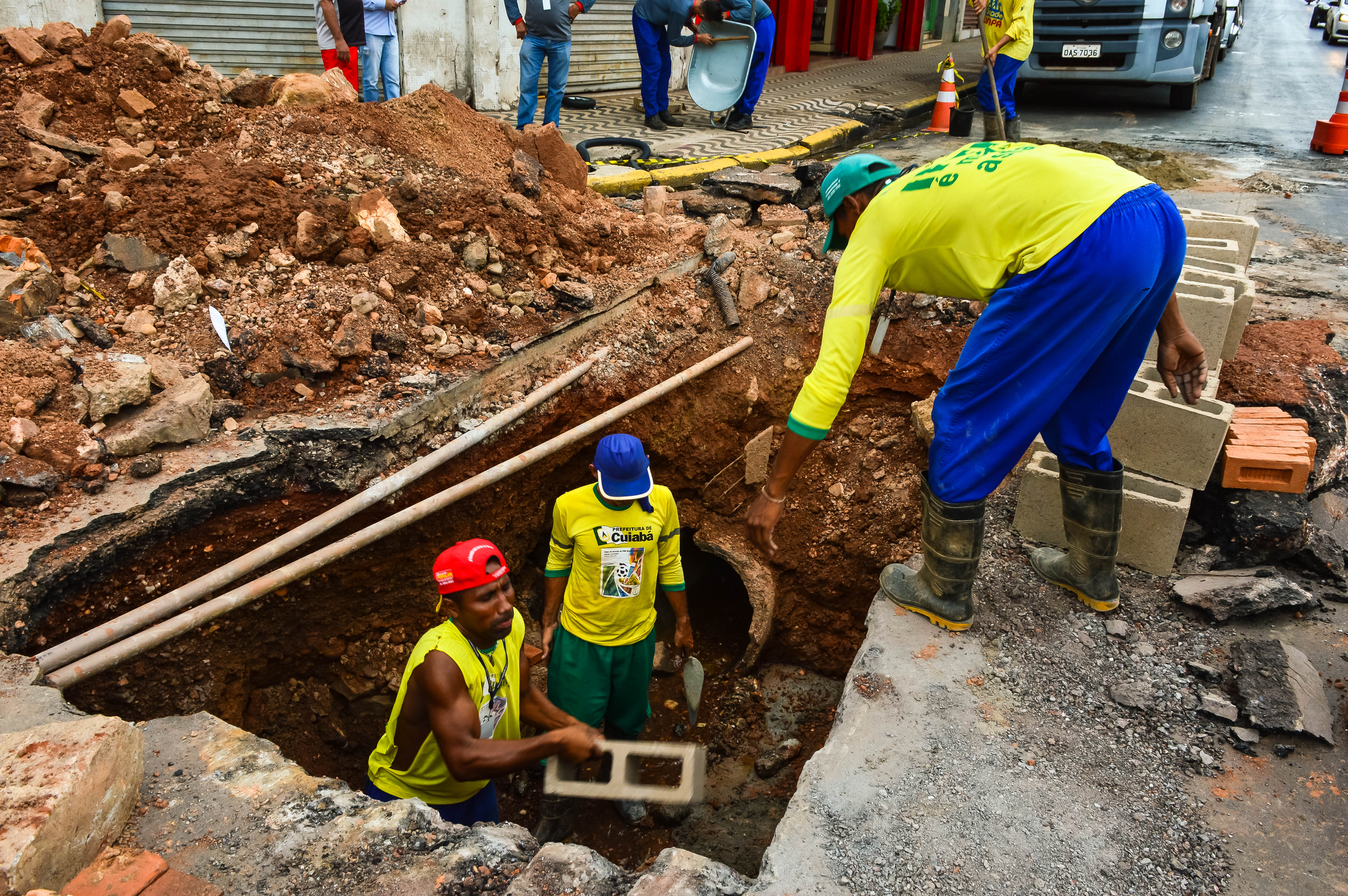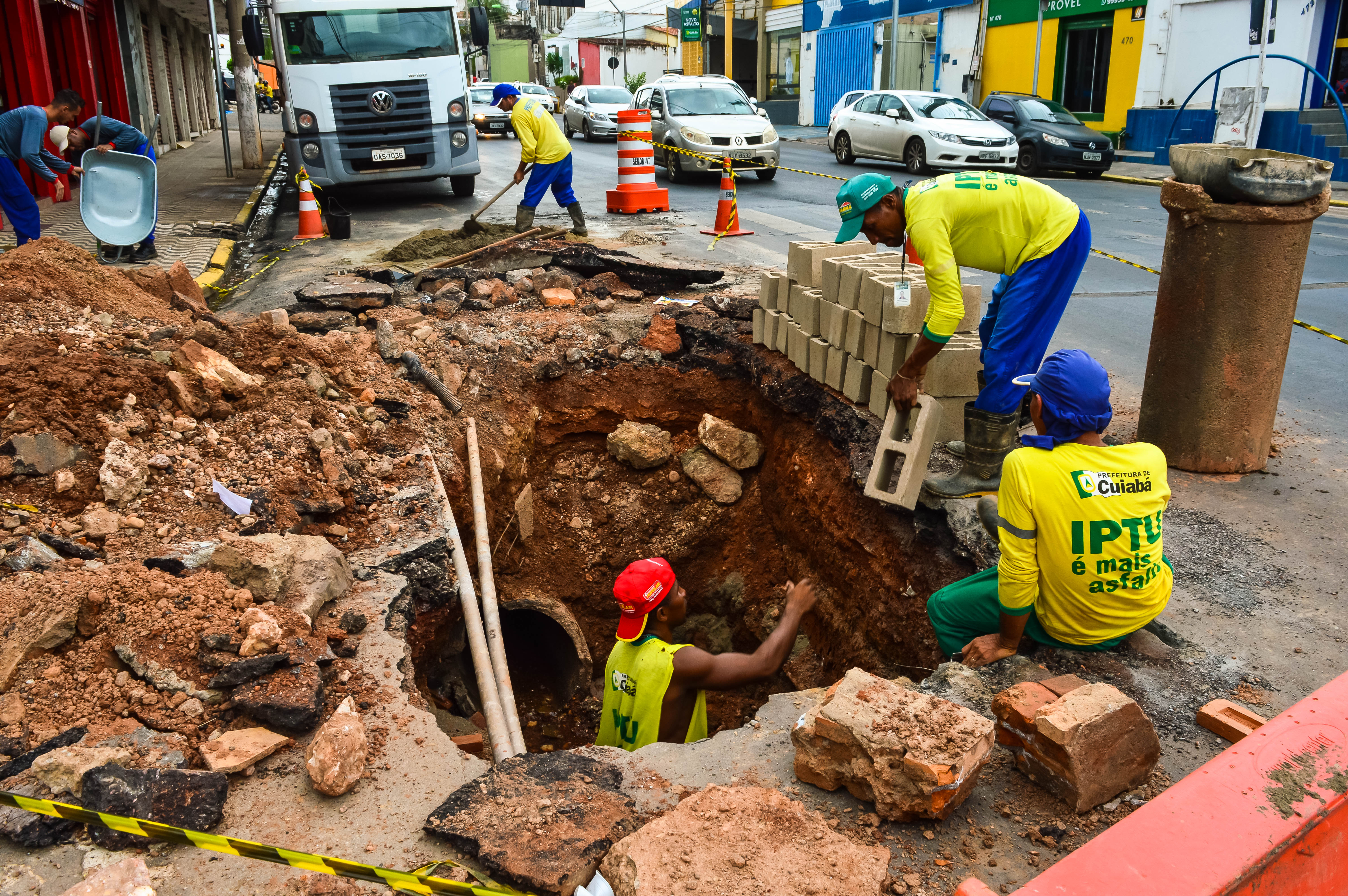 A Prefeitura de Cuiabá deu inicio nessa terça-feira (20) a uma intervenção emergencial na área central da Capital. A atuação, realizada por meio de uma equipe da Secretaria Municipal de Obras Públicas formada por pelo menos 10 trabalhadores, está ocorrendo no cruzamento da Avenida Isaac Póvoas com a Rua Comandante Costa, onde foi identificado o rompimento de uma caixa de passagem de águas pluviais.