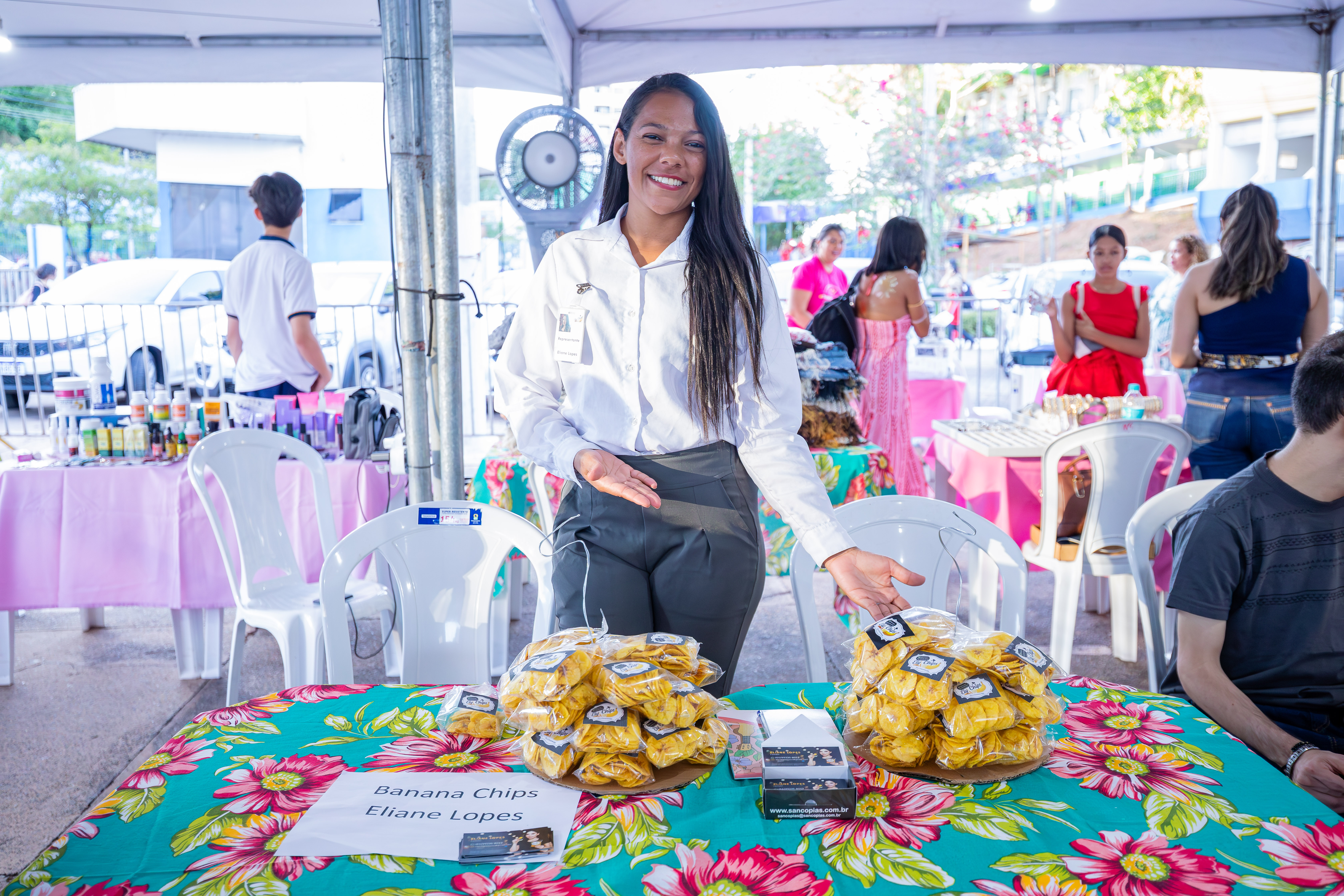 “Vim para o evento para inspirar essas mulheres, e aprendi muito. Amei as palestras. E posso afirmar que estou só começando no meu negócio. Comecei vendendo bolo de pote de porta em porta, fiz minha marca, cumpri um propósito com Deus e ele transformou minha trajetória. Minha preocupação sempre é como o produto vai chegar ao cliente. Isso faz muita diferença”, ensinou Taliane Duarte, proprietária da La Chocolê Doceria.
