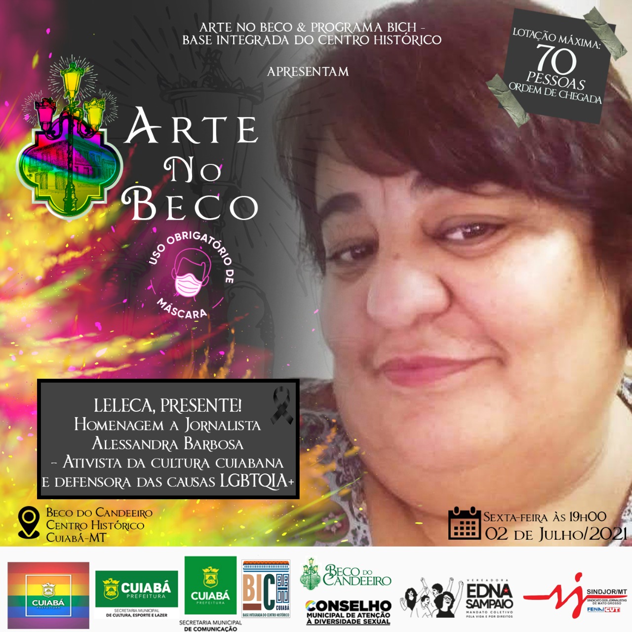 A Secretaria de Cultura, Esporte e Lazer vai homenagear a jornalista Alessandra Barbosa durante evento no Beco do Candeeiro nesta sexta-feira (02), a partir das 19h. A programação do Beco do Orgulho, é alusiva ao Dia Internacional do Orgulho LGBTQIA+. Alessandra era conhecida pelo posicionamento combativo em defesa das minorias e da valorização da cultura. A jornalista e ex-assessora de imprensa da Secretaria de Comunicação, da Prefeitura de Cuiabá, faleceu no último dia 11 de junho, vítima de insuficiência cardíaca.