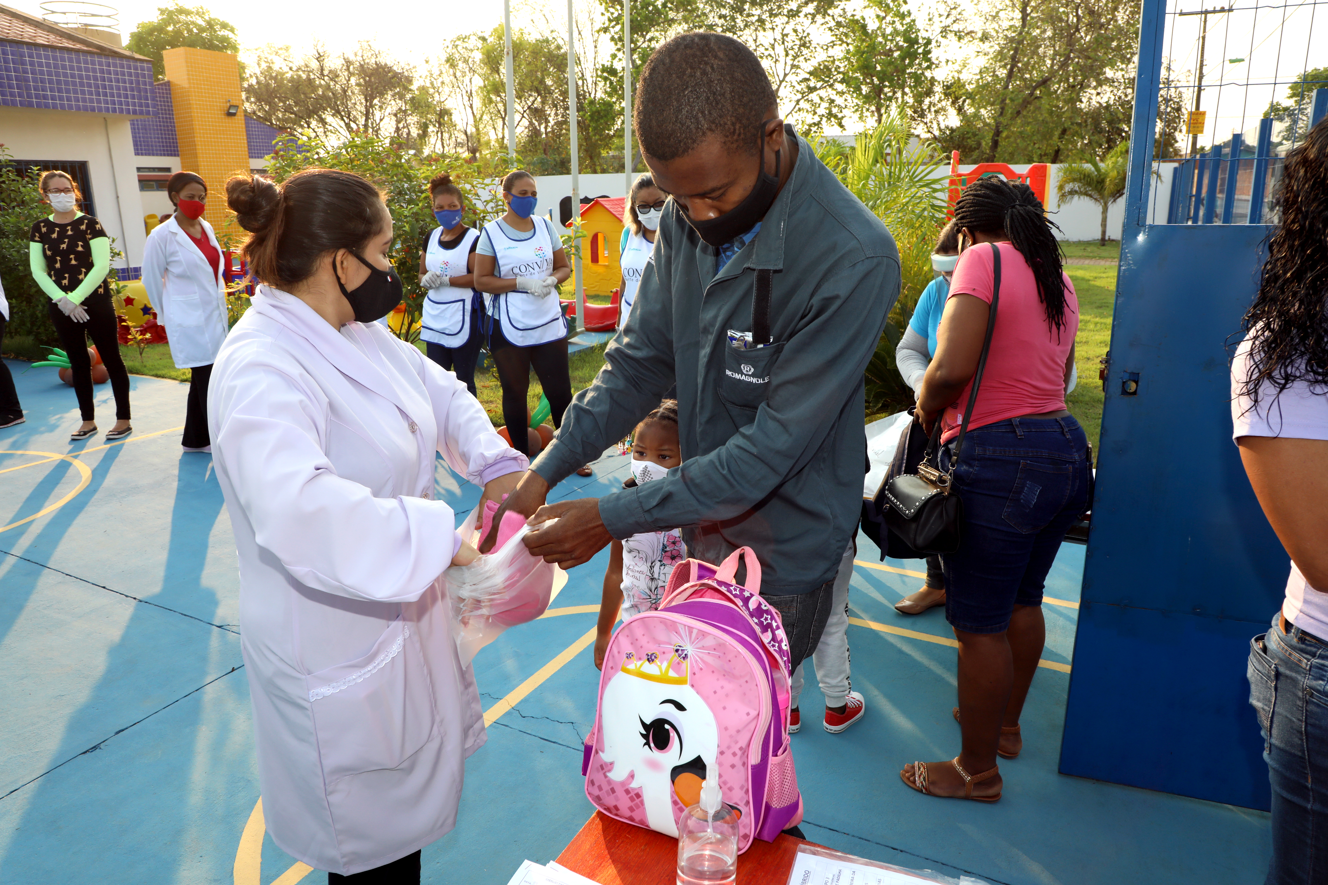 De acordo com a diretora do CMEI Engenheiro Oscar Amélito, Eliane Moura, o primeiro dia de aulas presenciais, no modelo híbrido, foi melhor do que o esperado. As crianças foram recepcionadas no portão da unidade, onde os pais tiveram que responder a um questionário informando se a criança ou algum familiar teve algum sintoma gripal nos últimos dias, houve a aferição de temperatura corporal dos alunos, os pertences de cada criança foram colocados em sacos plásticos separados e identificados e todos os profissionais usavam máscaras, luvas e jalecos. “Os pais aceitaram muito bem as novidades, os protocolos... Obedeceram direitinho, foi tudo muito calmo, foi surpreendente a calma das famílias e das crianças, principalmente. Teve uma que voltou porque estava apresentando sintomas de gripe. Os pais entenderam a situação porque é um cuidado da saúde coletiva e já foram orientados a procurar a unidade de saúde mais próxima e, qualquer coisa, entrar em contato conosco que a unidade vai acompanhar caso a caso, juntamente com a Saúde”, disse.
