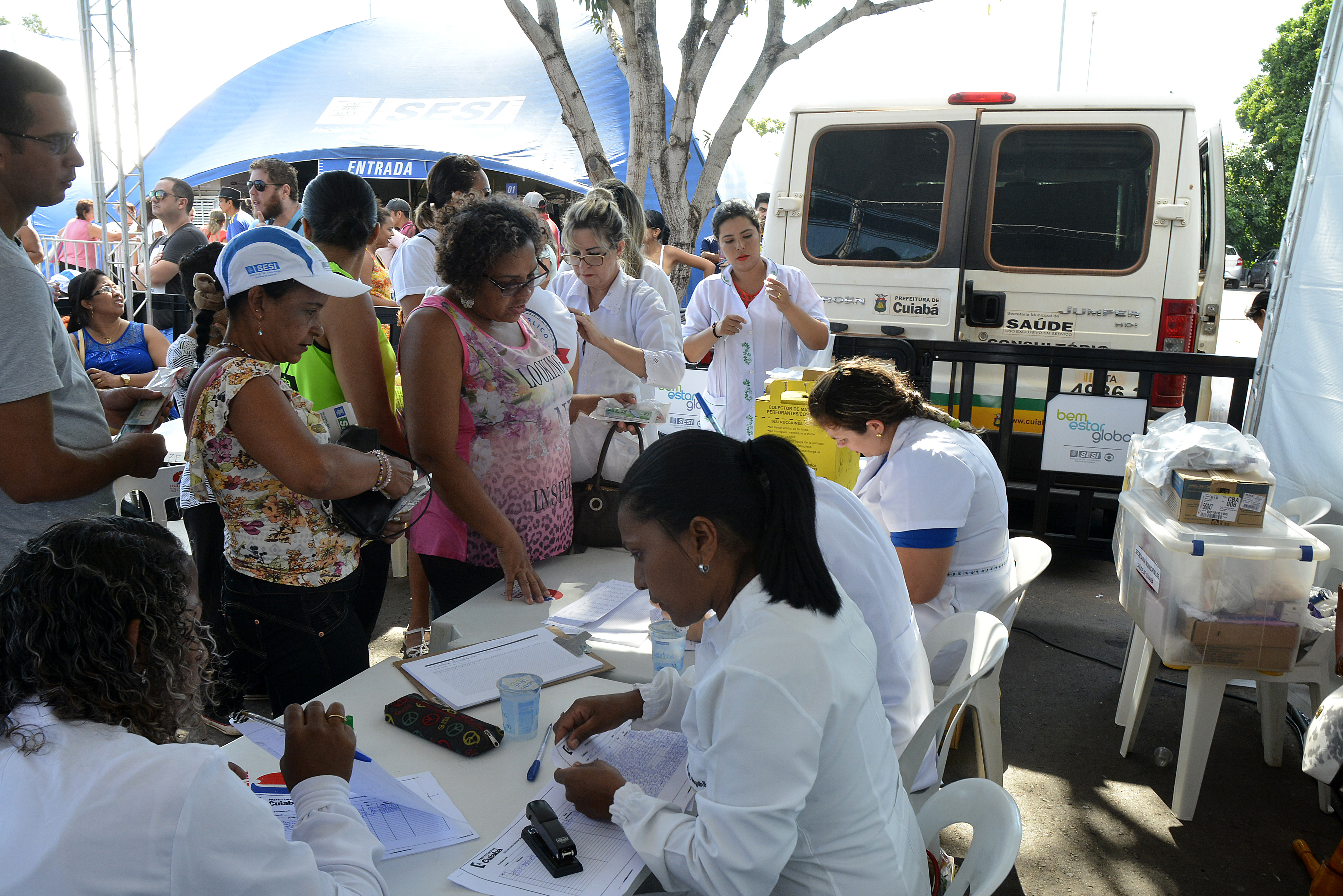 Duzentas e uma pessoas foram vacinadas na manhã desta sexta-feira (11) pelos profissionais da Secretaria de Saúde de Cuiabá, durante ação no Parque Tia Nair. Os profissionais da Rede de Atenção Básica de Cuiabá participaram do Bem Estar Global, evento promovido pela Rede Globo em parceria com o Serviço Social da Indústria (Sesi), com o objetivo de levar serviços de saúde e qualidade de vida à população.