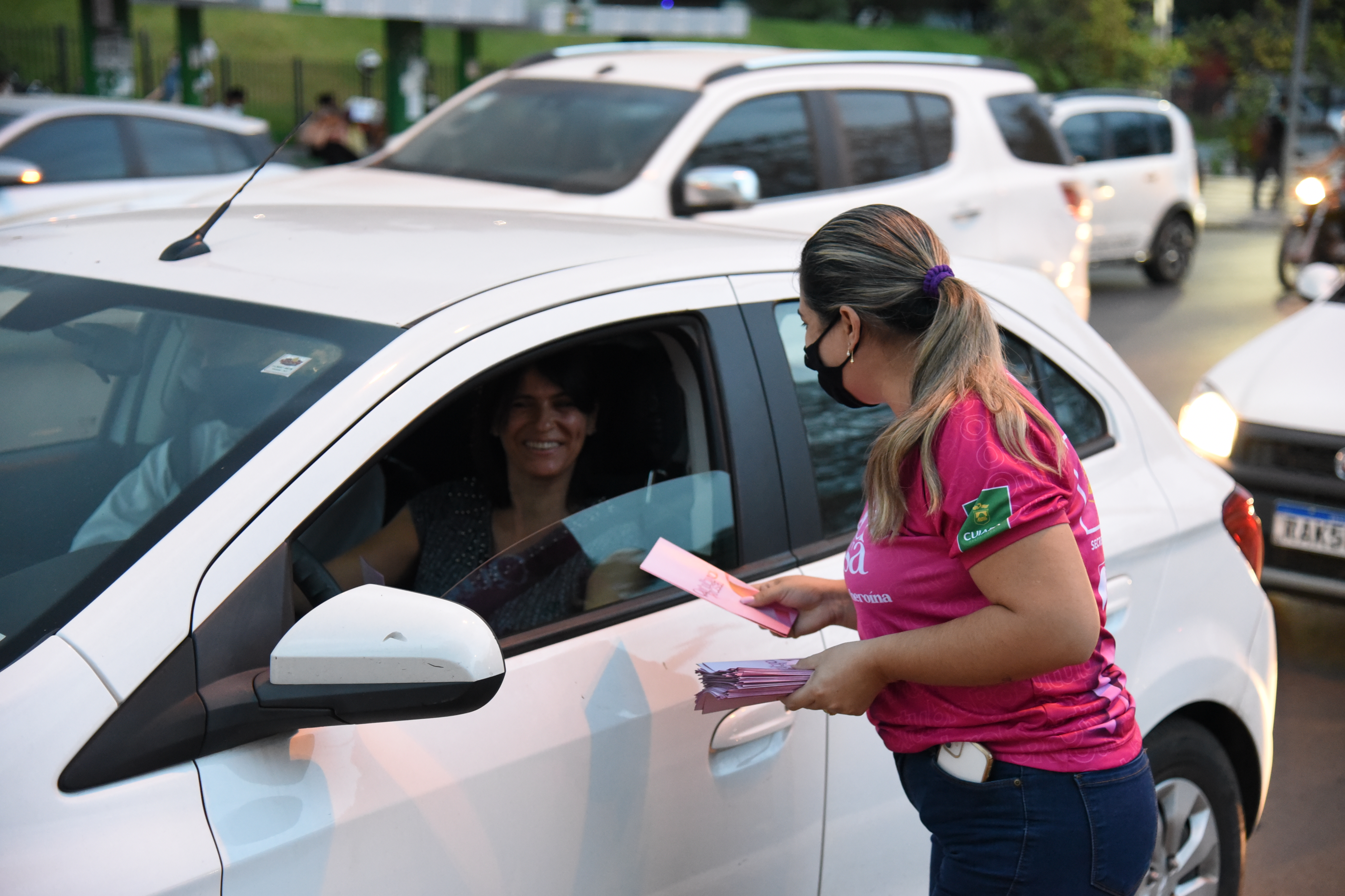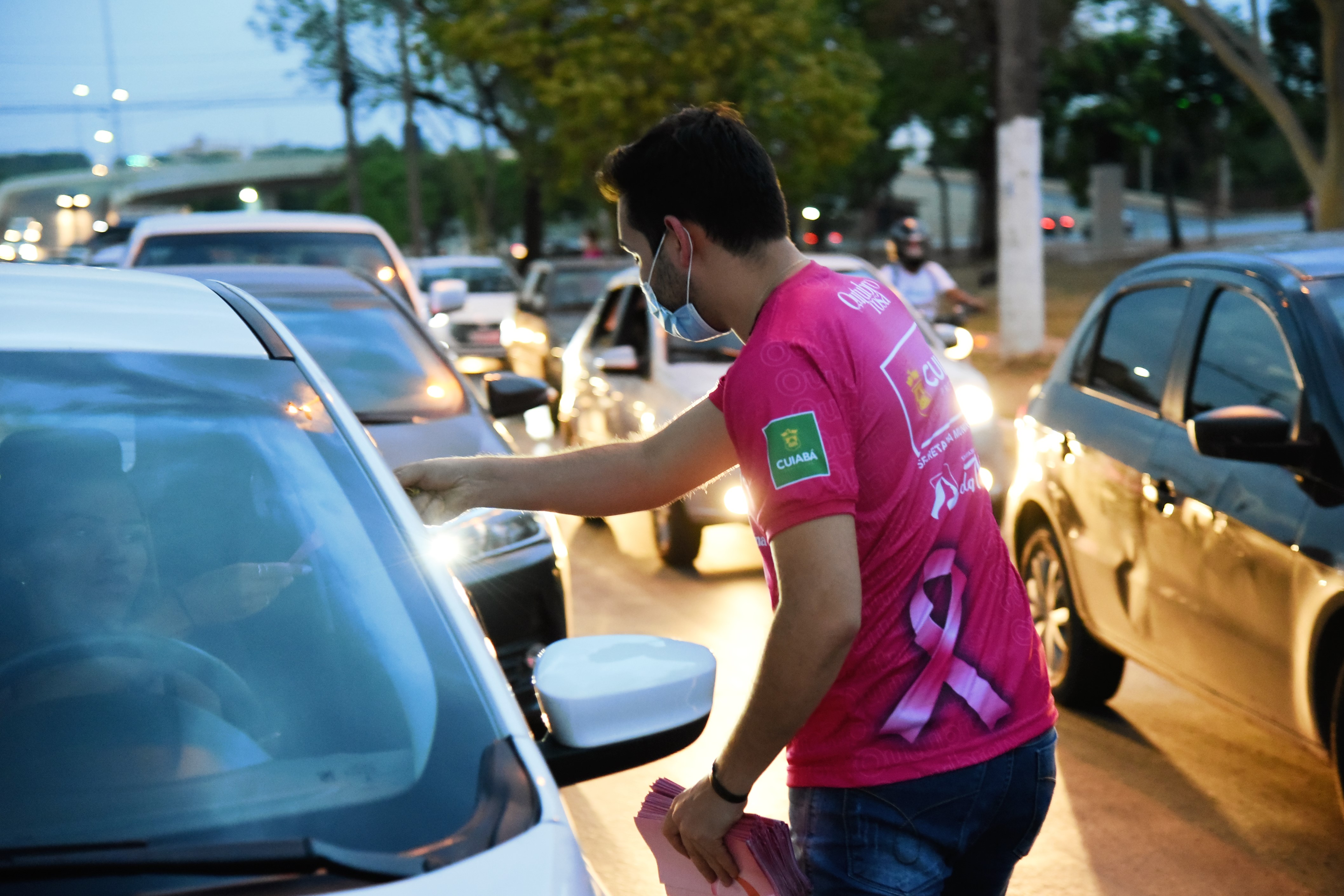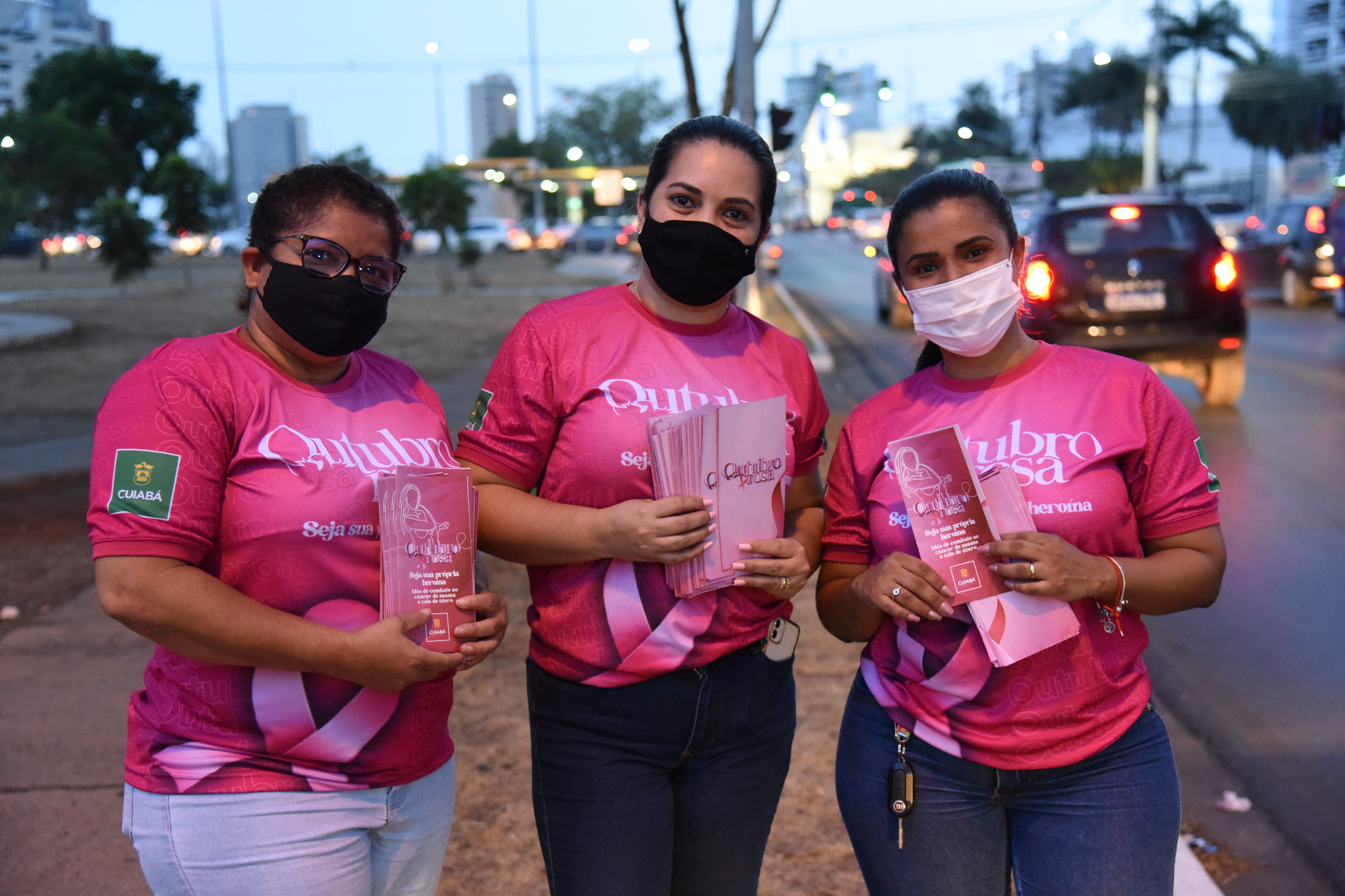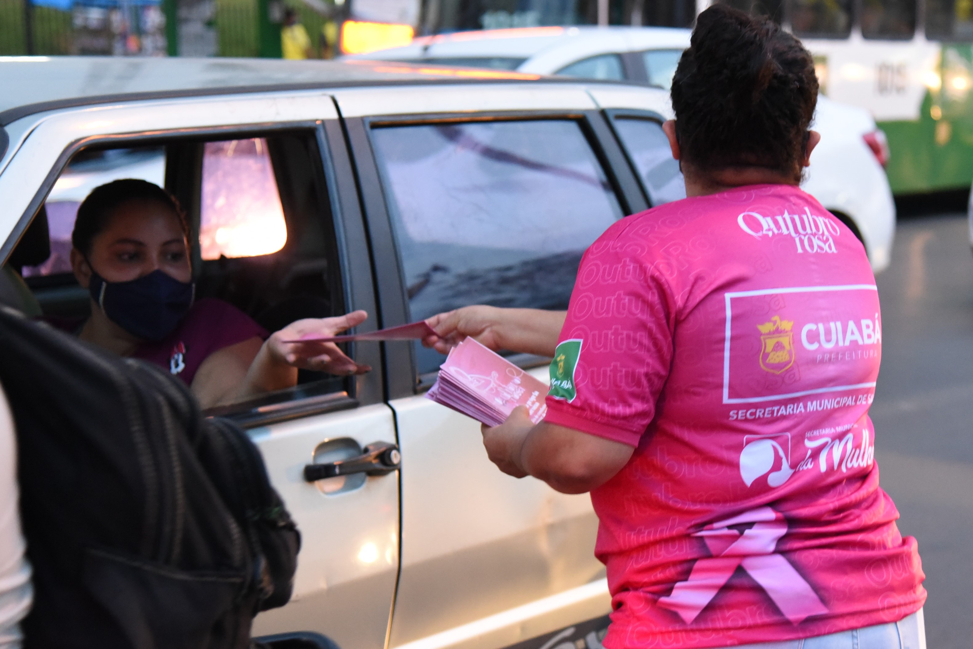 Em uma parceria entre as Secretarias Municipais da Saúde e da Mulher, a Prefeitura de Cuiabá iniciou, na sexta-feira (8), uma série de blitzes que irão ocorrer ao longo do mês, em alusão ao Outubro Rosa, para levar informação e conscientização às mulheres sobre o câncer de mama e câncer de colo do útero. A primeira blitz ocorreu na Avenida Historiador Rubens de Mendonça (Avenida do CPA), nos semáforos em frente ao Shopping Pantanal e ao Tribunal Regional do Trabalho (TRT-MT).