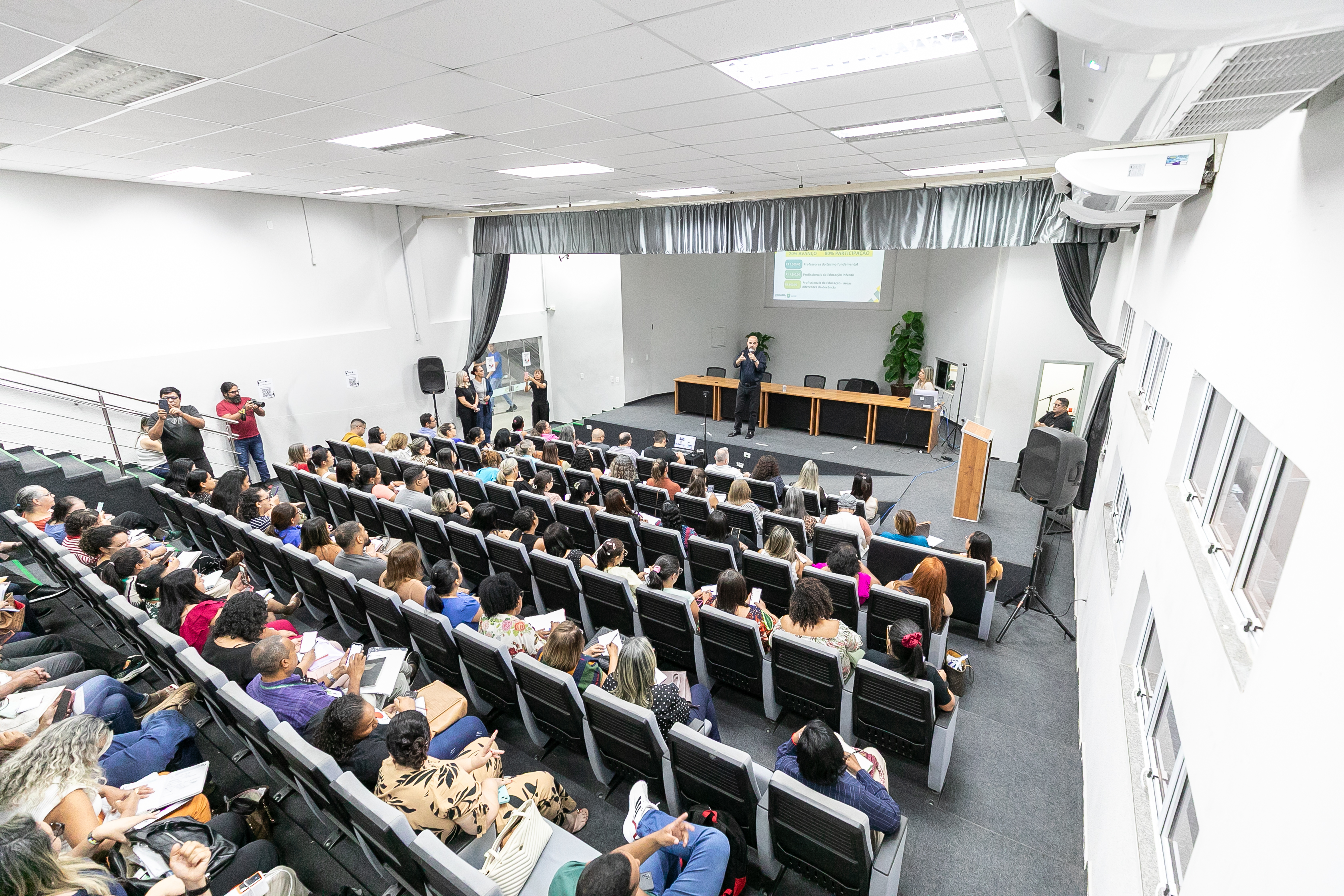 Mais de 80 diretores de escolas participaram da audiência, realizada no período da tarde, no auditório Maestro China, localizado na sede da Secretaria Municipal de Educação, no bairro Bandeirantes.