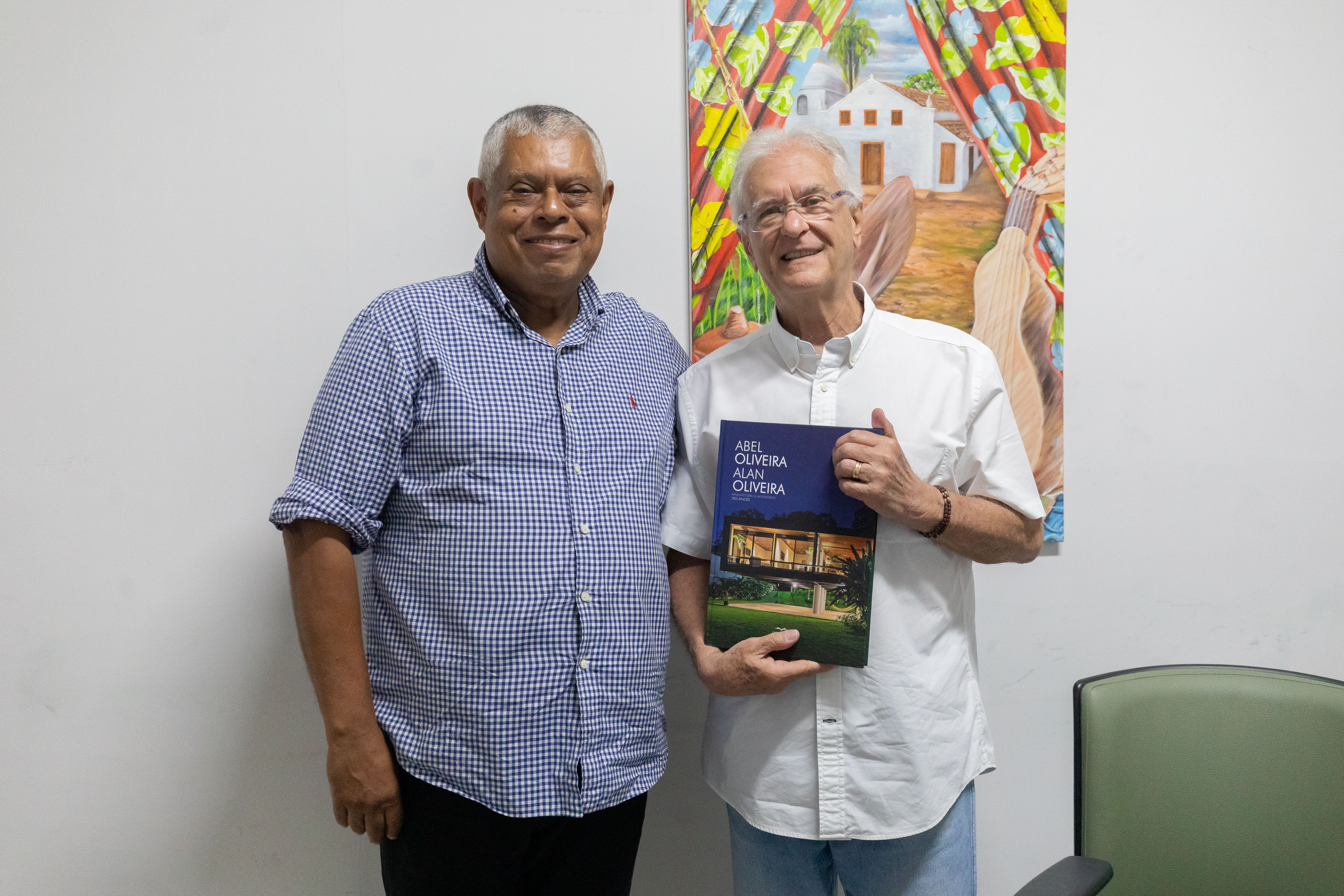 Na oportunidade, o secretário foi presenteado com um livro autografado que reúne uma compilação de trabalhos desenvolvidos por Alan e seu irmão, Adão Oliveira, ao longo de 30 anos de atuação profissional na área da arquitetura, ambos também arquitetos. A obra, lançada pela editora Green House, sintetiza parte da produção arquitetônica de autoria dos irmãos, como uma forma de valorizar o mercado e a comunidade arquitetônica. Um exemplar, também autografado, foi carinhosamente selecionado para ser entregue ao prefeito Abilio Brunini.