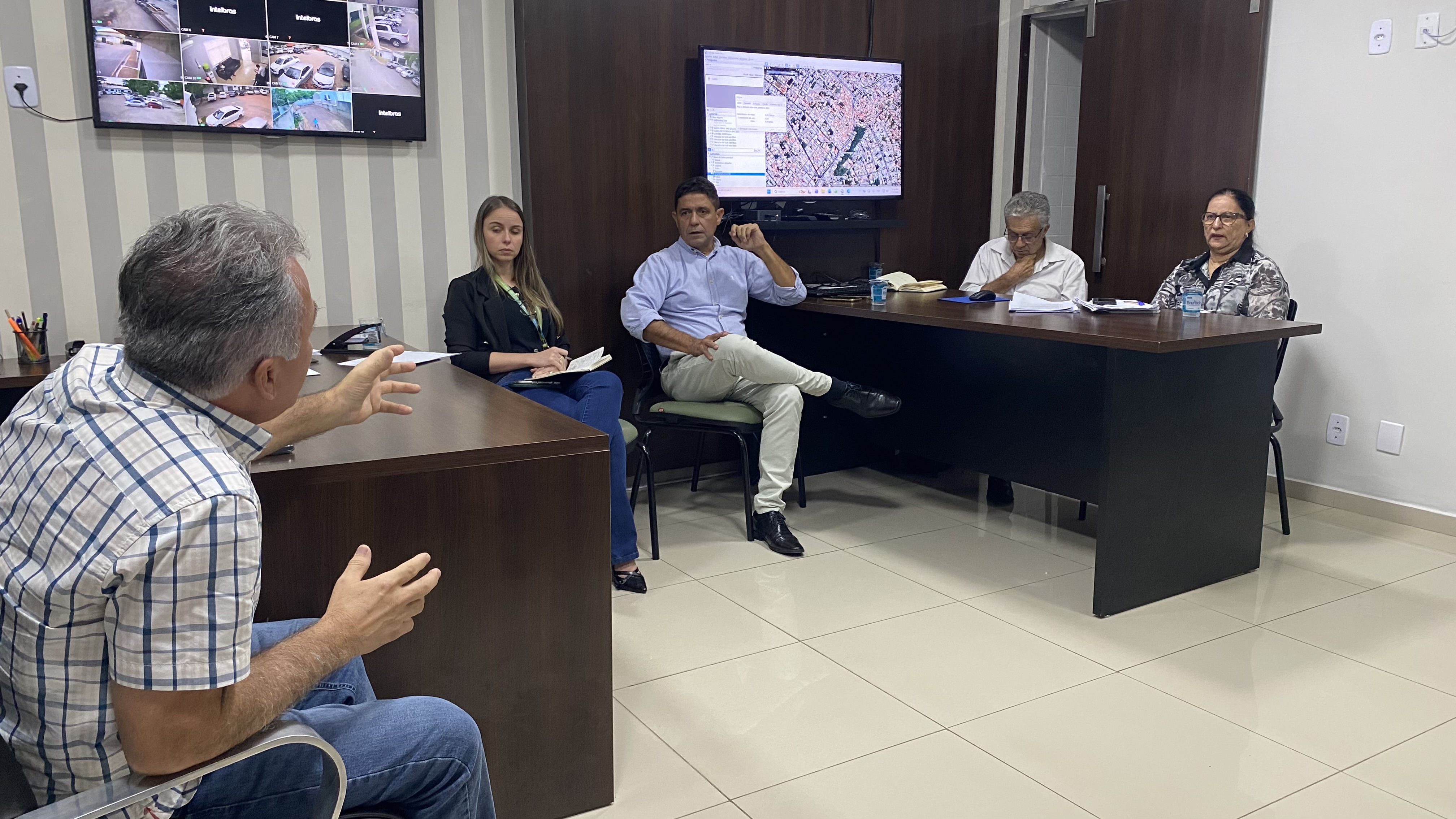 O secretário municipal de Infraestrutura e Obras Públicas, Reginaldo Teixeira, recebeu o secretário de Planejamento e Desenvolvimento Urbano, José Afonso Portocarrero, e as secretárias municipais de Ordem Pública, Juliana Palhares, e de Meio Ambiente e Desenvolvimento Urbano, Lise Bokorni, para uma reunião com representantes da concessionária de energia Energisa.