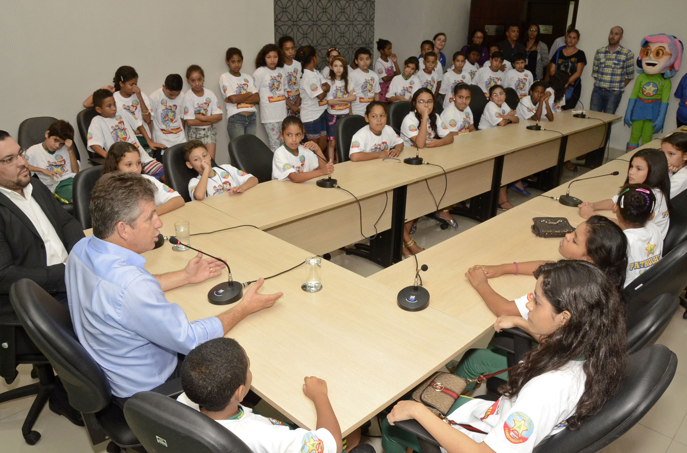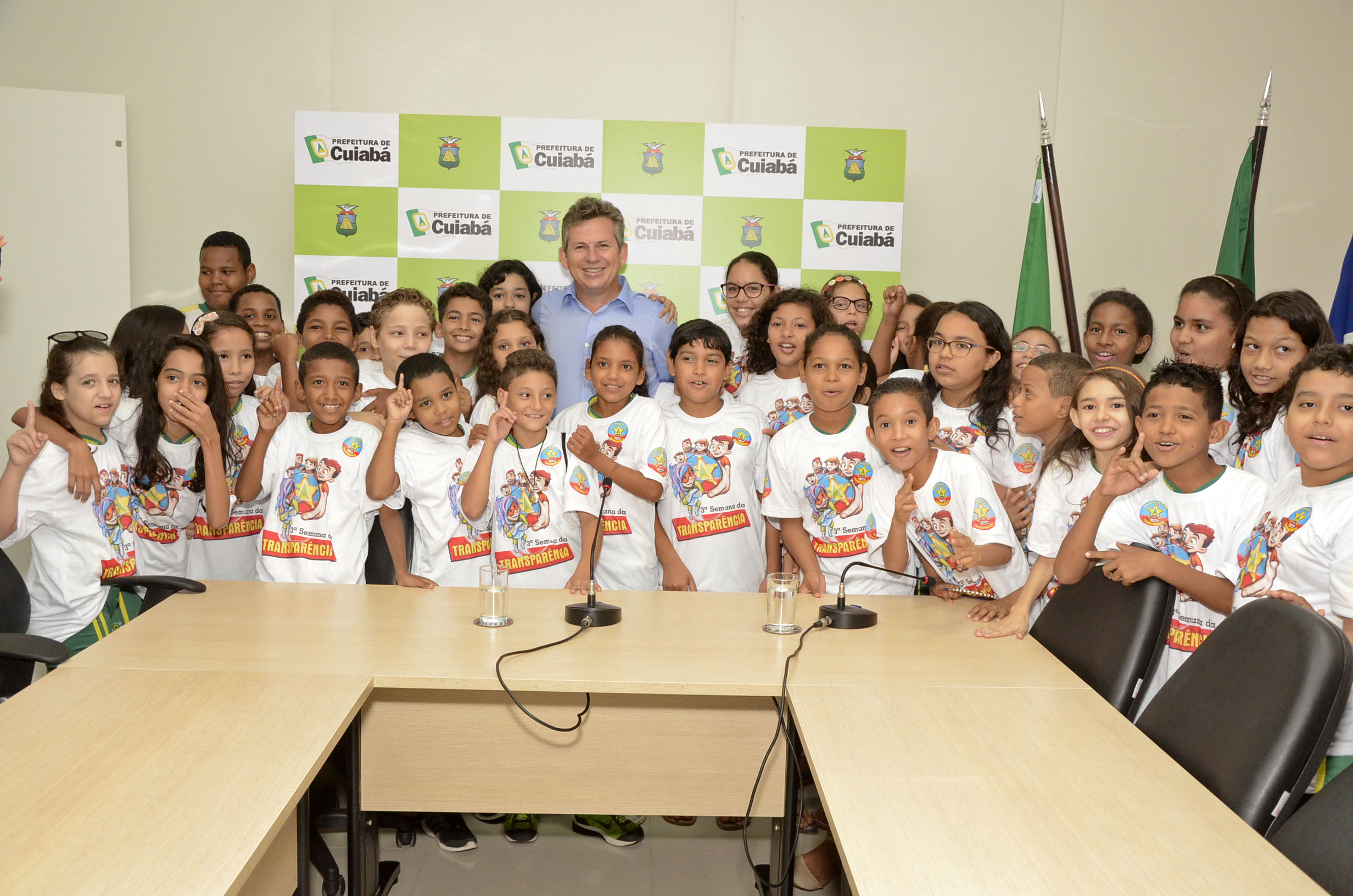 A terceira edição da Semana da Transparência encerrou suas atividades com a visita dos estudantes da rede municipal ao prefeito Mauro Mendes. O encontro, que aconteceu na tarde desta quarta-feira (01), foi marcado por muito aprendizado e atividades lúdicas, que orientaram as crianças sobre ética e cidadania. Durante todo o evento, 300 alunos circularam pelos corredores do Palácio Alencastro e tiveram a oportunidade de conhecer o sistema organizacional da gestão pública municipal.