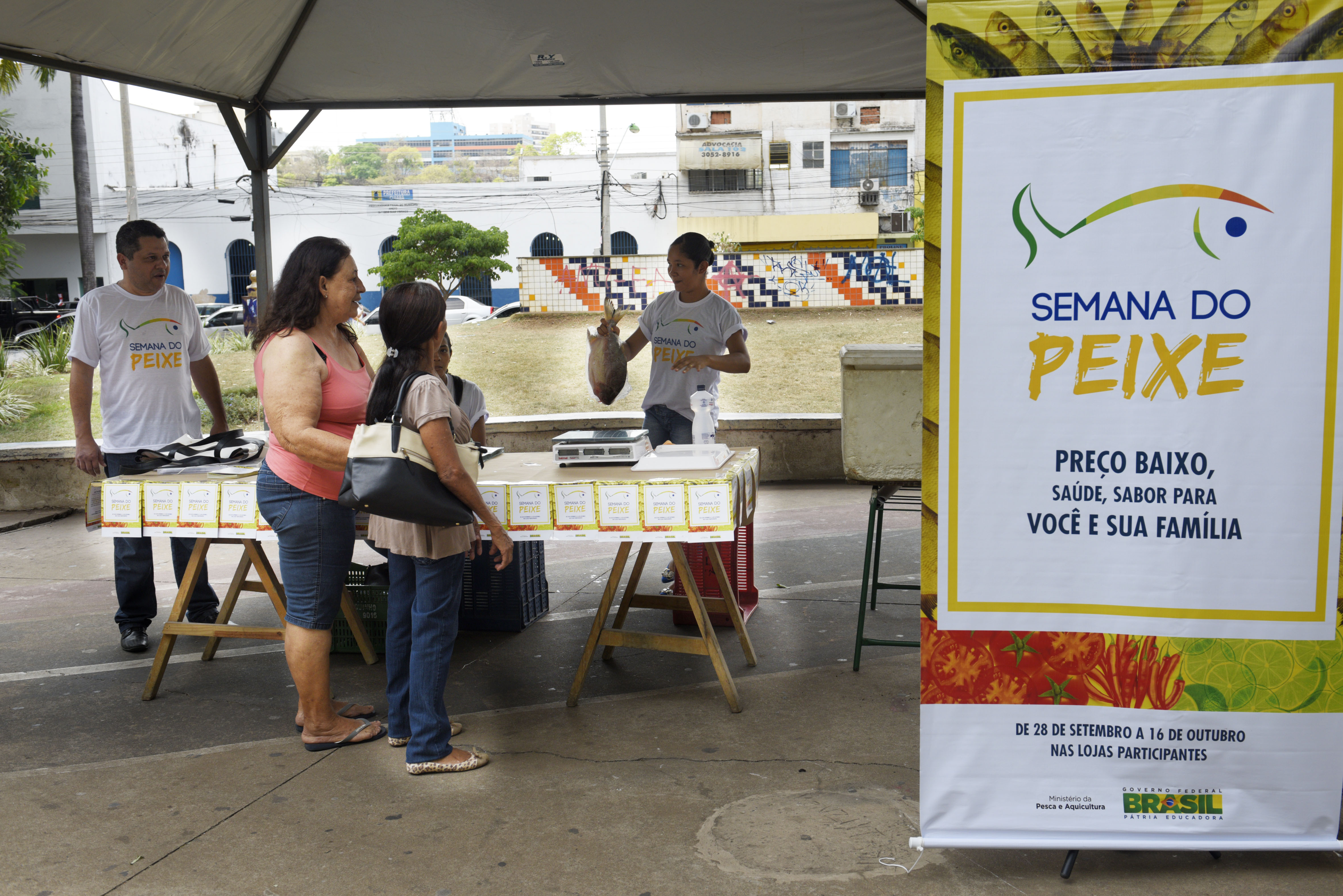 A Semana do Peixe é realizada pelo Ministério da Pesca e Aquicultura, em parceria com a Secretaria Municipal de Trabalho e Desenvolvimento Econômico e Superintendência Federal de Pesca e Aquicultura em Mato Grosso. Folders educacionais e um livro de receitas a base de pescado estão sendo distribuídos ao público.