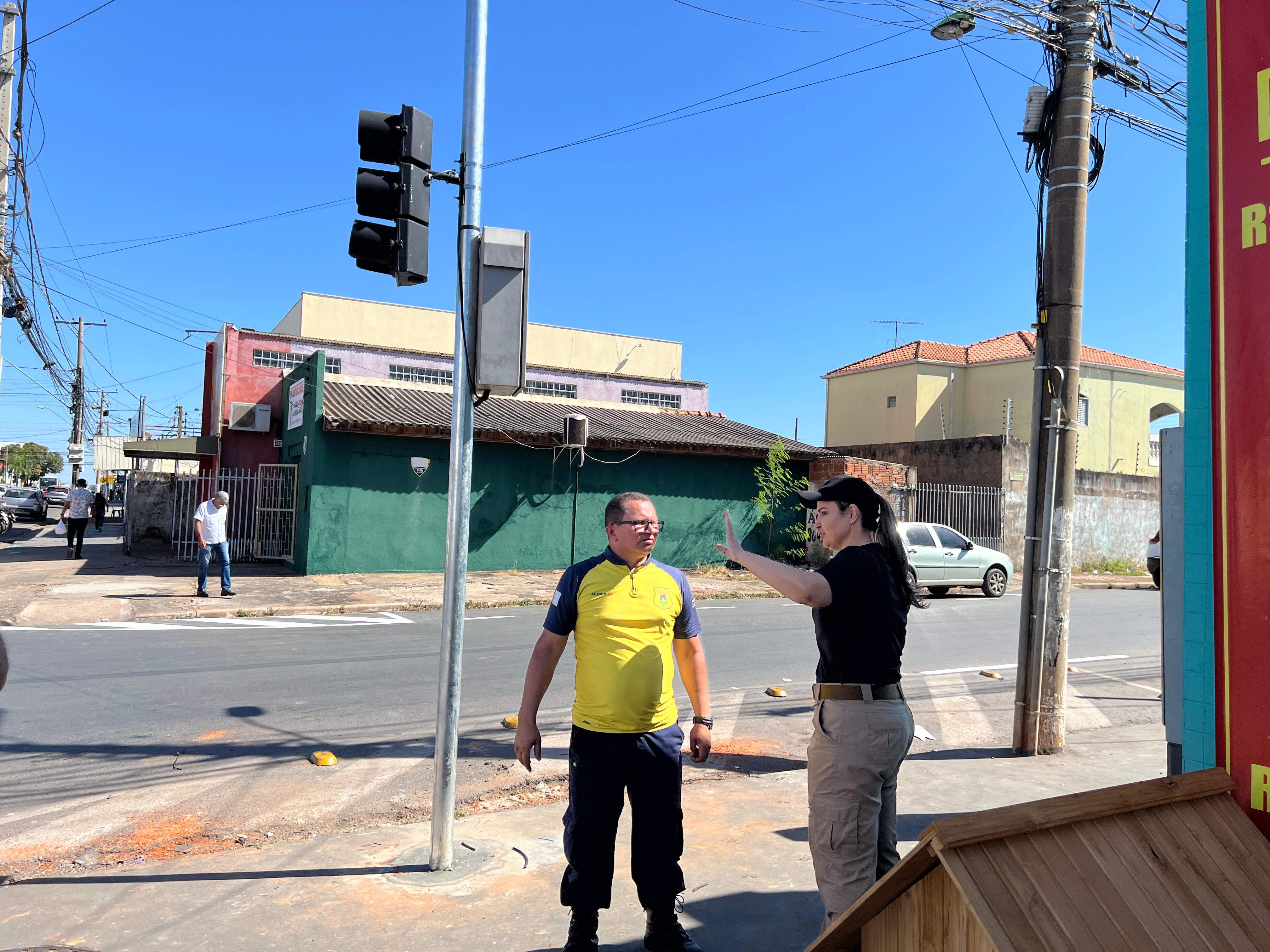 A secretária conferiu in loco o funcionamento do semáforo ainda nas primeiras horas após a instalação, conversou com a equipe e observou a conduta de quem passava pelo trajeto.