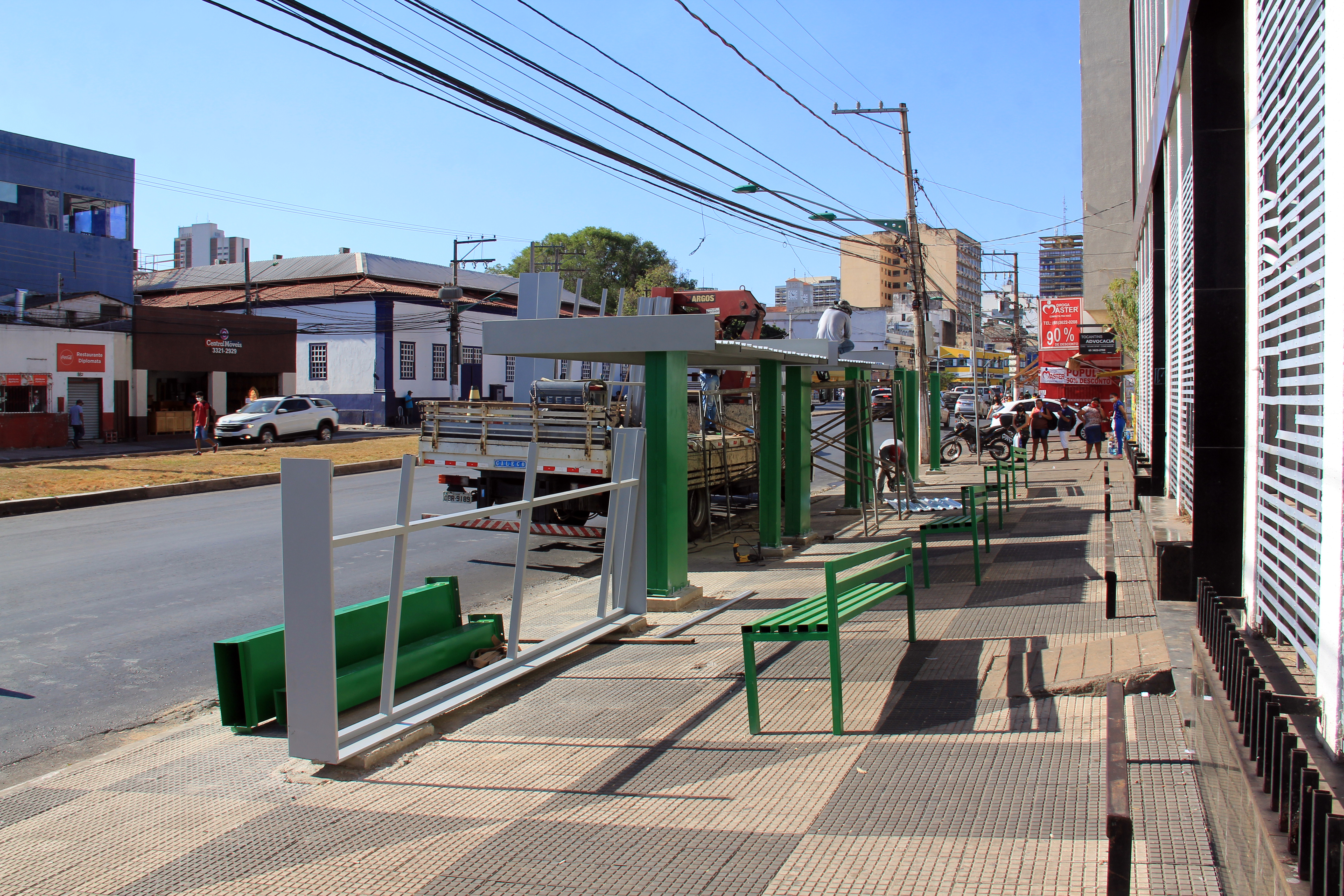 Os serviços de retirada e implantação dos abrigos de passageiros espalhados seguindo os novos moldes contratados pela Prefeitura de Cuiabá - por meio da Secretaria Municipal de Mobilidade Urbana (Semob) - continuam. As estruturas foram projetadas com design moderno, cobertura e assento, garantindo aos passageiros maior conforto enquanto aguardam a condução.