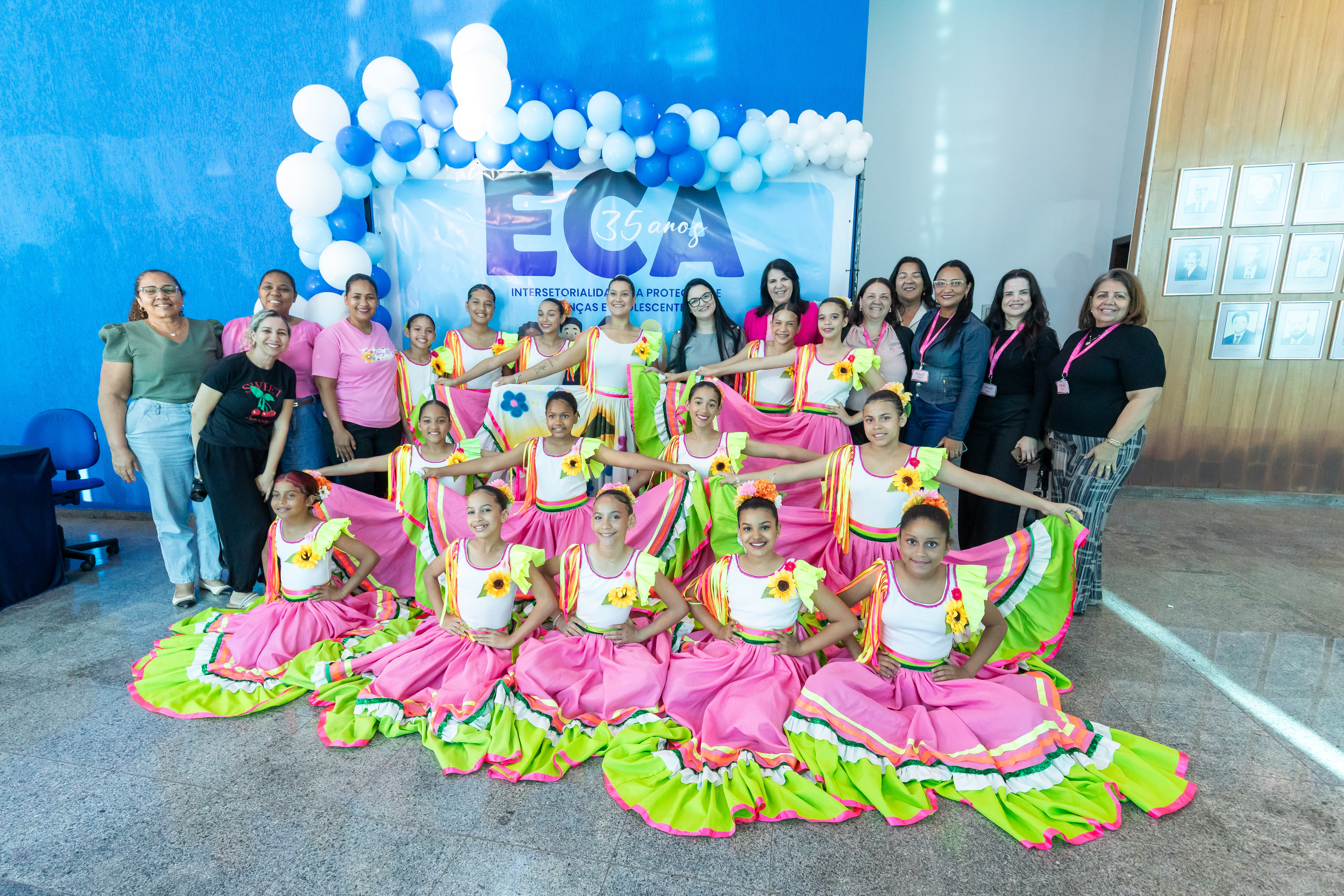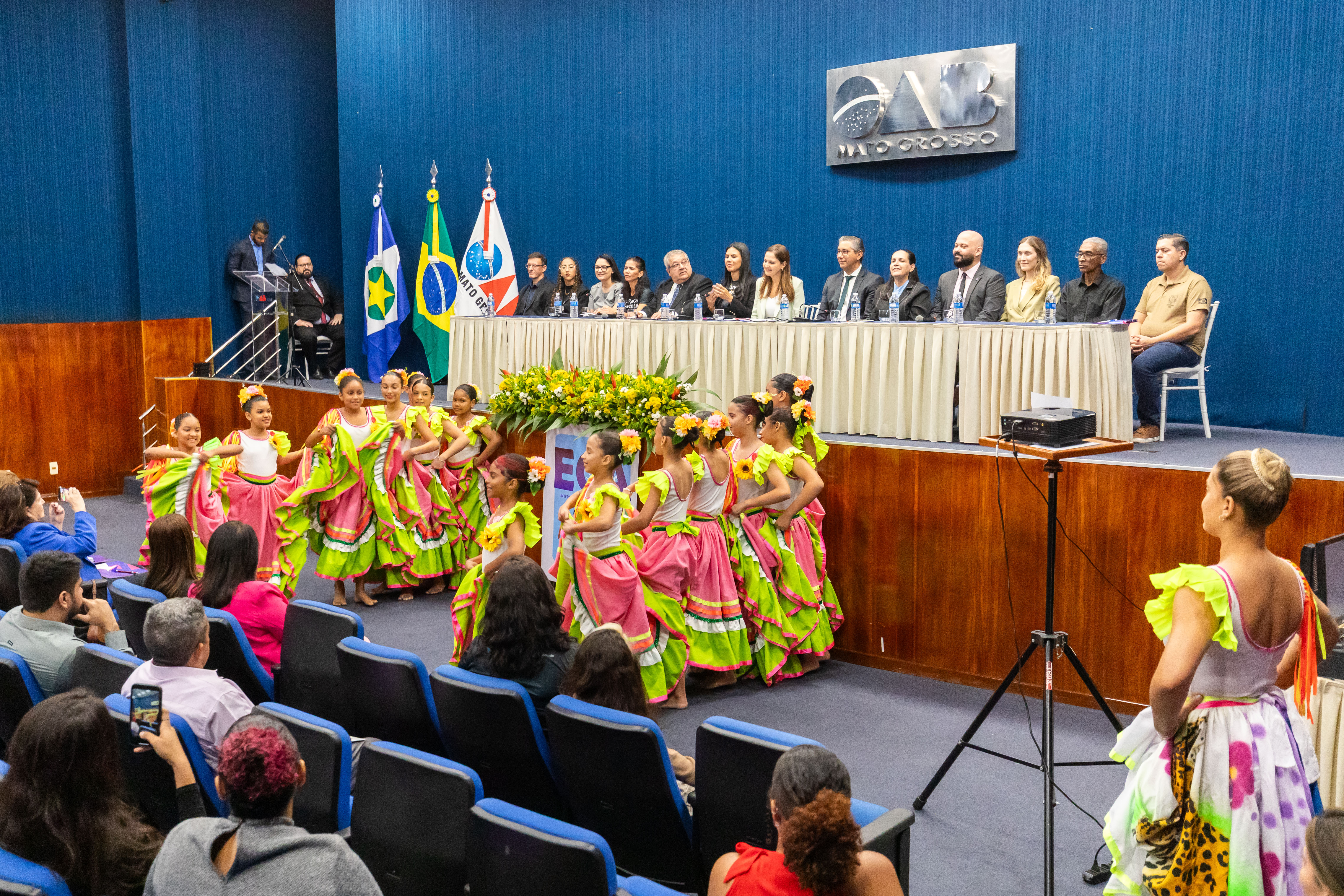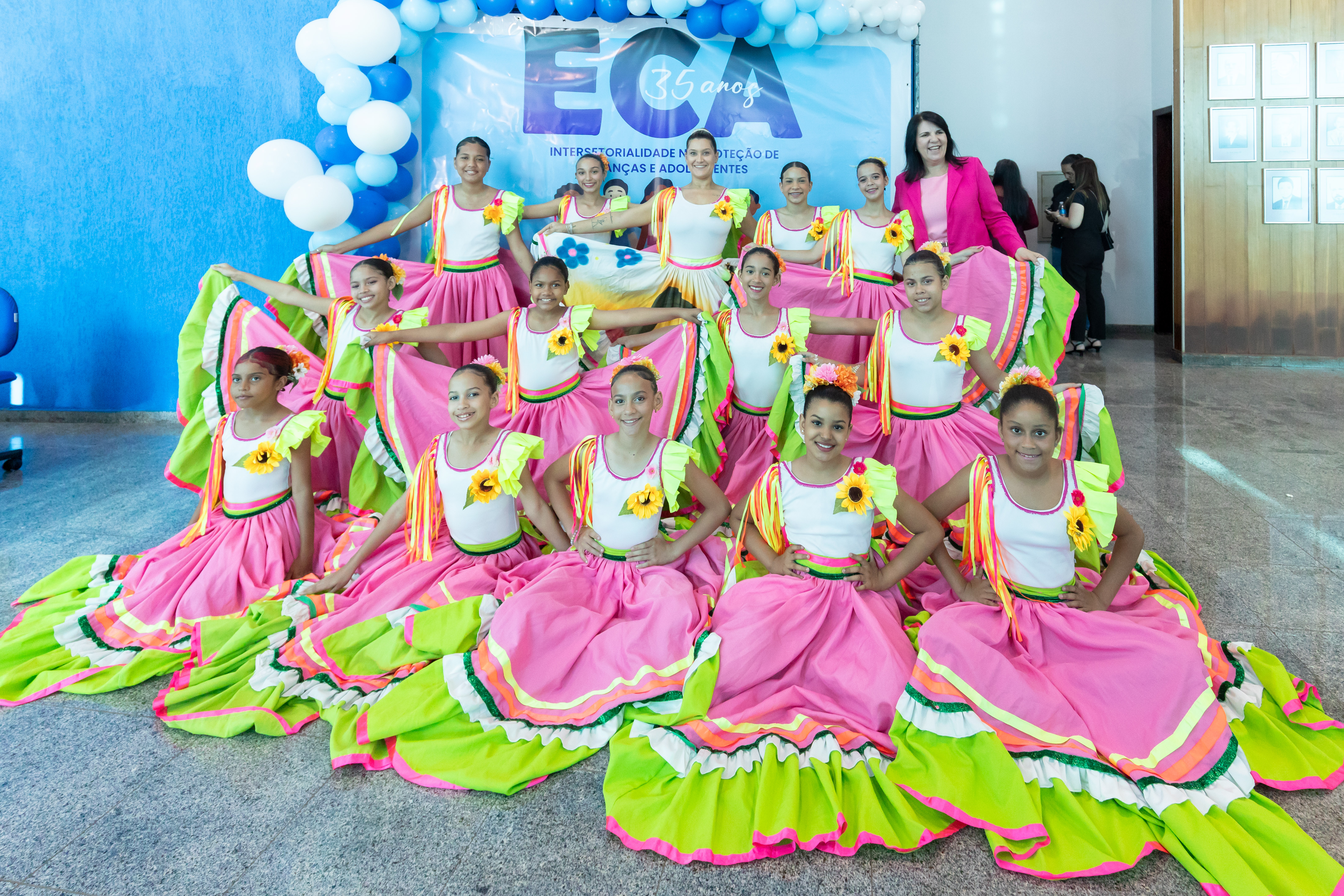 O grupo de dança do programa Simininas, da unidade do bairro Três Barras, e a primeira-dama e vereadora de Cuiabá, Samantha Iris, participaram da comemoração pelos 35 anos do Estatuto da Criança e do Adolescente (ECA), promovida pela Ordem dos Advogados do Brasil – Seccional Mato Grosso (OAB-MT).