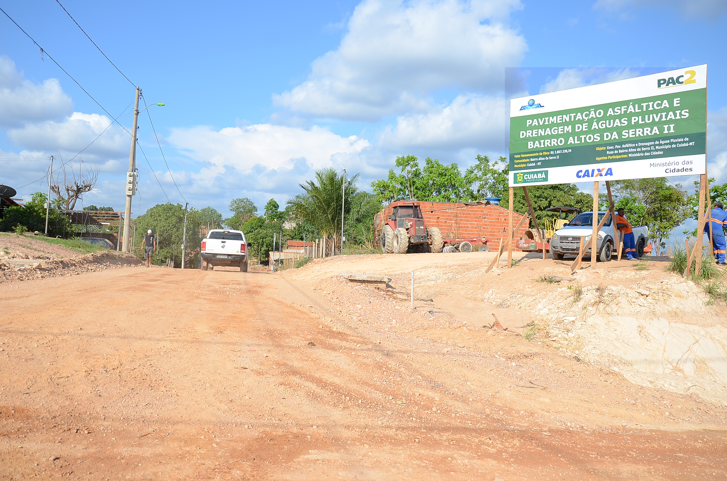 De fundamental importância para o seguimento da obra de pavimentação, a etapa de terraplanagem das vias, executada pela Prefeitura de Cuiabá, chega ao bairro Altos da Serra II. Com uma equipe formada por mais de 30 operários, o serviço avança ao longo das ruas da comunidade e, conforme o cronograma da atividade, já alcançou o índice de mais de 51% do trabalho concluído.