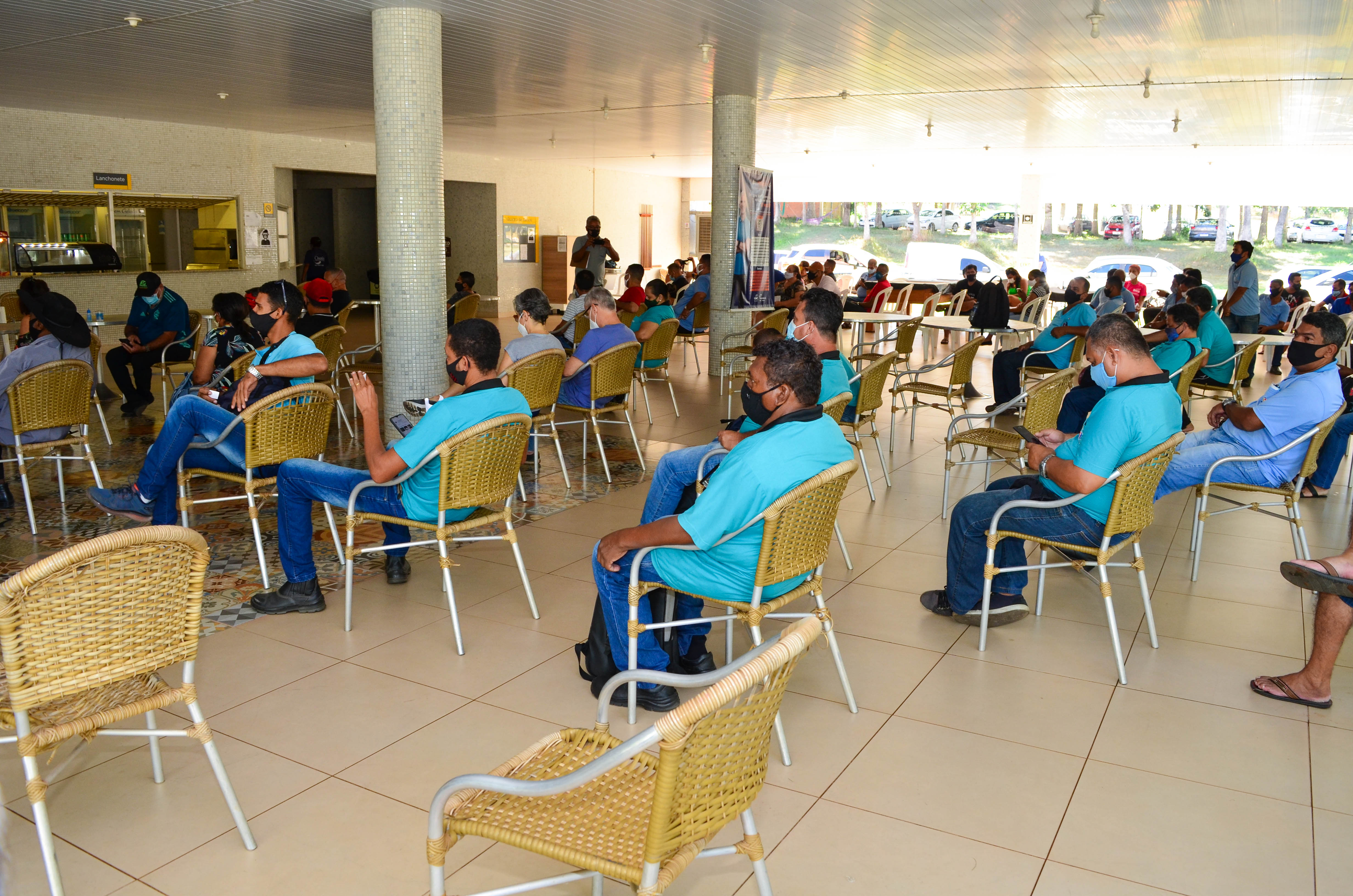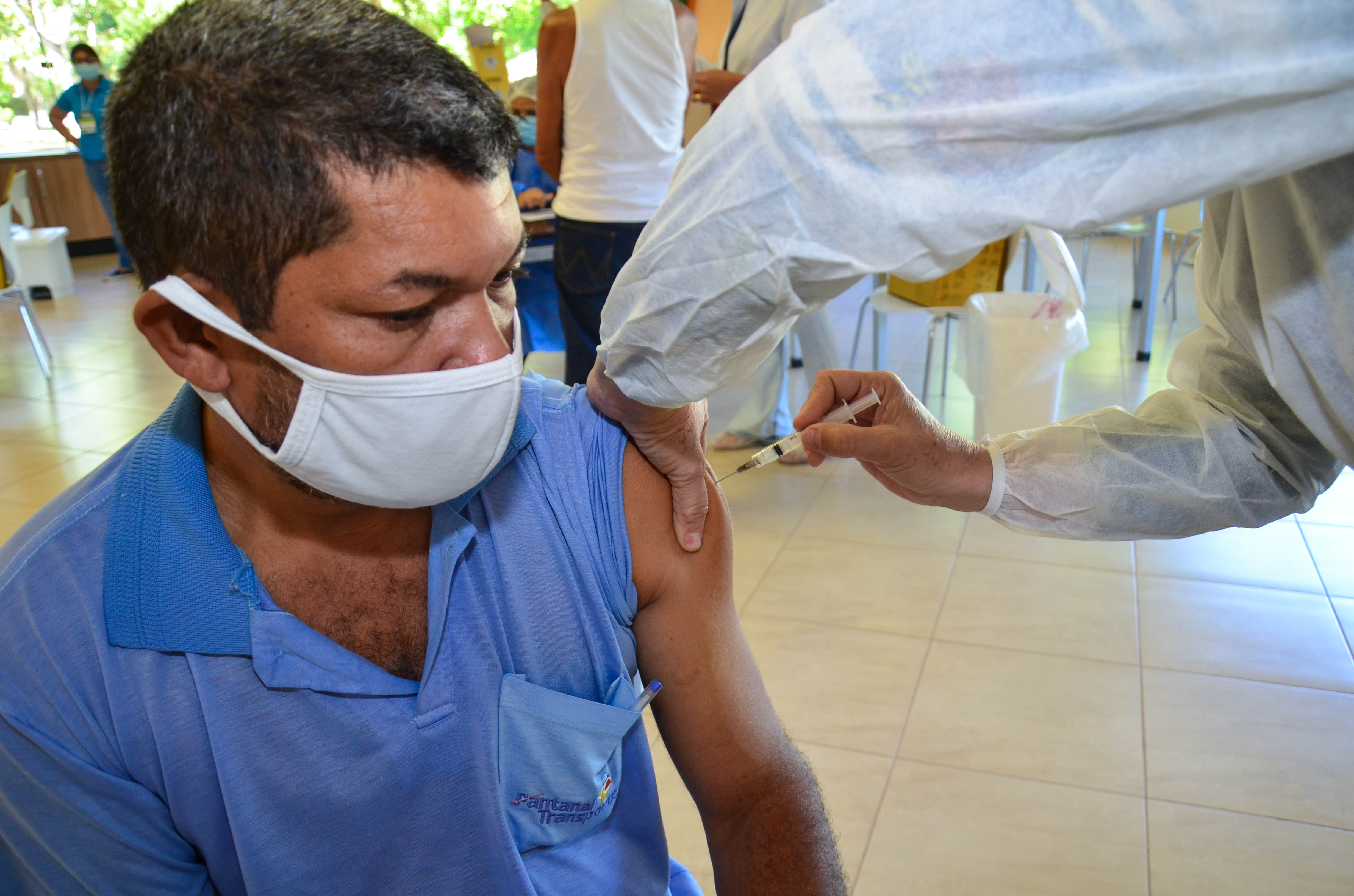 A Prefeitura de Cuiabá, por meio da Secretaria Municipal de Saúde (SMS), começou nesta segunda-feira (10), a imunização dos trabalhadores do transporte coletivo da Capital. A classe que tem em torno de 800 funcionários, está sendo vacinada com a primeira dose da vacina, no Sesc Balneário, localizado na região do bairro Osmar Cabral.