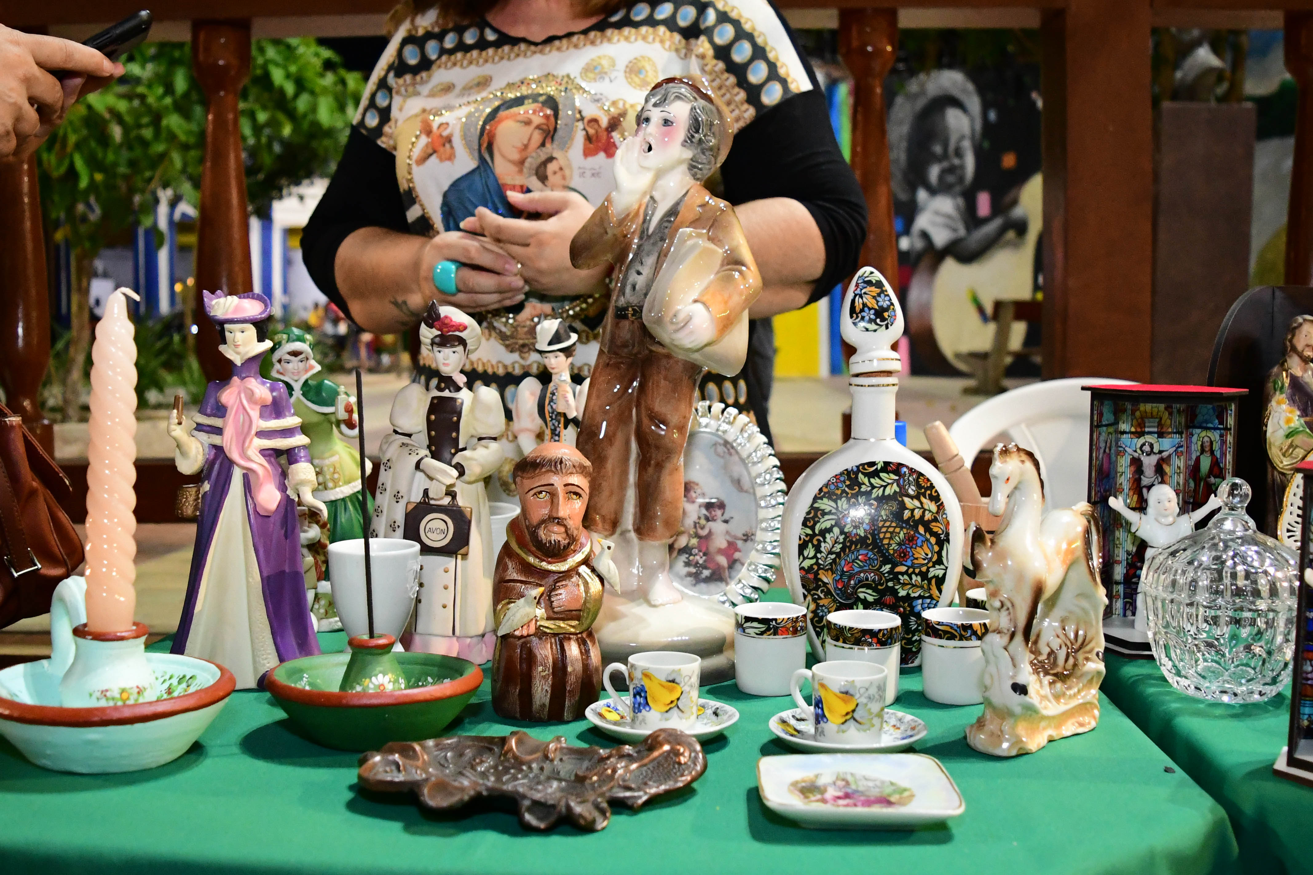 A feirinha além de peças antigas de porcelana, telefones e máquinas fotográficas, reuniu discos de vinil e livros, além da gastronomia com quitutes tradicionais como a paçoca de pilão com bananinha e empadinhas.