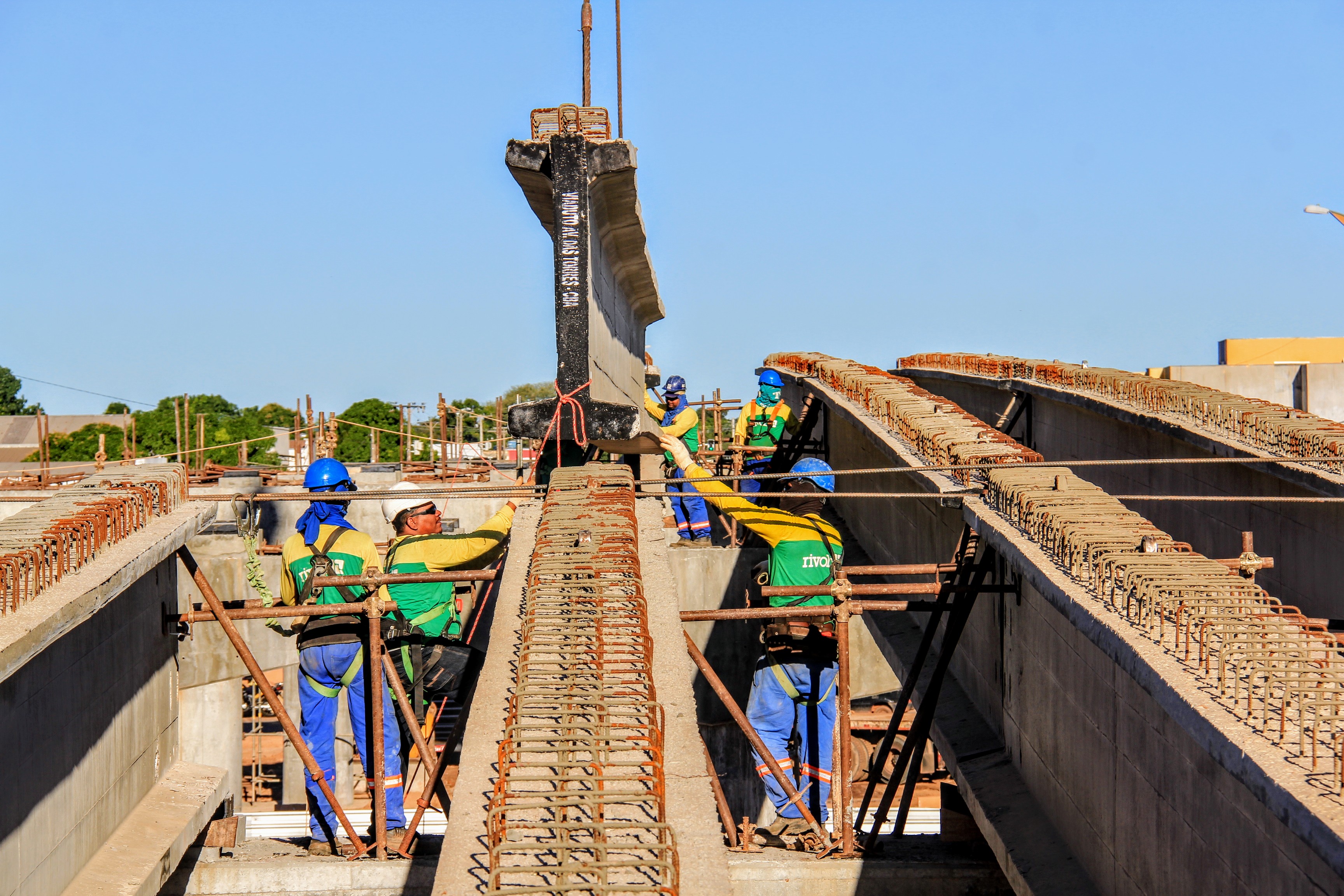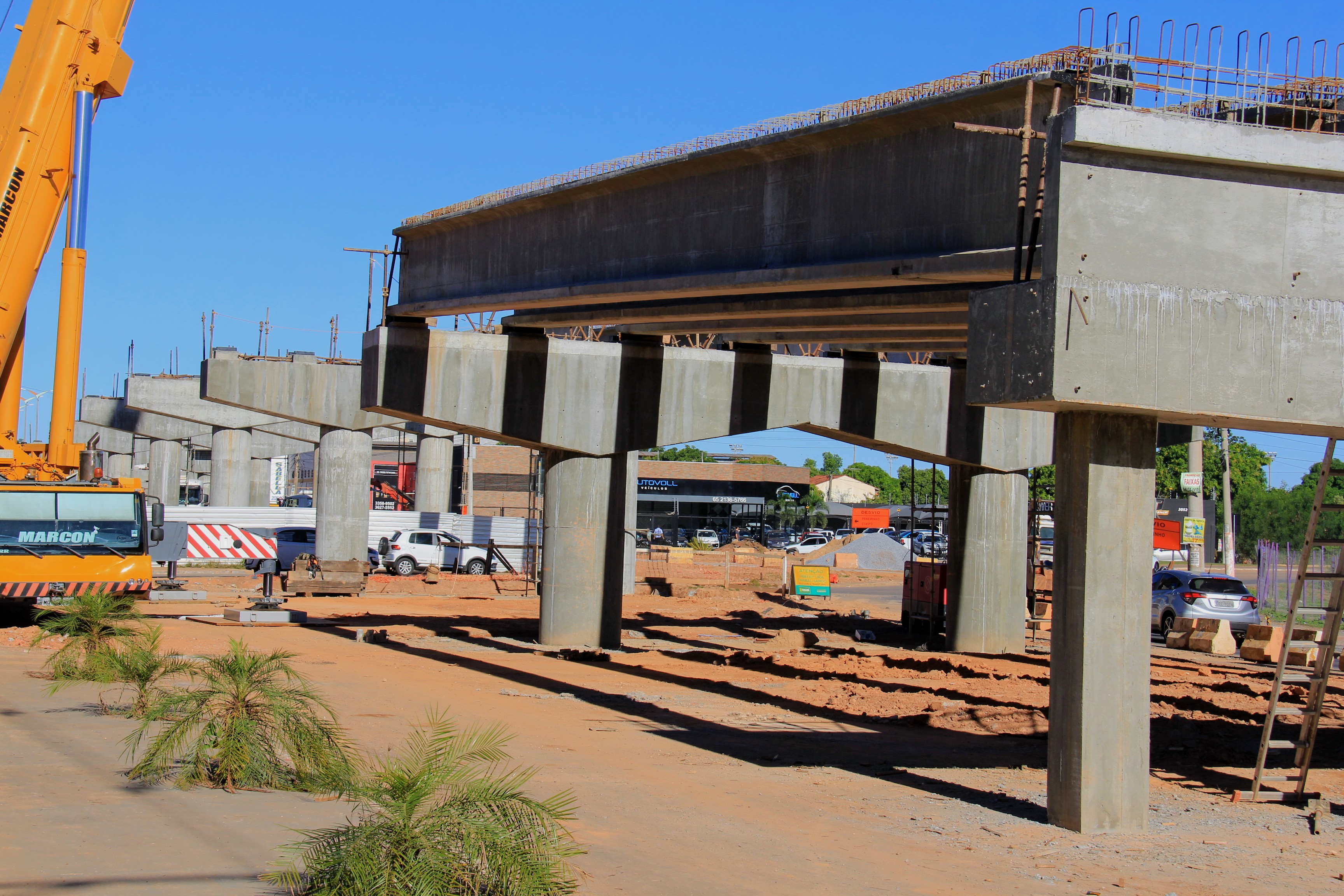 A Prefeitura de Cuiabá também avança de forma célere com a obra do viaduto José Maria Barbosa — Juca do Guaraná “Pai”. Localizado na Avenida Edna Maria Albuquerque Affi (Av. das Torres), a estrutura já recebeu a instalação das 64 vigas previstas e também a colocação das pré-lajes. Neste momento, os trabalhos estão concentrados na armação das ferragens para concretagem das lajes.