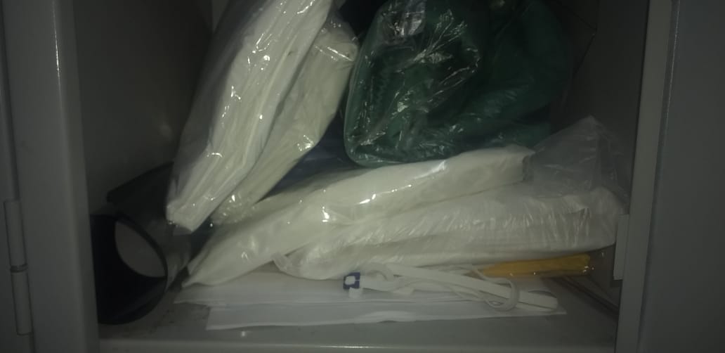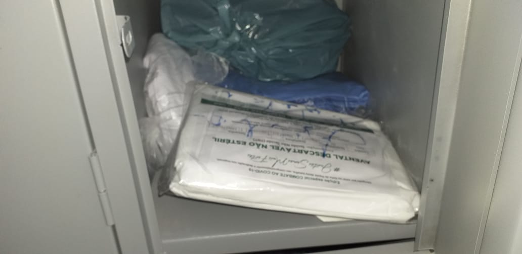 Em uma vistoria realizada nesta sexta-feira (19) em diversos setores do Hospital de Referência para COVID-19 (antigo Pronto Socorro Municipal), o secretário adjunto de Planejamento e Operações da Secretaria Municipal de Saúde, o médico Milton Corrêa da Costa Neto encontrou diversos Equipamentos de Proteção Individual – EPIs escondidos em armários de servidores do hospital. A vistoria foi acompanhada pela responsável do setor de enfermagem do hospital e pela coordenadora administrativa. Entre os materiais escondidos constavam macacões, aventais, máscaras, luvas, óculos, Pro Pé, e Face Shield.