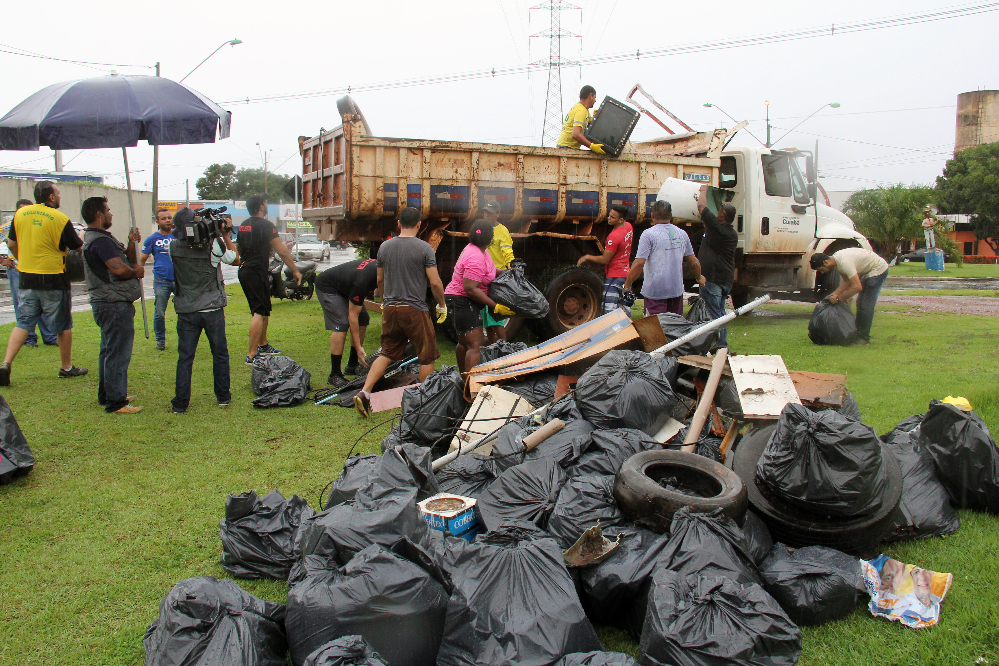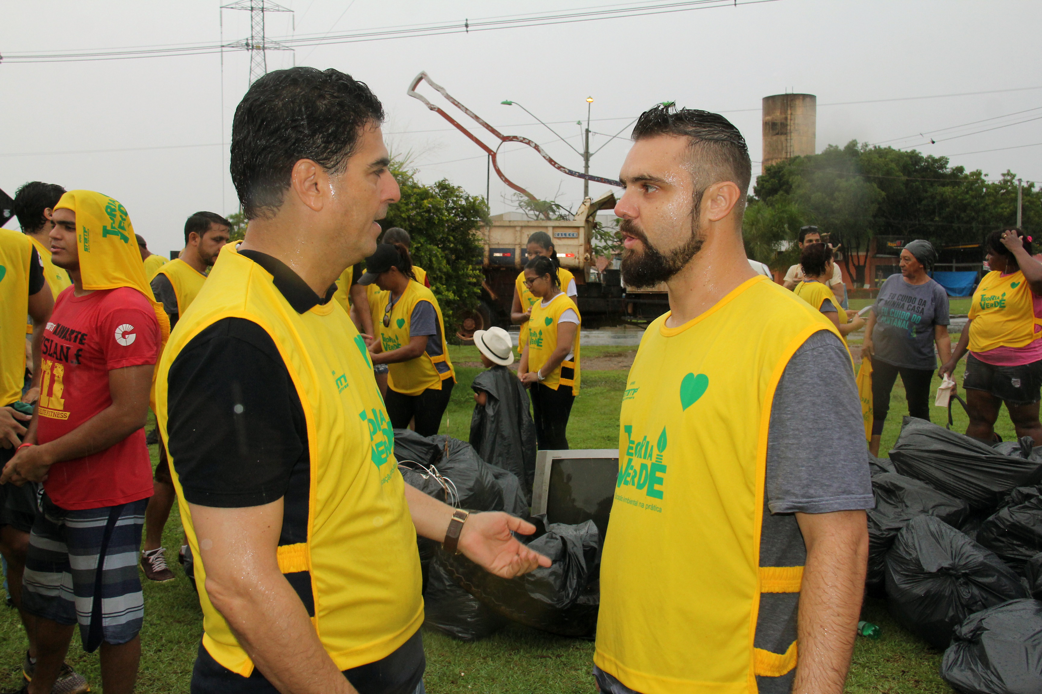 Na manhã deste sábado (28), o prefeito de Cuiabá, Emanuel Pinheiro, vestiu a camisa da Ong Teoria Verde e participou de mais uma iniciativa de limpeza, na ação “Eu Amo Eu Cuido”. No total, cerca de 30 pessoas realizaram o trabalho voluntário, que percorreu 3 km da Avenida das Torres recolhendo mais de 02 toneladas de lixo. Além de papéis, copos descartáveis e sacos plásticos, foram encontrados televisores, portas de ferro e pneus, dentre os resíduos recolhidos.