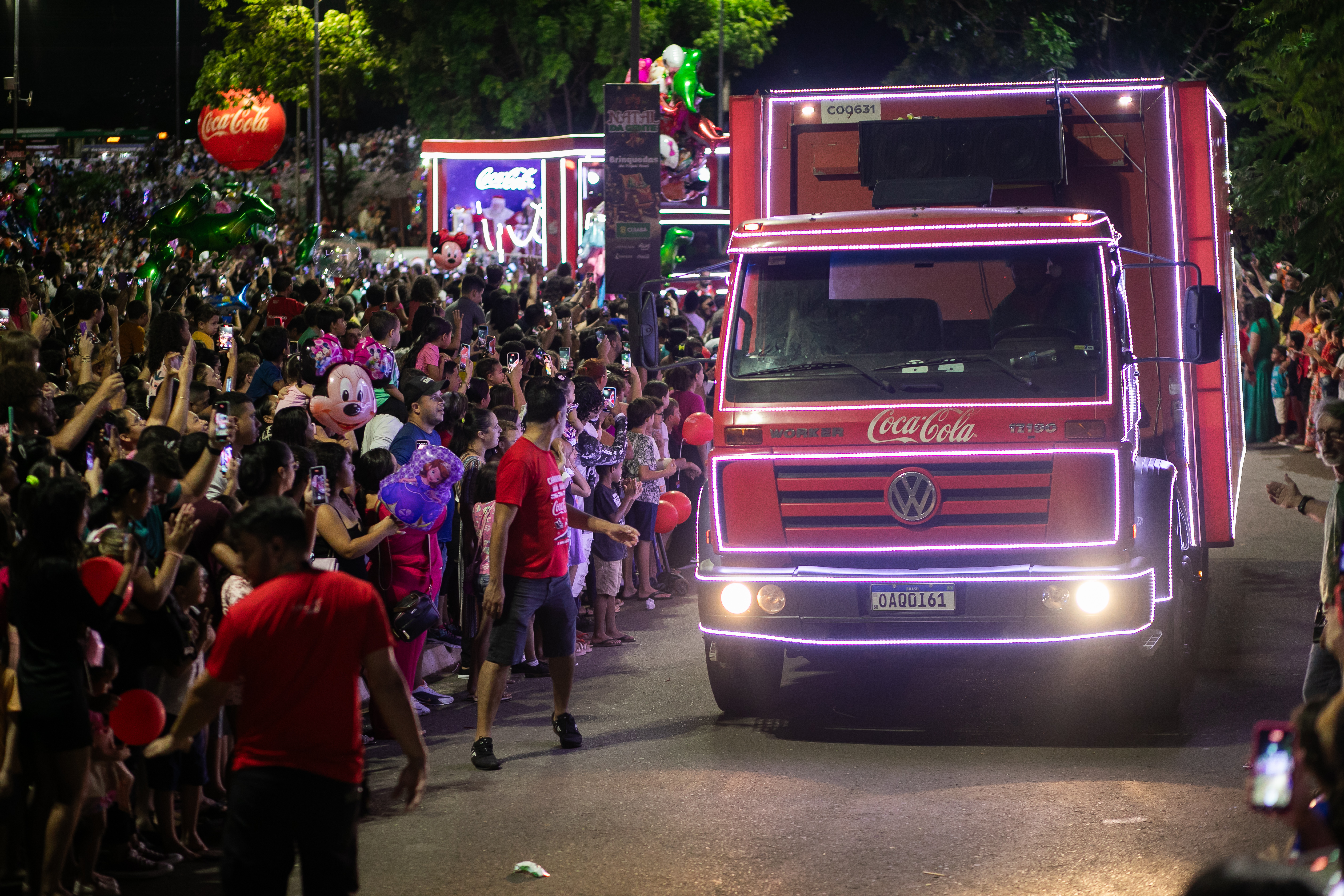 O grande marco da noite de abertura, que contou com a presença da primeira-dama, Márcia Pinheiro, foi o espetáculo da Coca-Cola, que iluminou o céu com 600 drones, projetando figuras gigantes e símbolos natalinos icônicos, como os caminhões de Natal, Papai Noel e seu trenó, a árvore de Natal e figuras da cuiabania, como a viola de cocho, tudo “suspenso no ar”.