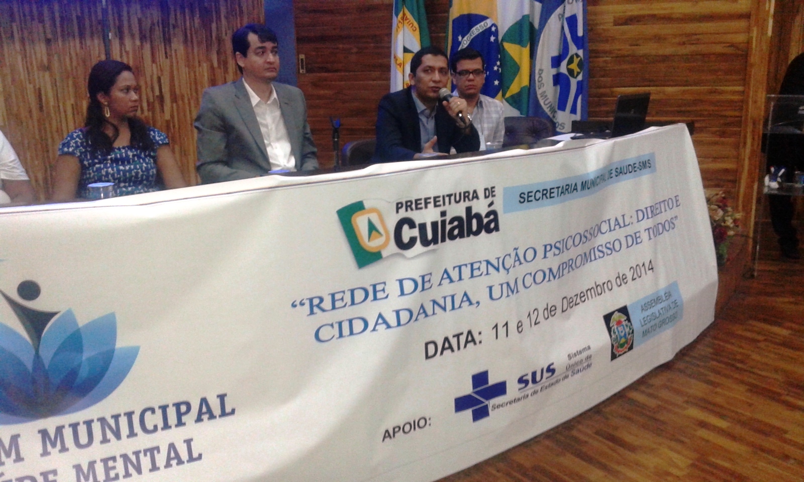 A mesa de abertura foi composta pelo secretário municipal de Saúde, Werley Peres, pelo secretário-adjunto de Estado de Saúde, Huark Douglas, pelo representante da Coordenação Nacional de Saúde Mental do Ministério da Saúde, Enrique Bessoni, pela coordenadora da Diretoria de Atenção Secundária da Secretaria Municipal de Saúde de Cuiabá, Simone Brito e pela coordenadora especial de Rede Assistencial de Saúde Mental da Secretaria Municipal de Saúde de Cuiabá, Daniele Auxiliadora Bastos Novaes.