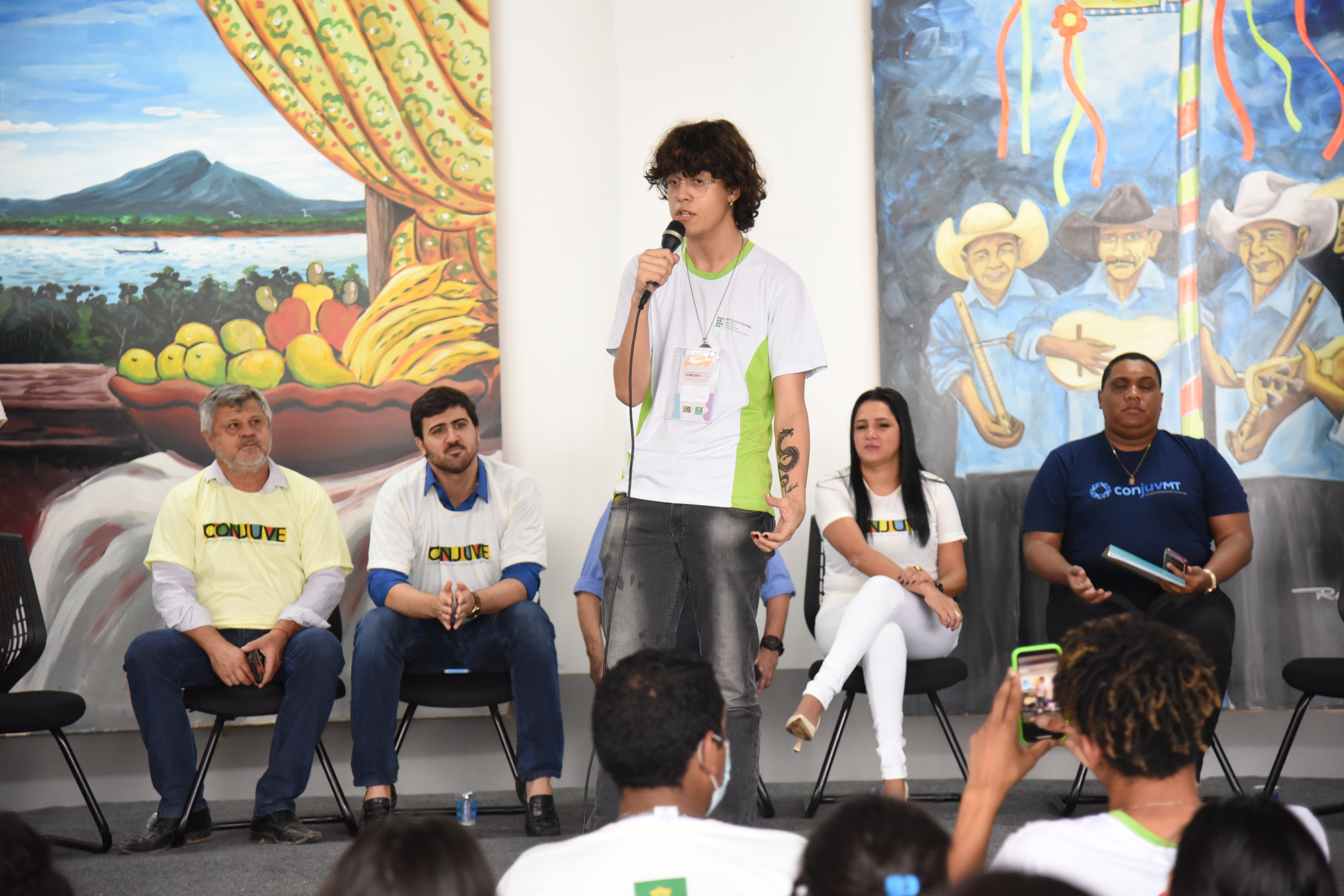 Durante a conferência, os alunos das escolas estaduais e do Instituto Federal de Mato Grosso (IFMT) foram divididos em quatro grupos de trabalho para debater sobre os oito eixos temáticos, são eles: direito a educação e cultura, direito ao trabalho e a cidadania, direito à saúde integral, direito ao esporte e lazer, direito à integração e reinserção social, direito à sustentabilidade de ao meio ambiente, direito à diversidade e à igualdade, direito à segurança pública e ao acesso à justiça.
