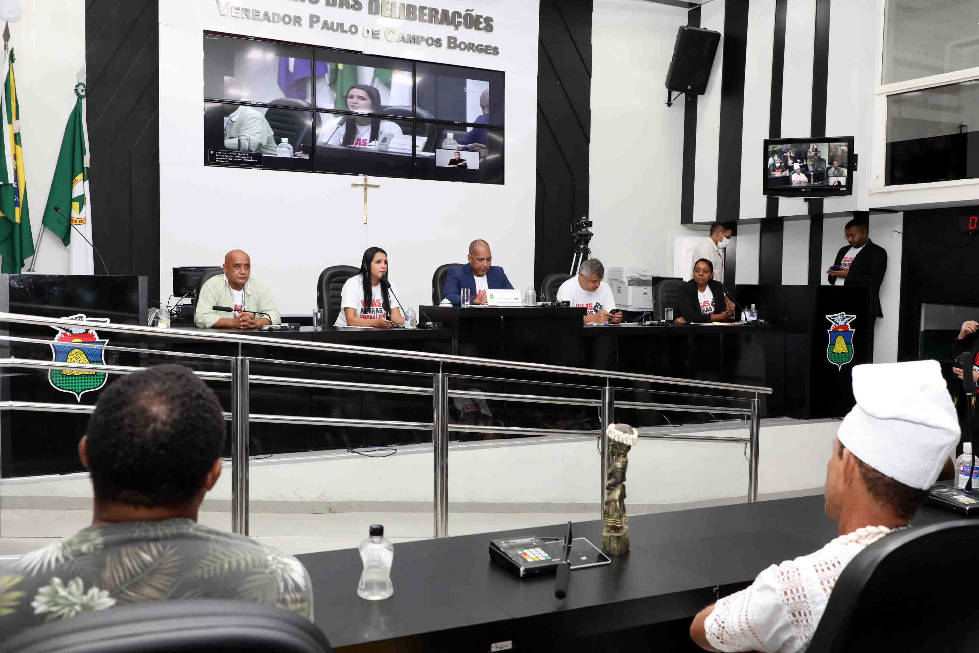 “Vidas negras importam, importam muito. Estamos no segundo evento anual, o que considero pouco. Não devemos nos limitar a um dia para falar de políticas públicas. Precisamos de espaço, como a Câmara de Vereadores que abra as portas, para esse momento, para uma discussão tão importante dentro dos órgãos de governo, para que possamos militar, defender as nossas questões, como a intolerância religiosa, discriminação política de igualdade racial. Essa é uma luta que deve ser defendidas por todas as classes e raças”, comentou o vice-presidente do Conselho Municipal de Promoção da Igualdade Racial, Pedro Reis de Oliveira.