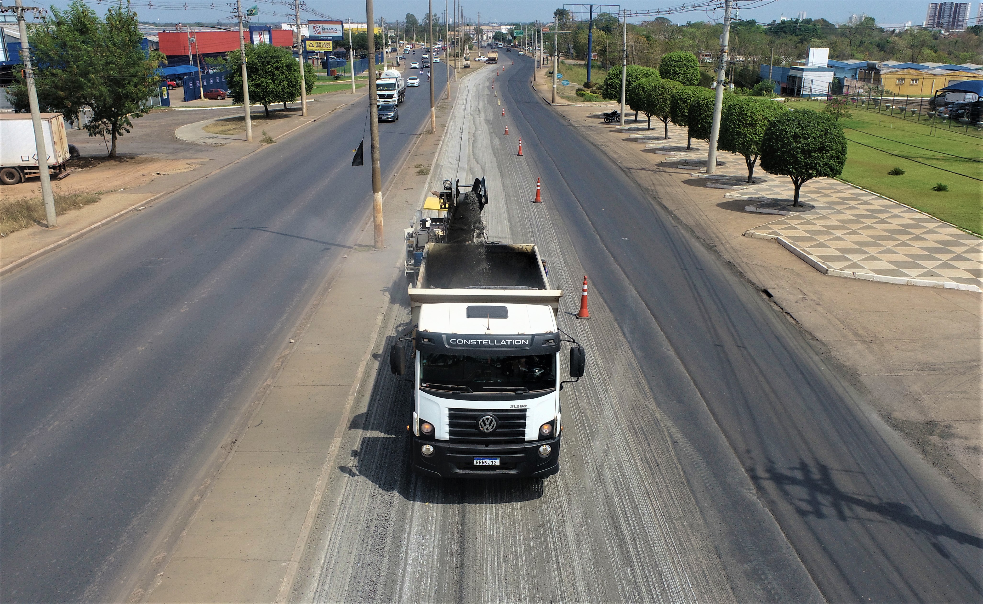 Meia pista do sentido Centro, compreendendo do Atacadão até o semáforo próximo a rotatória já está pronta. A outra metade da pista passa pelo frezamento do asfalto, que consiste na retirada da massa velha para o perfilamento e a capa definitiva. “Na próxima semana estaremos fechando essa parte também com a capa definitiva, ou seja, o asfalto”, explicou um dos operadores que atuam na obra.